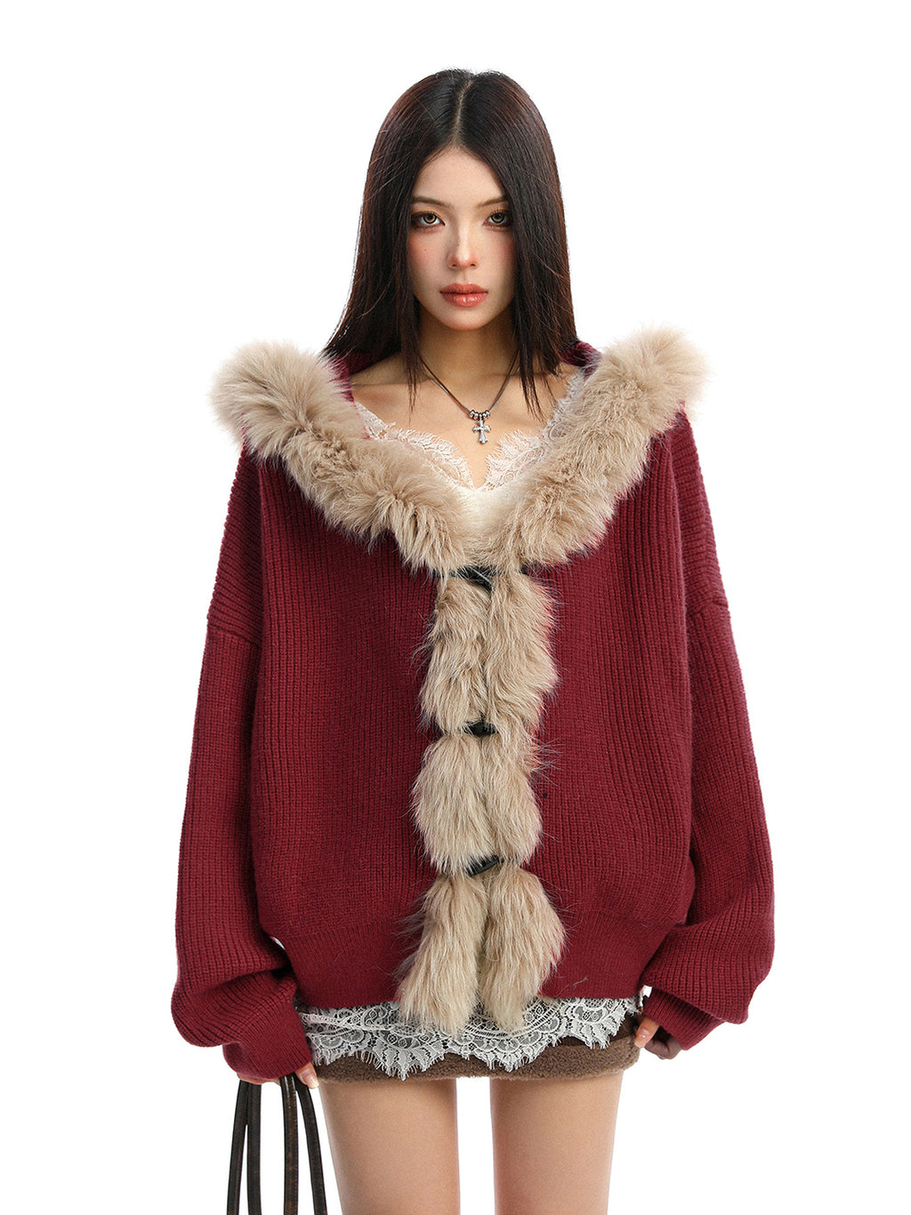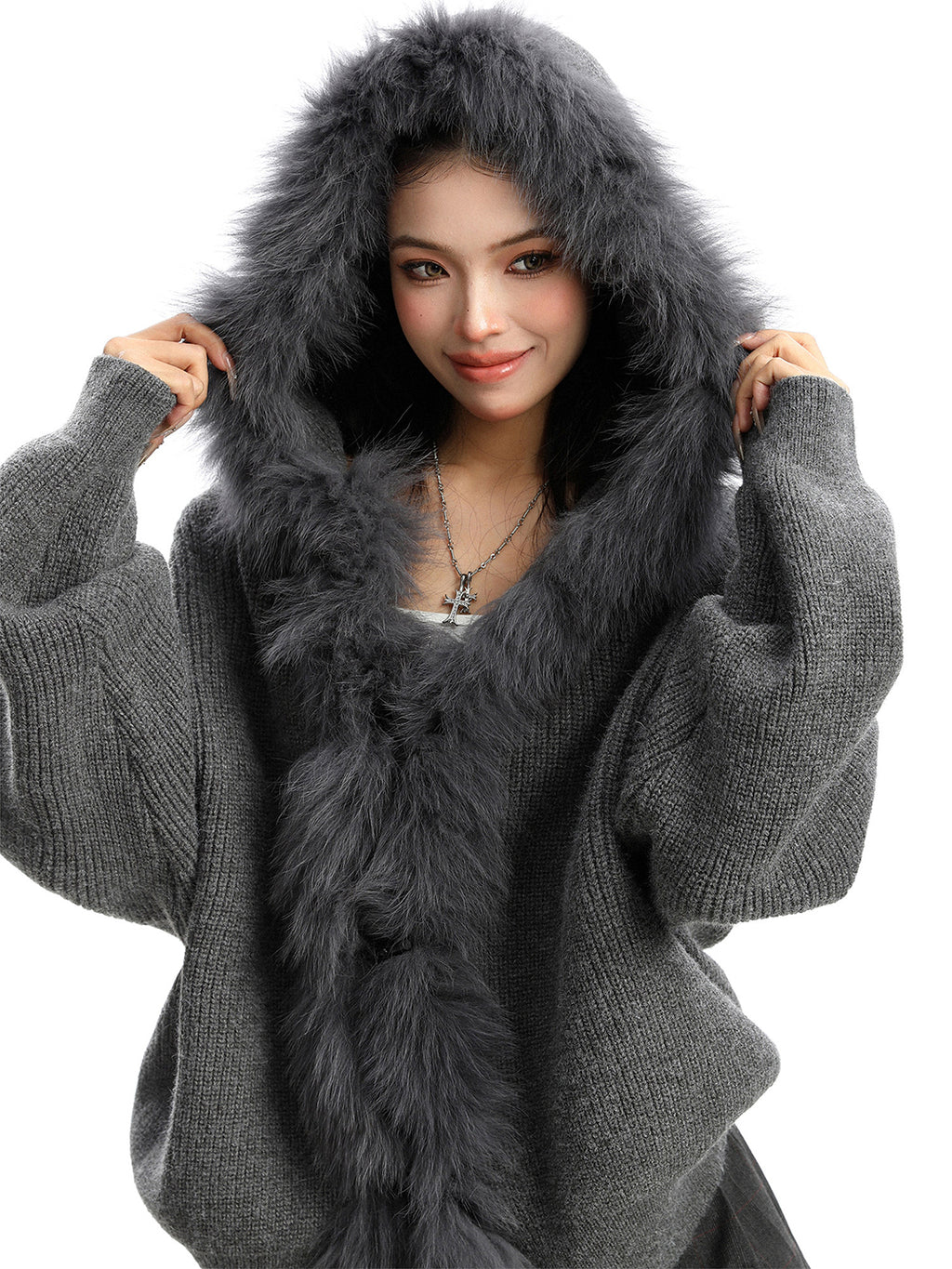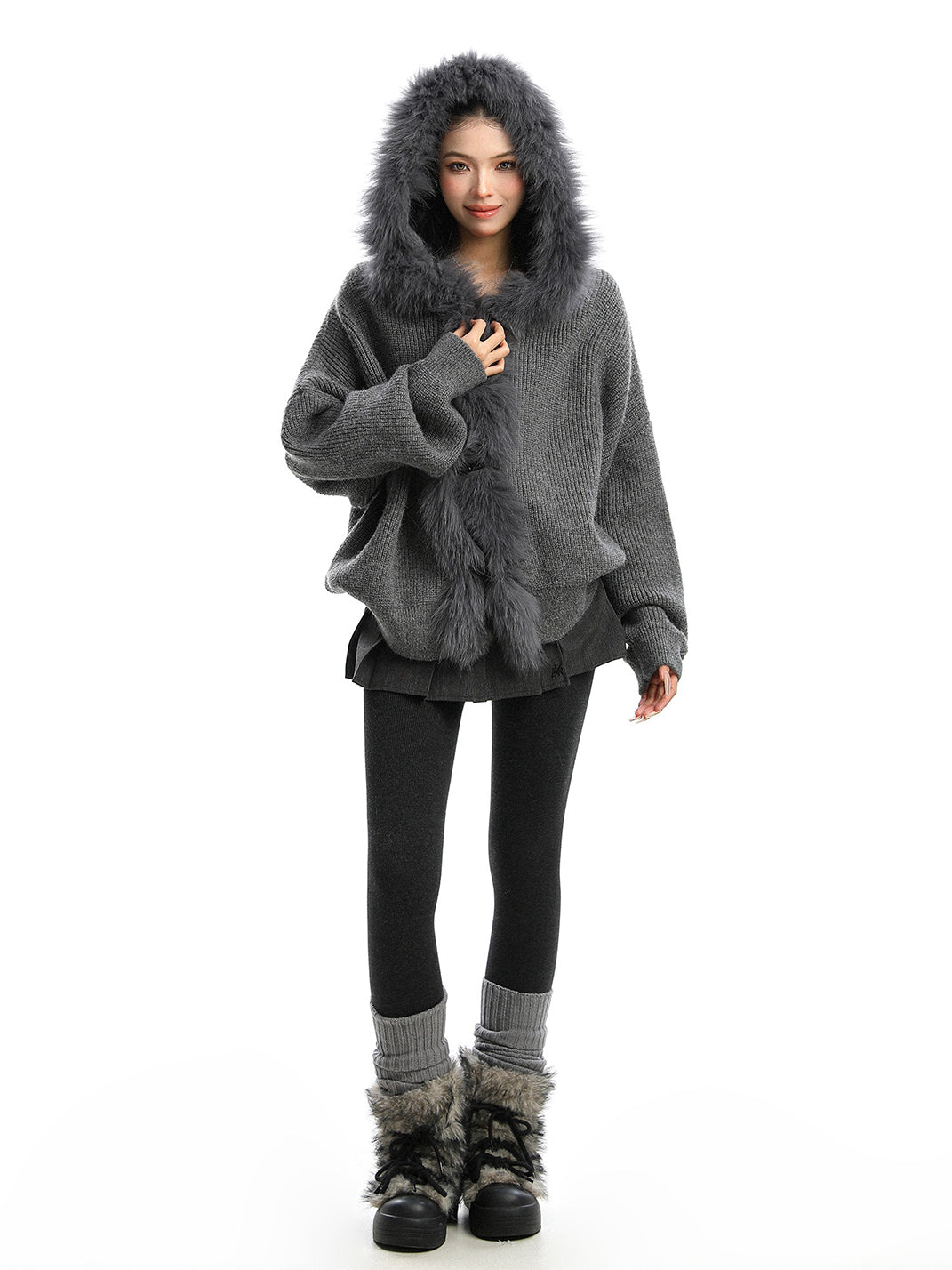 BIGGOLD | Fur Trimmed Hood Knit Sweater