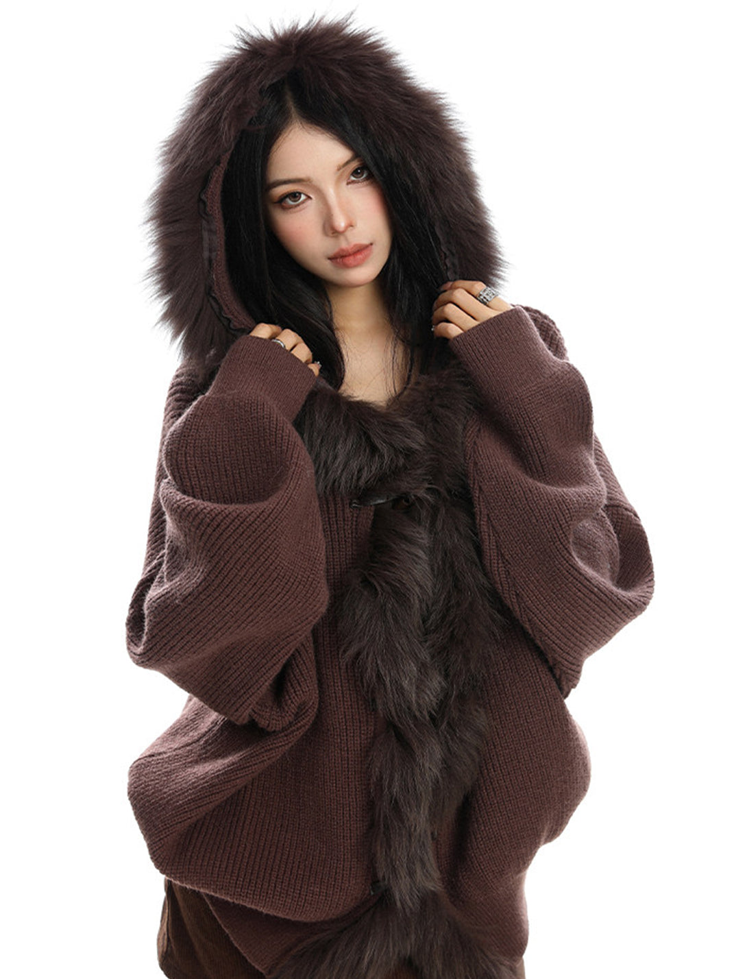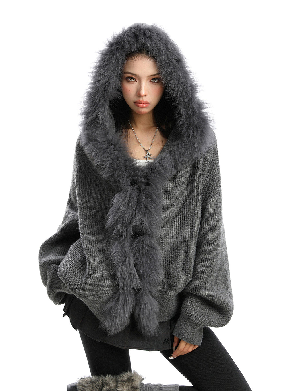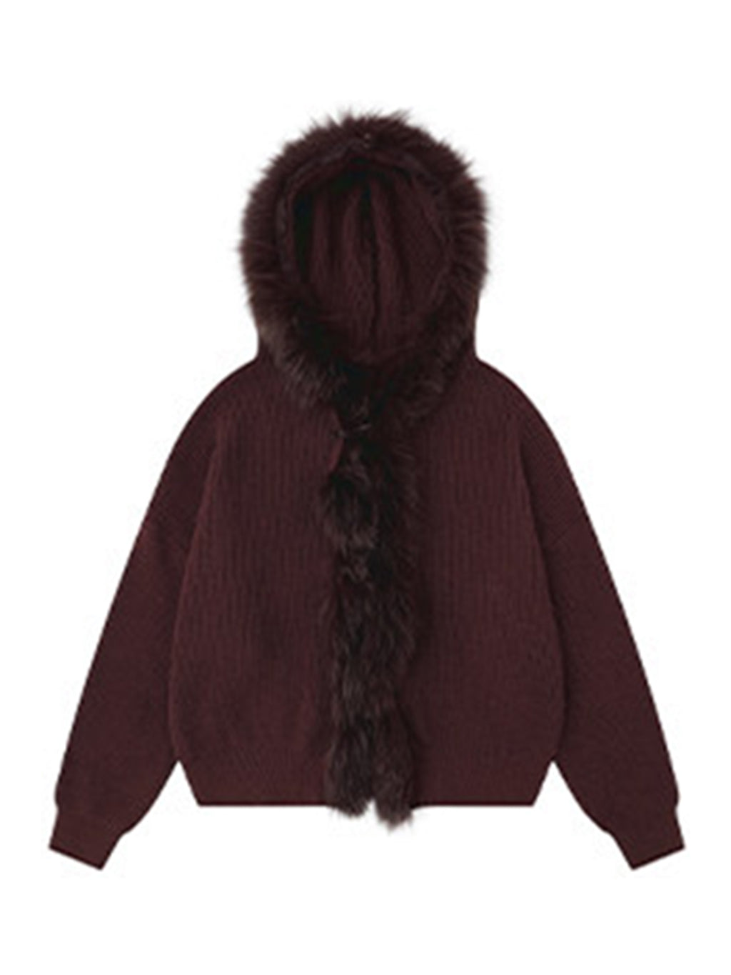 BIGGOLD | Fur Trimmed Hood Knit Sweater