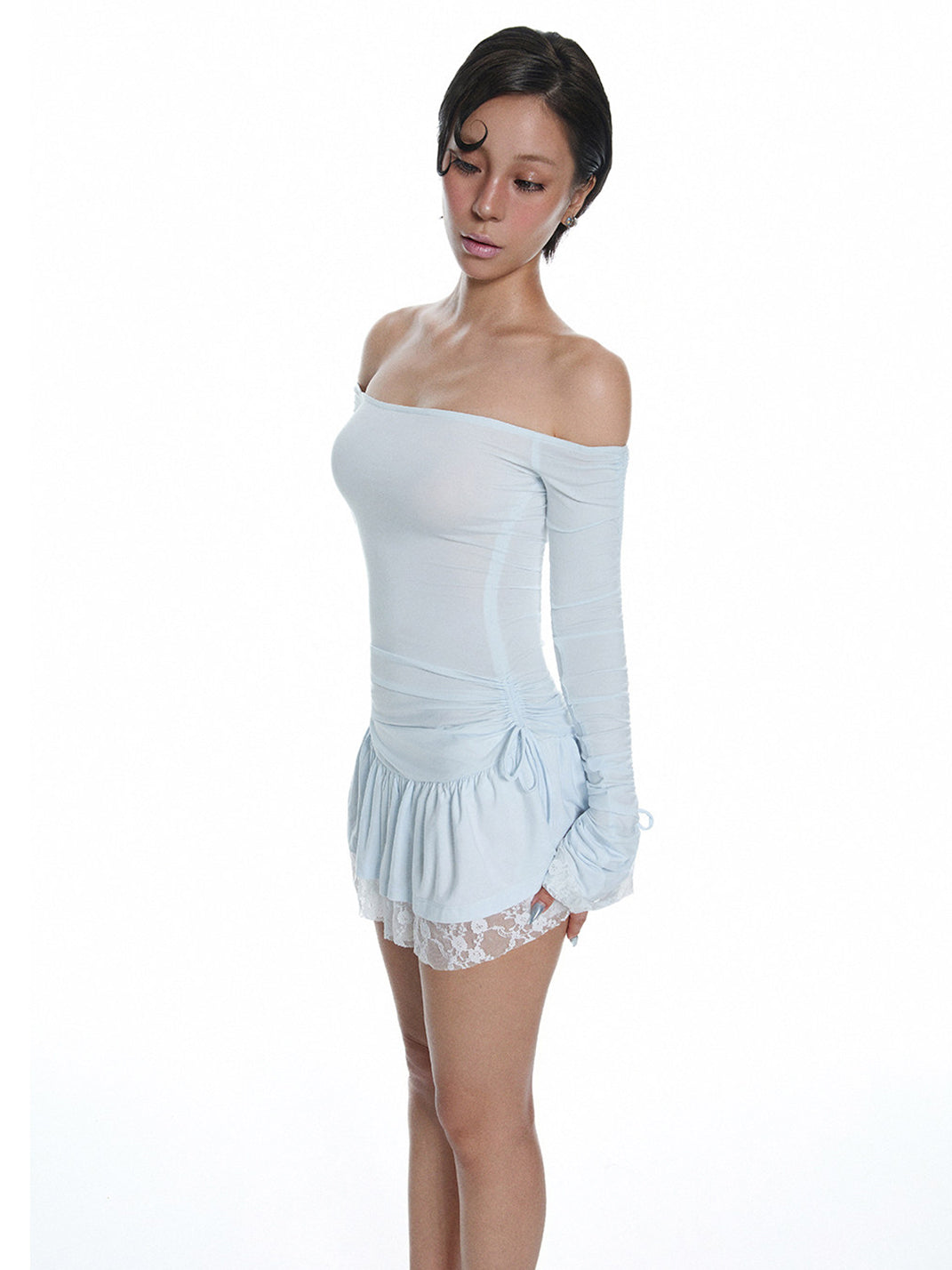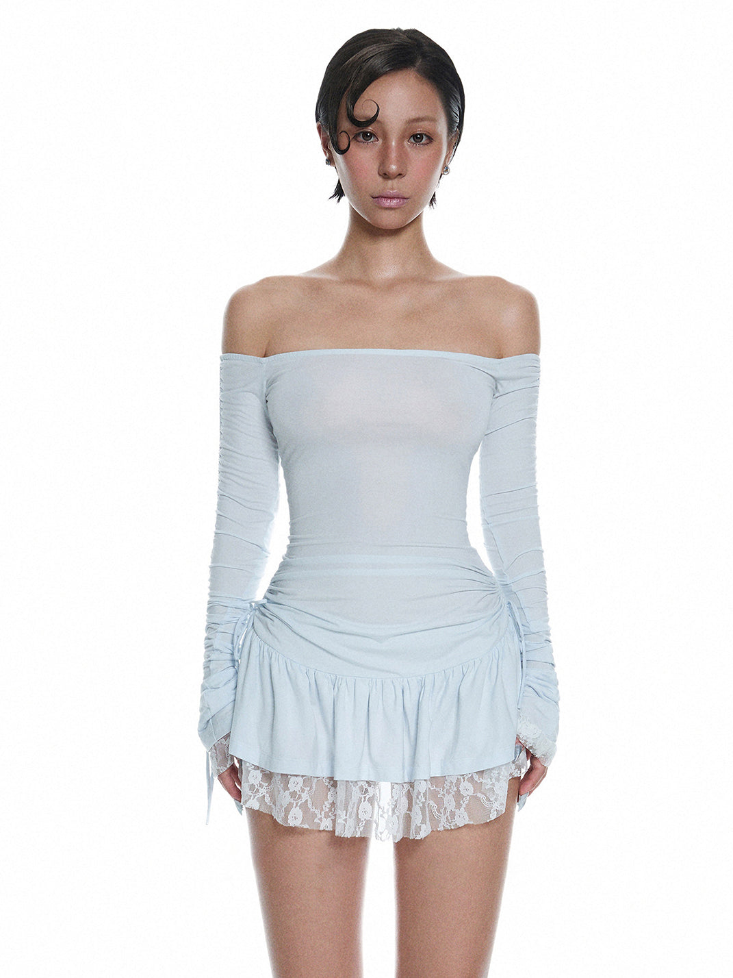 LIAN | Off-The-Shoulder Light Blue Lace Dress