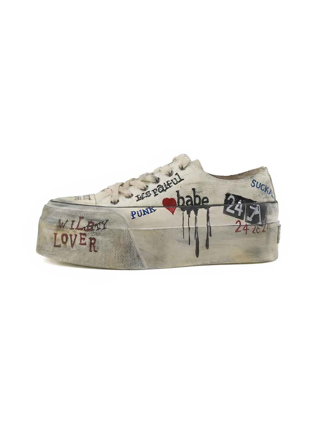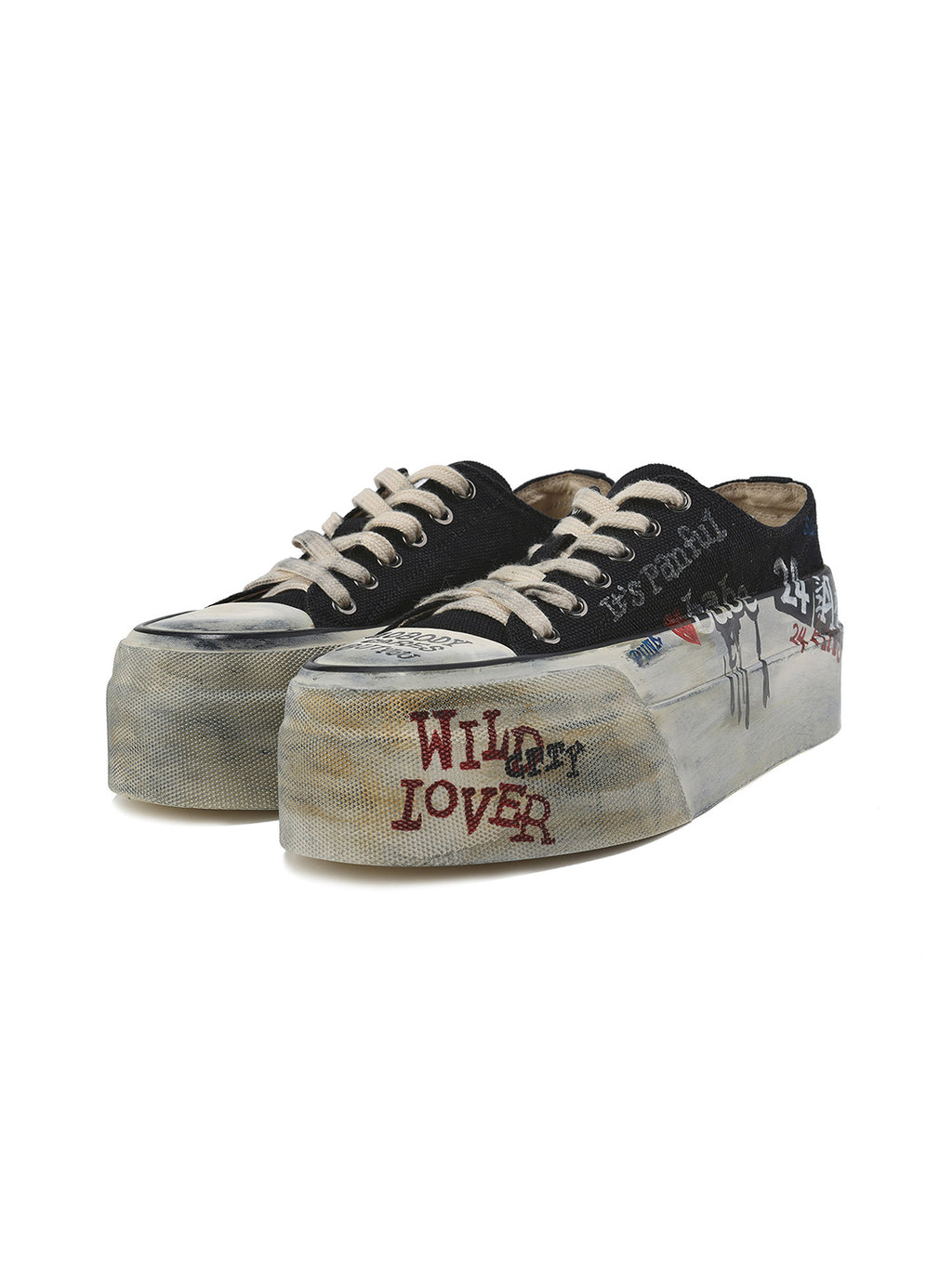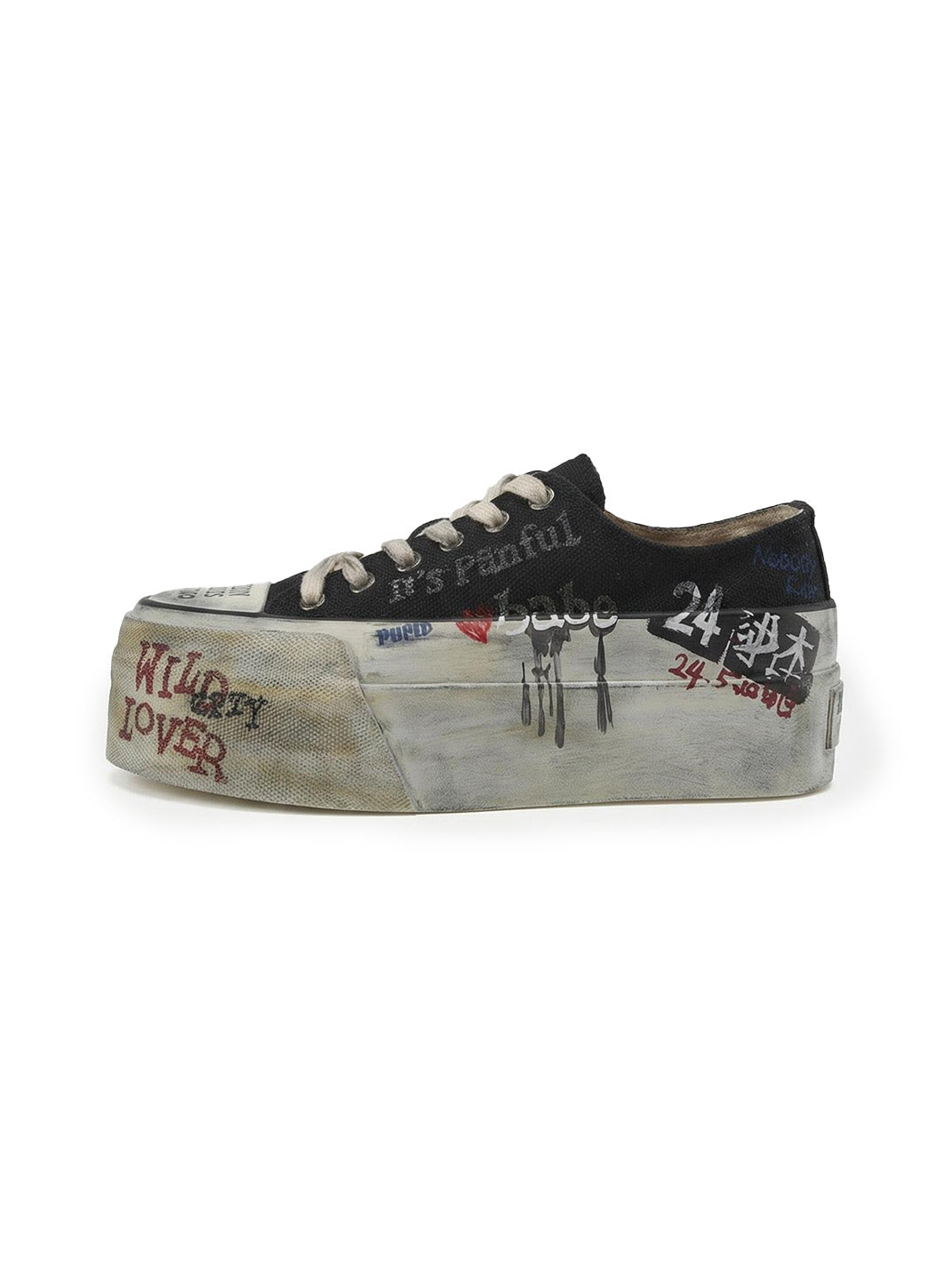 24ANS | Graffiti-Covered Platform Canvas Shoes