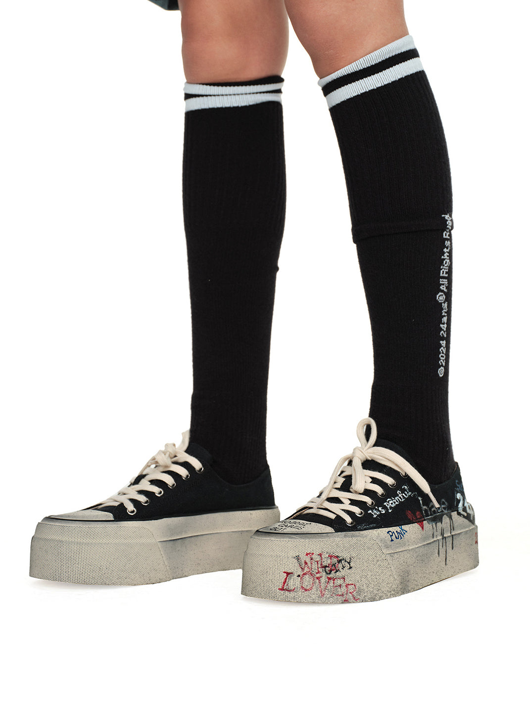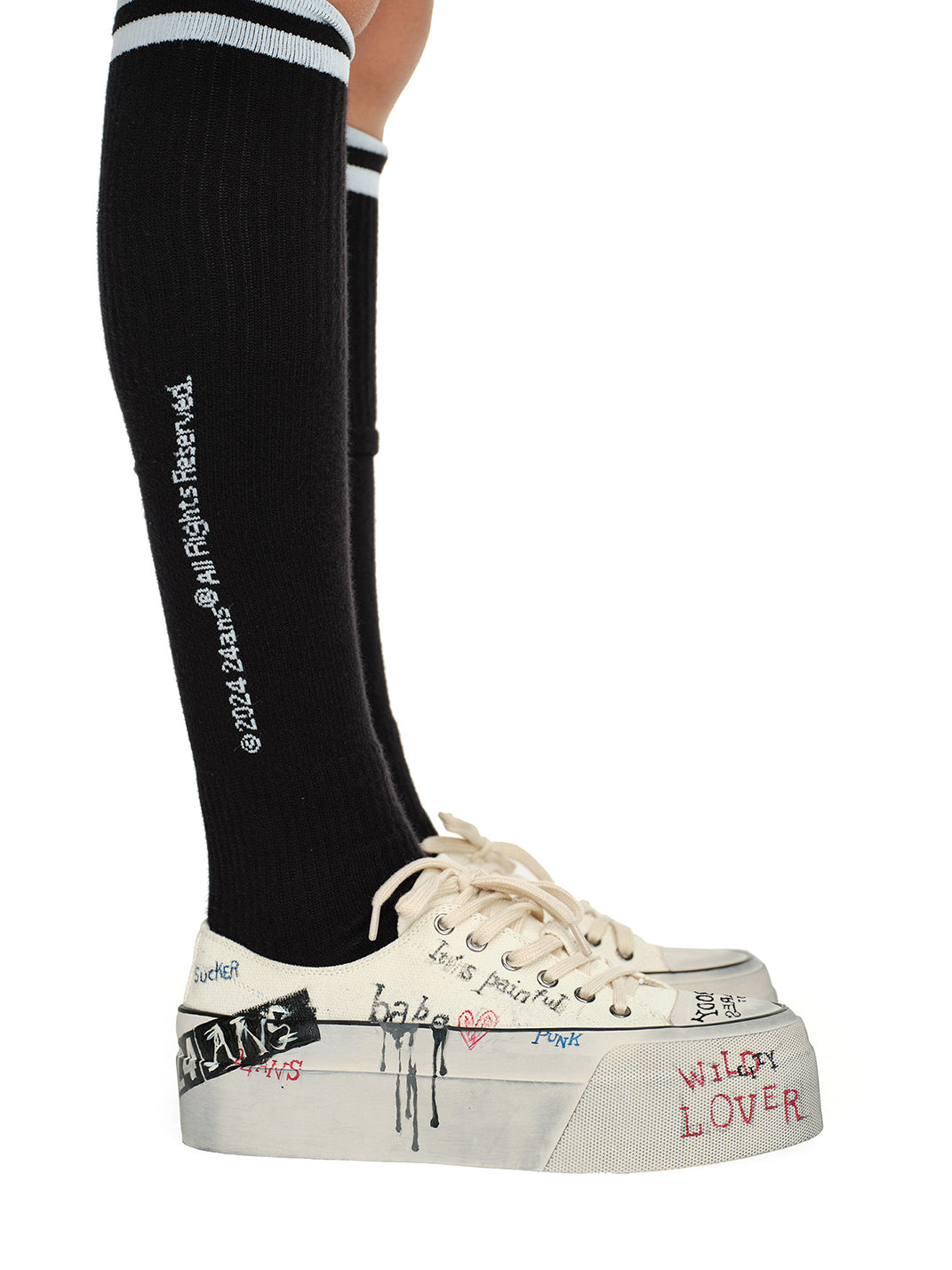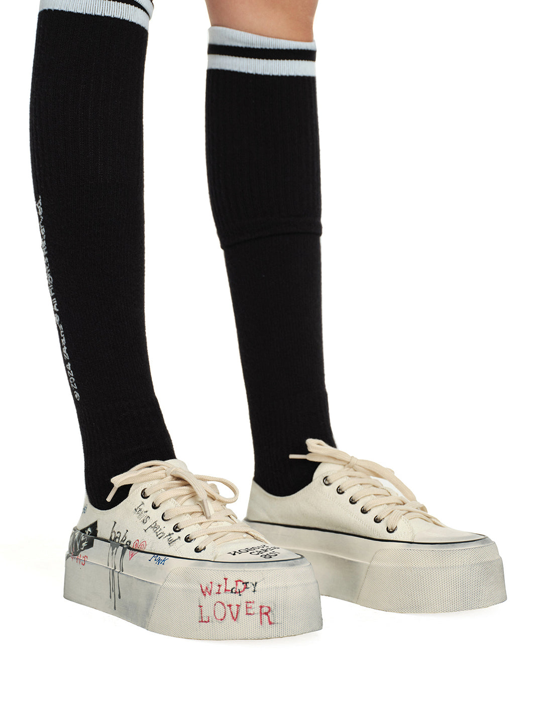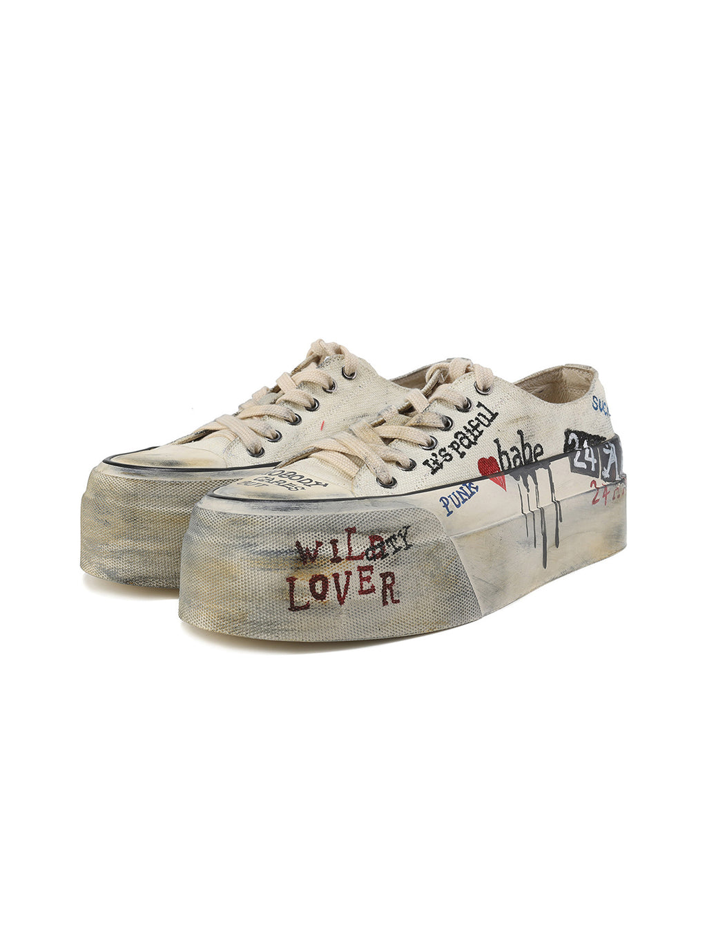 24ANS | Graffiti-Covered Platform Canvas Shoes