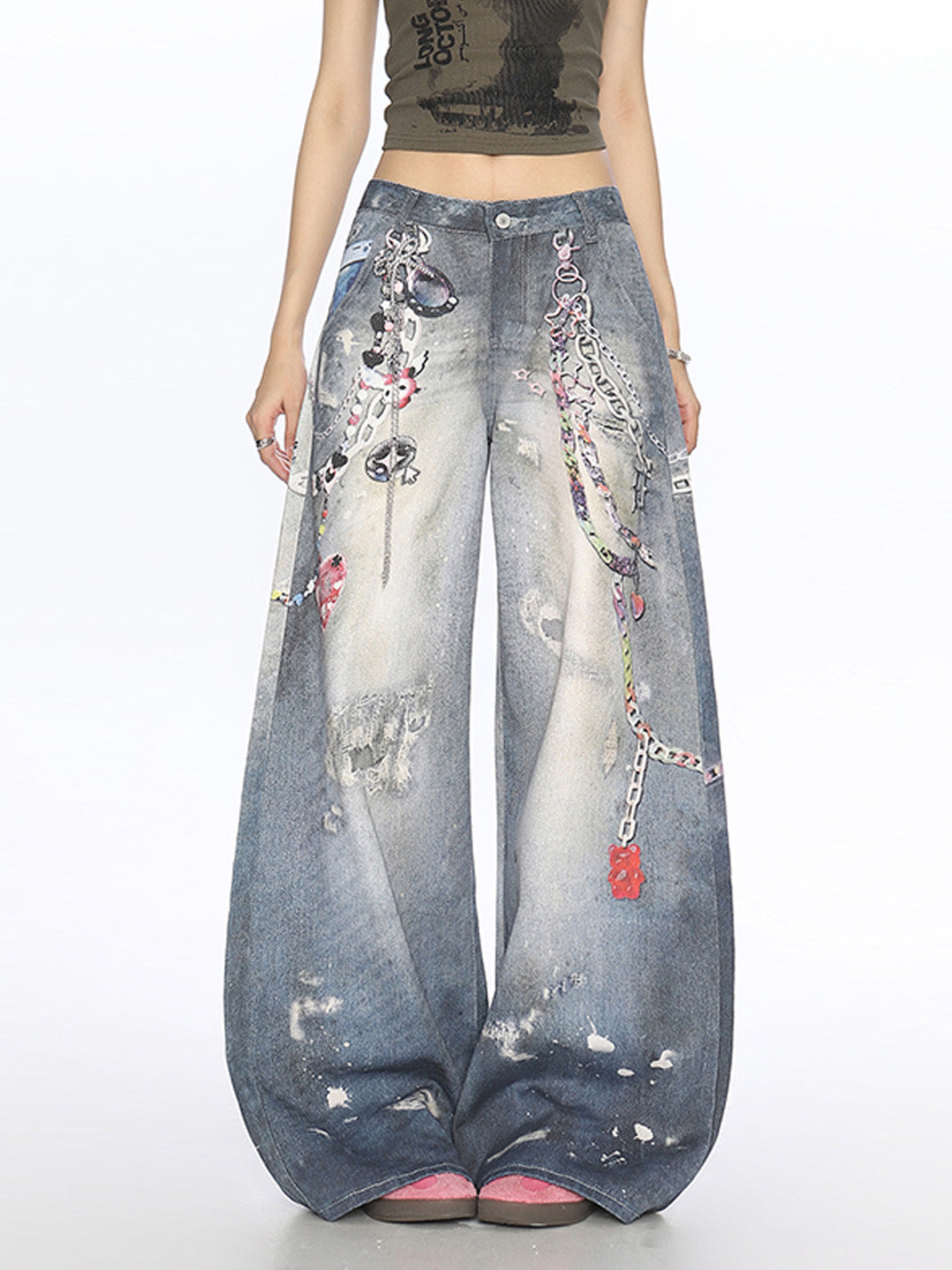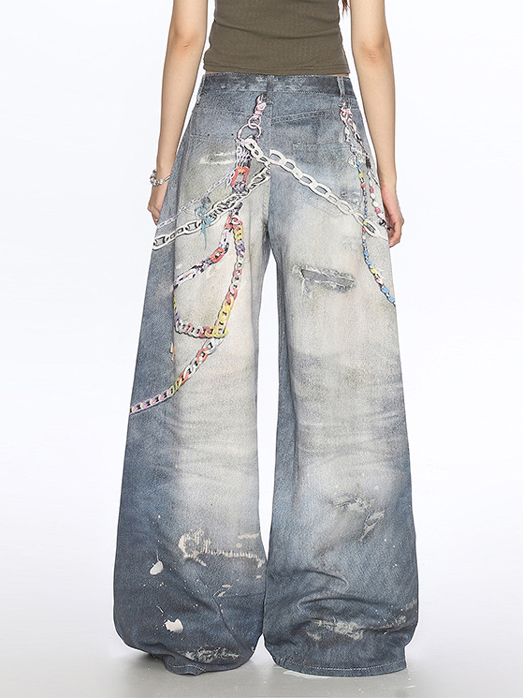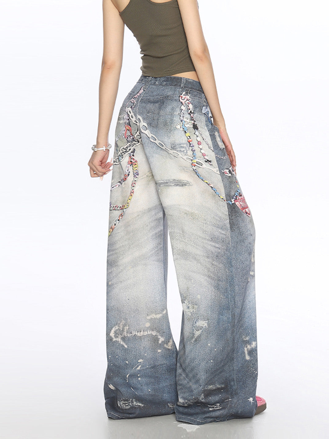 BIGGOLD | Graffiti Chain Print Wide Leg Jeans saltar al contenido