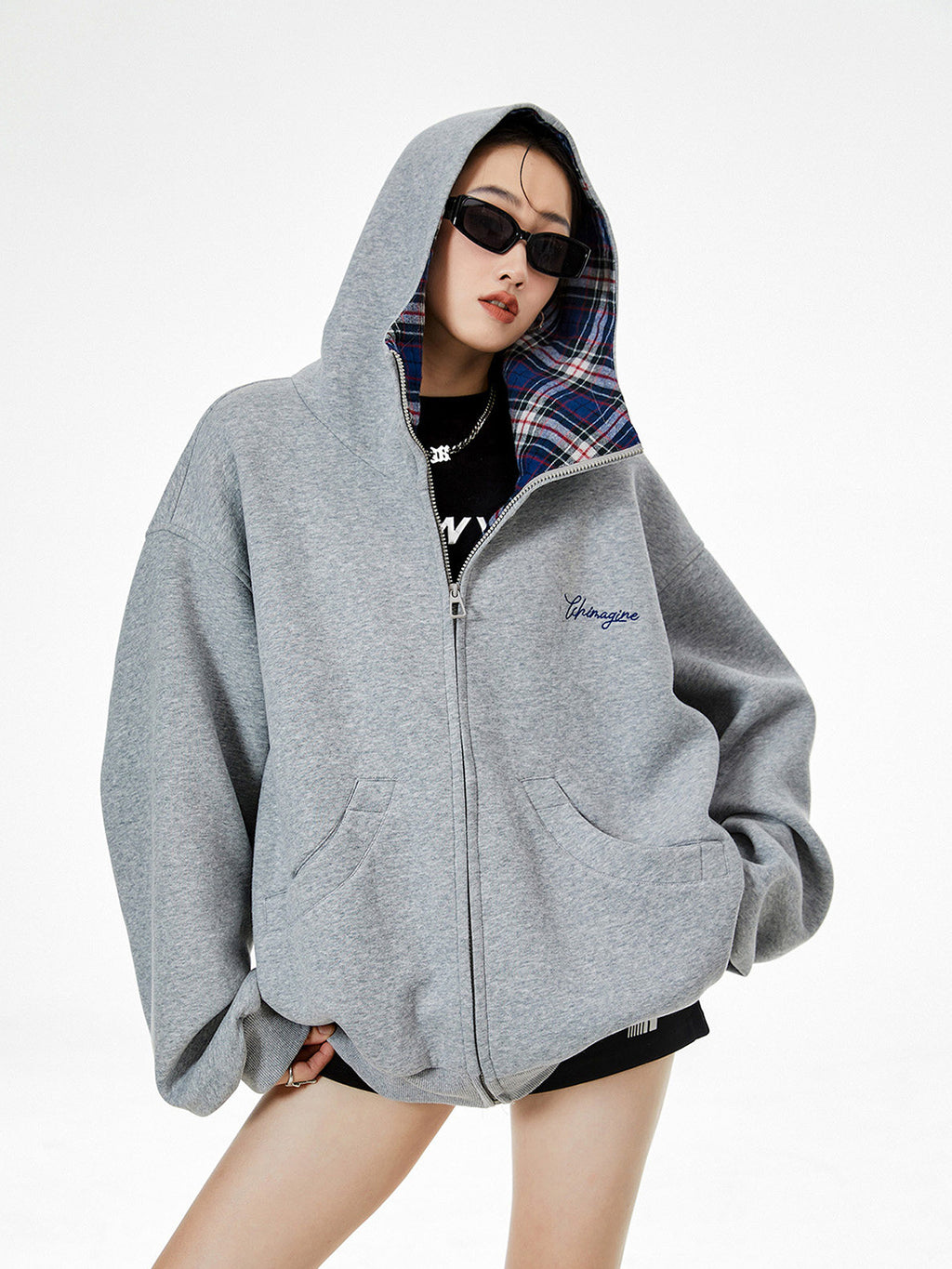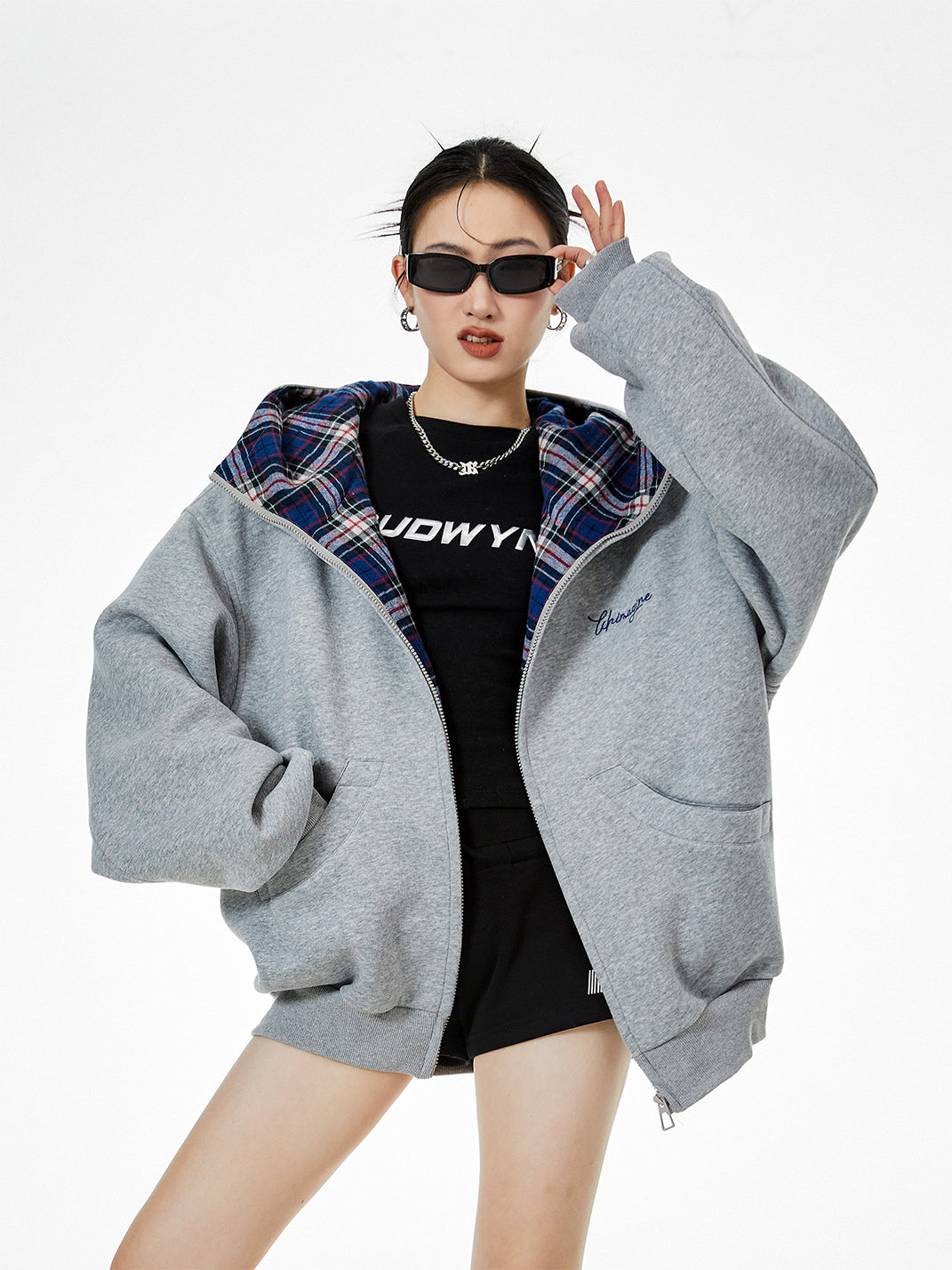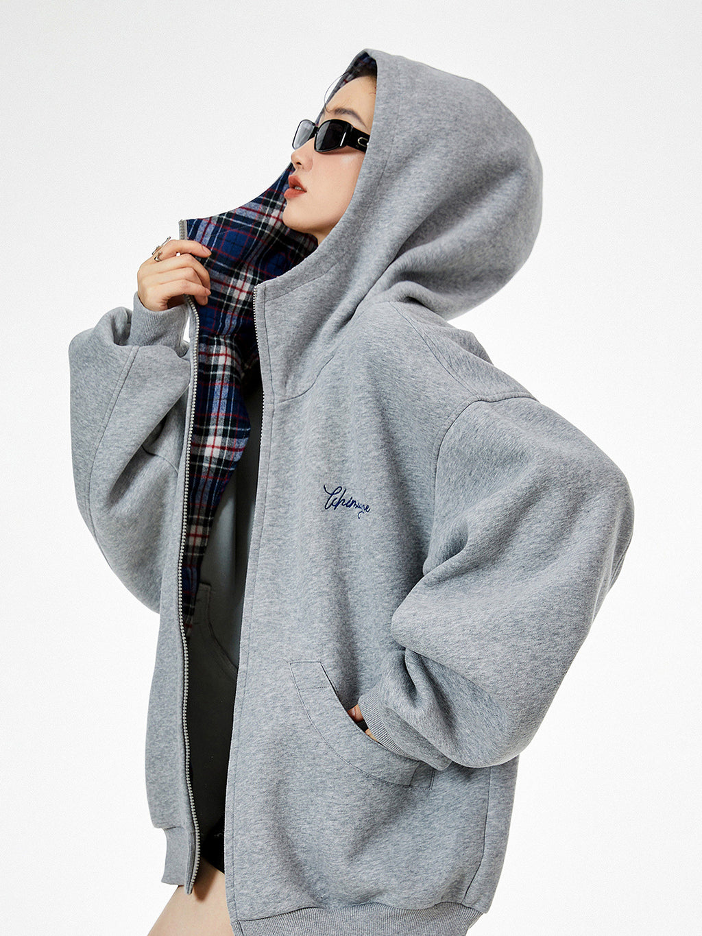 ICH MODE | Plaid Patchwork Hooded Sweatshirt saltar al contenido