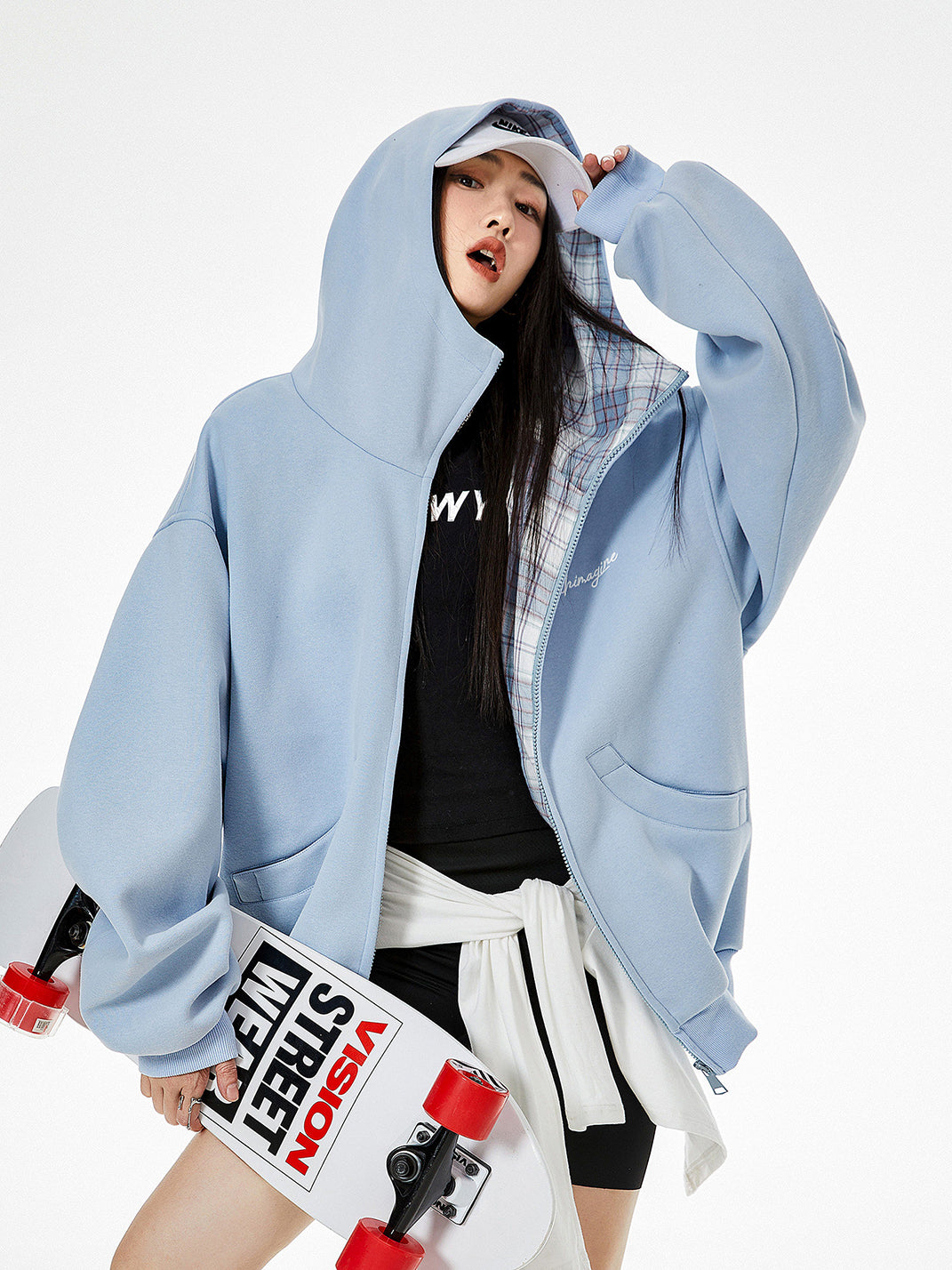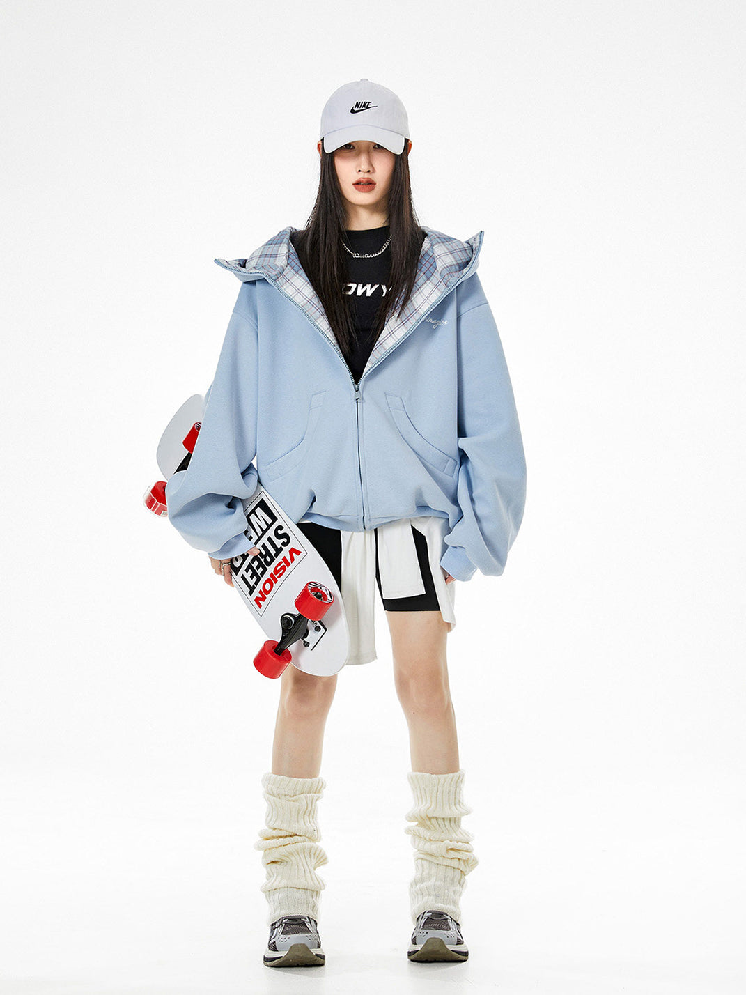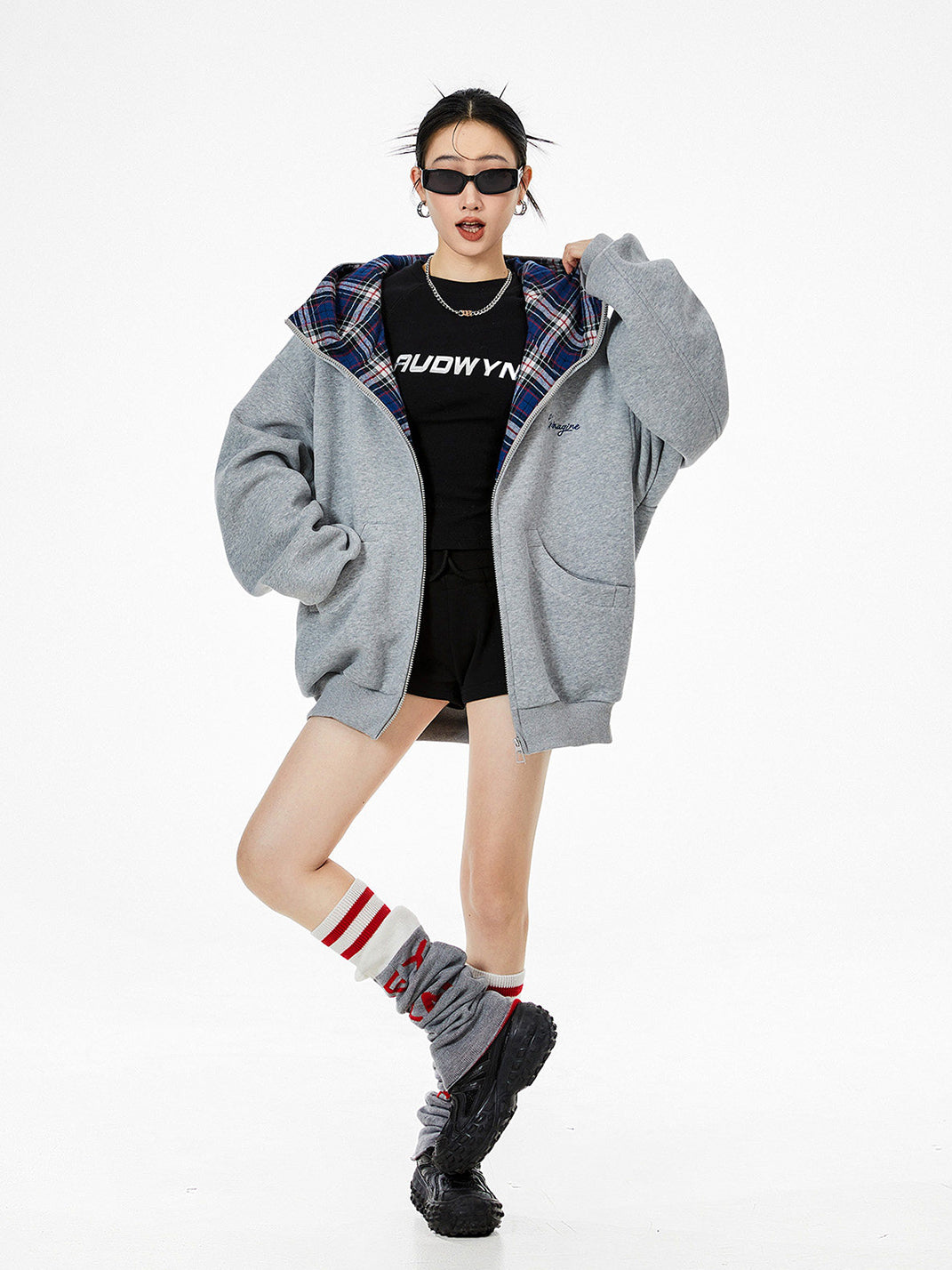 ICH MODE | Plaid Patchwork Hooded Sweatshirt saltar al contenido