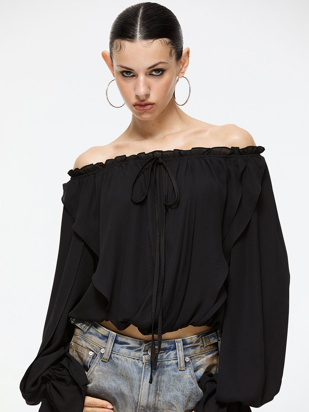 Latelylab | Chiffon Long-Sleeved Off-Shoulder Top saltar al contenido