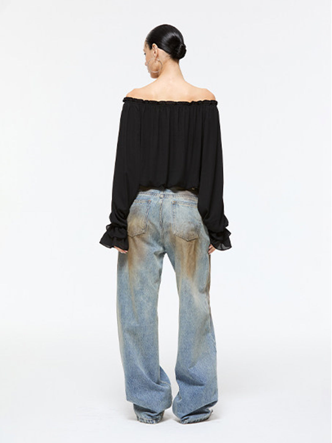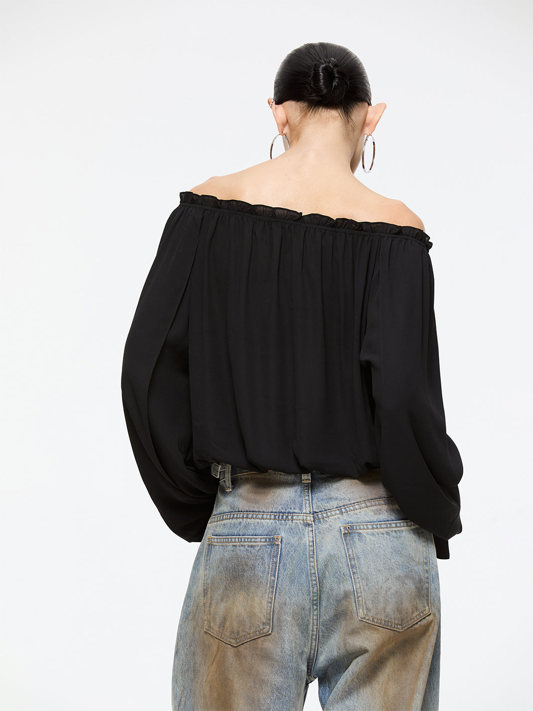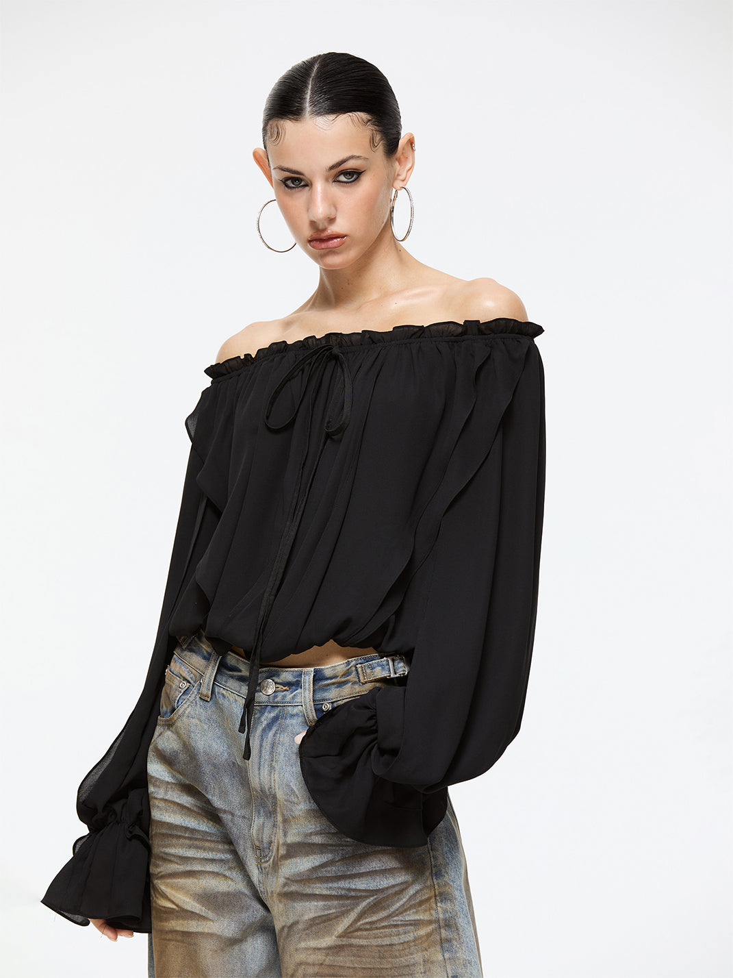 Latelylab | Chiffon Long-Sleeved Off-Shoulder Top