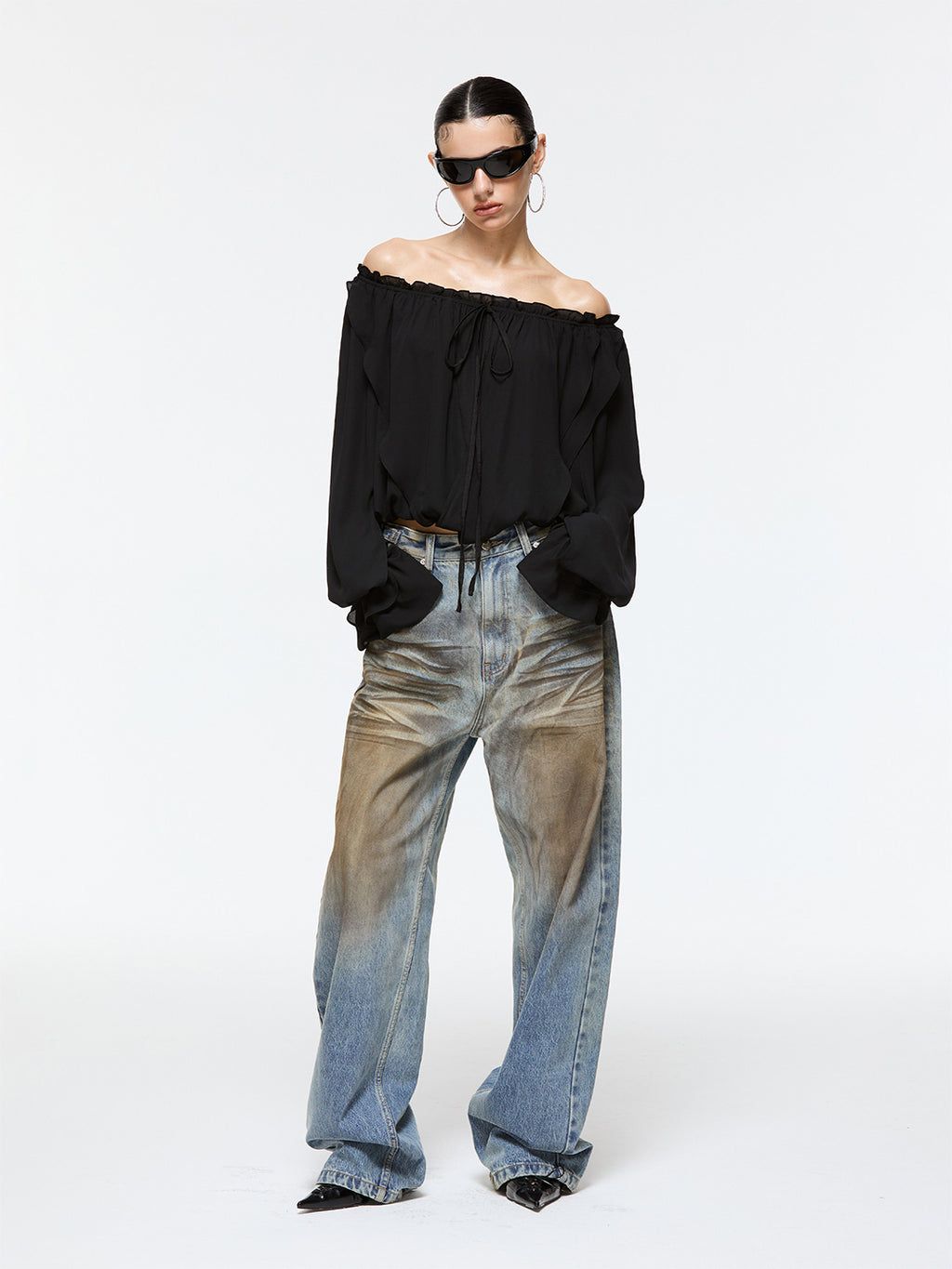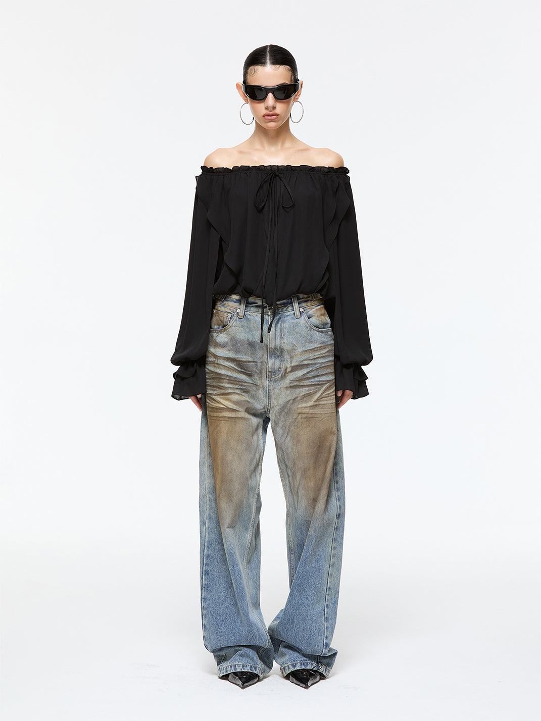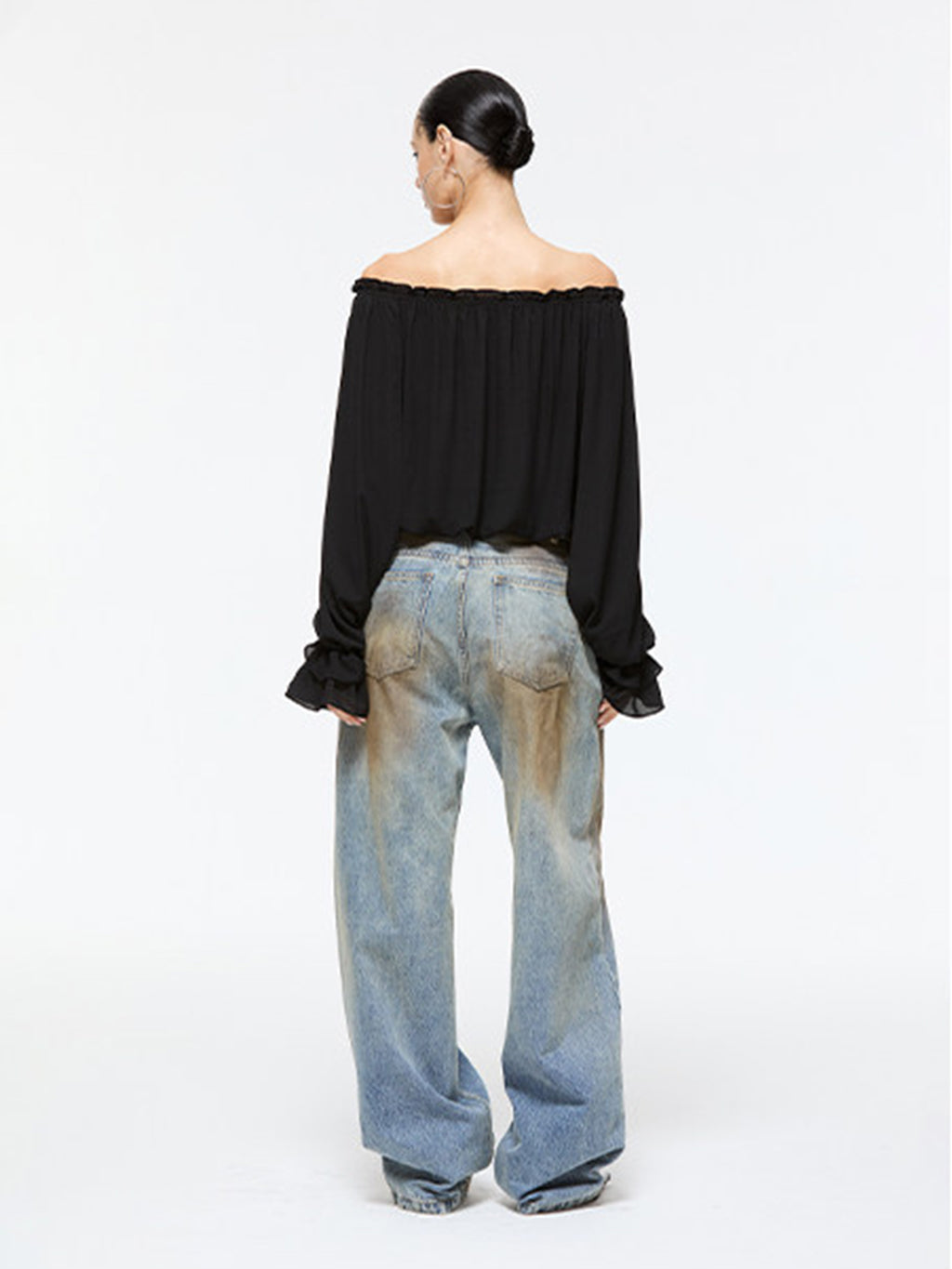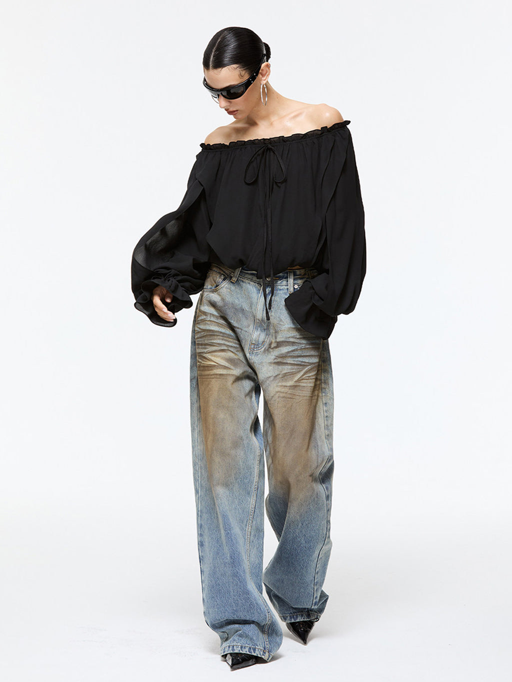 Latelylab | Chiffon Long-Sleeved Off-Shoulder Top