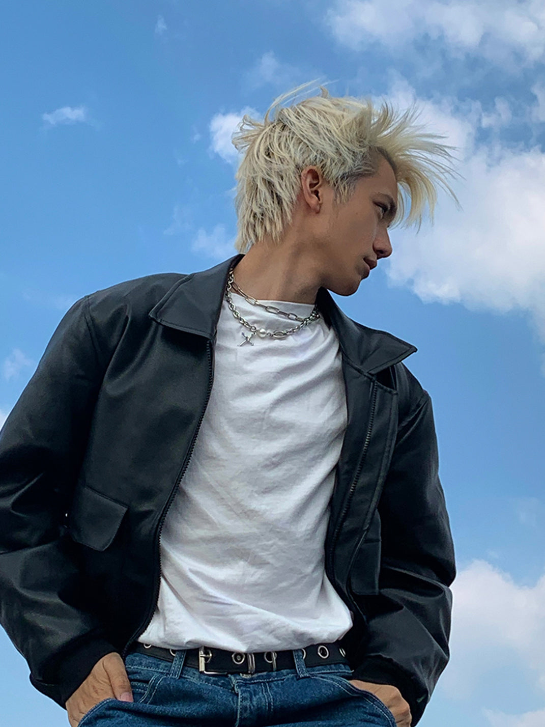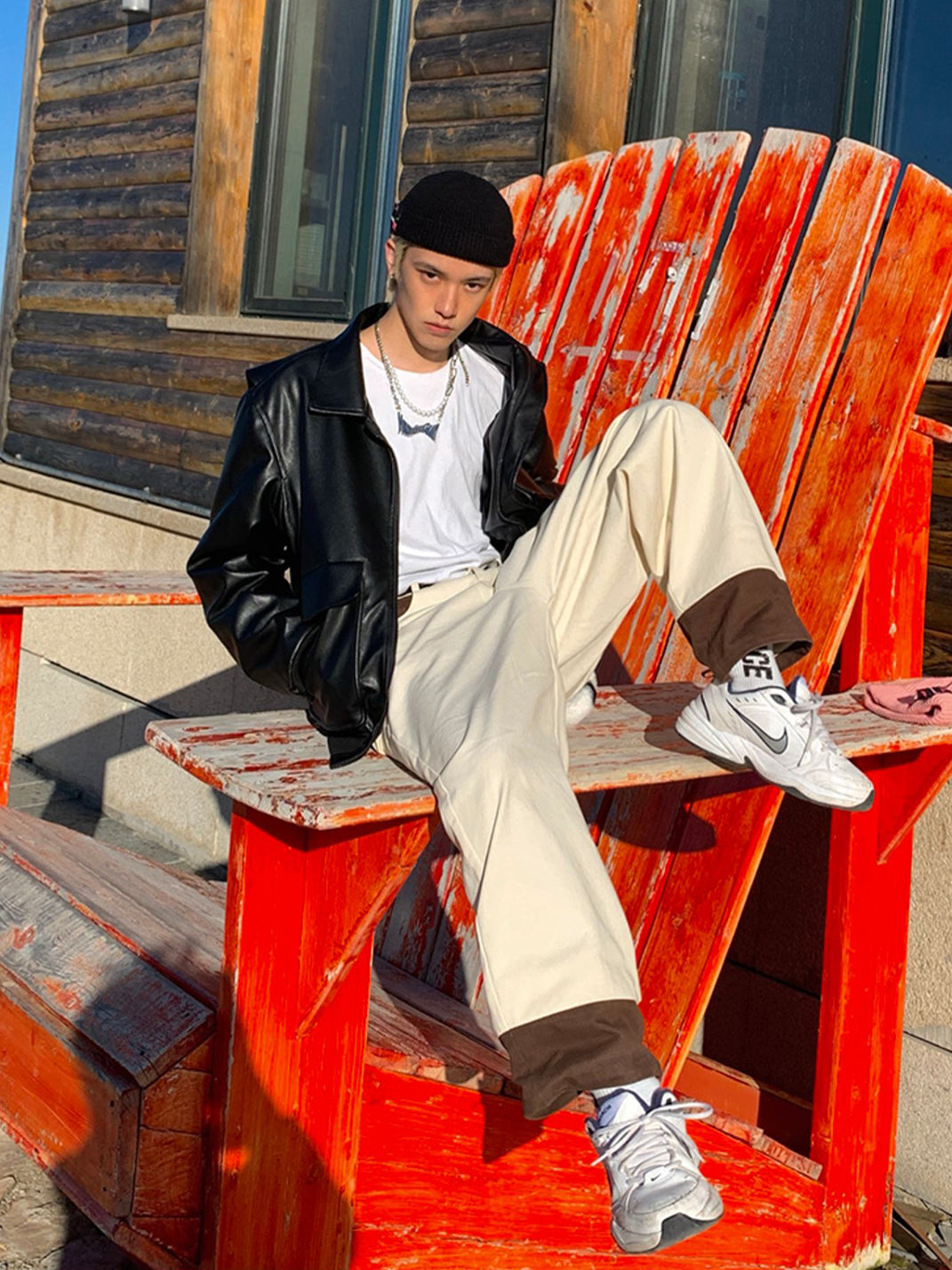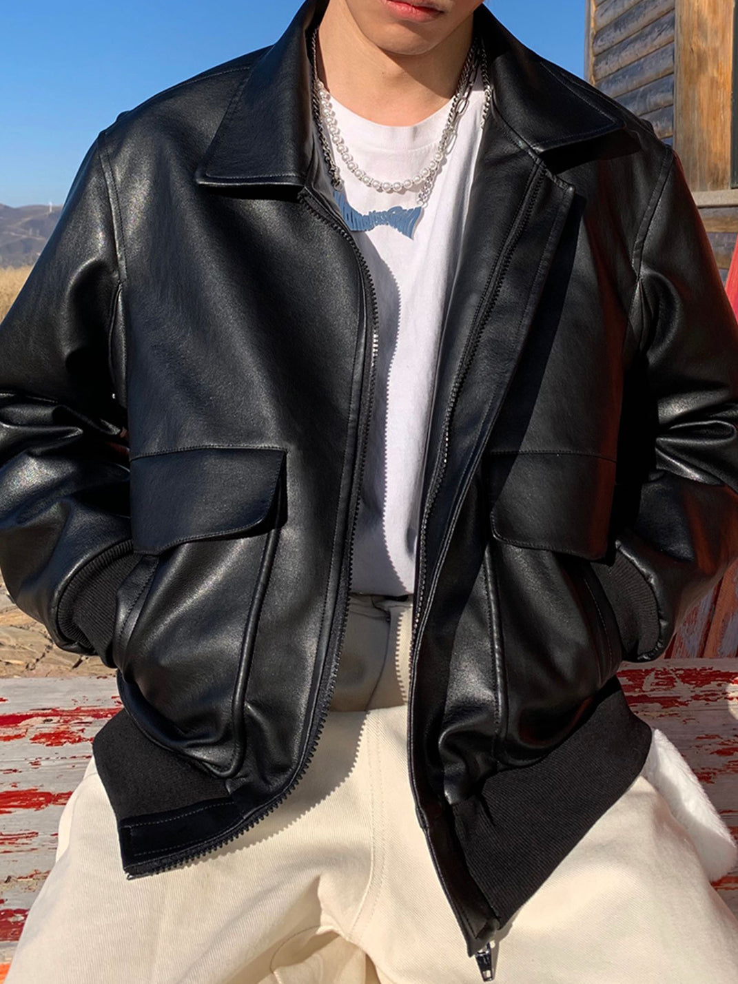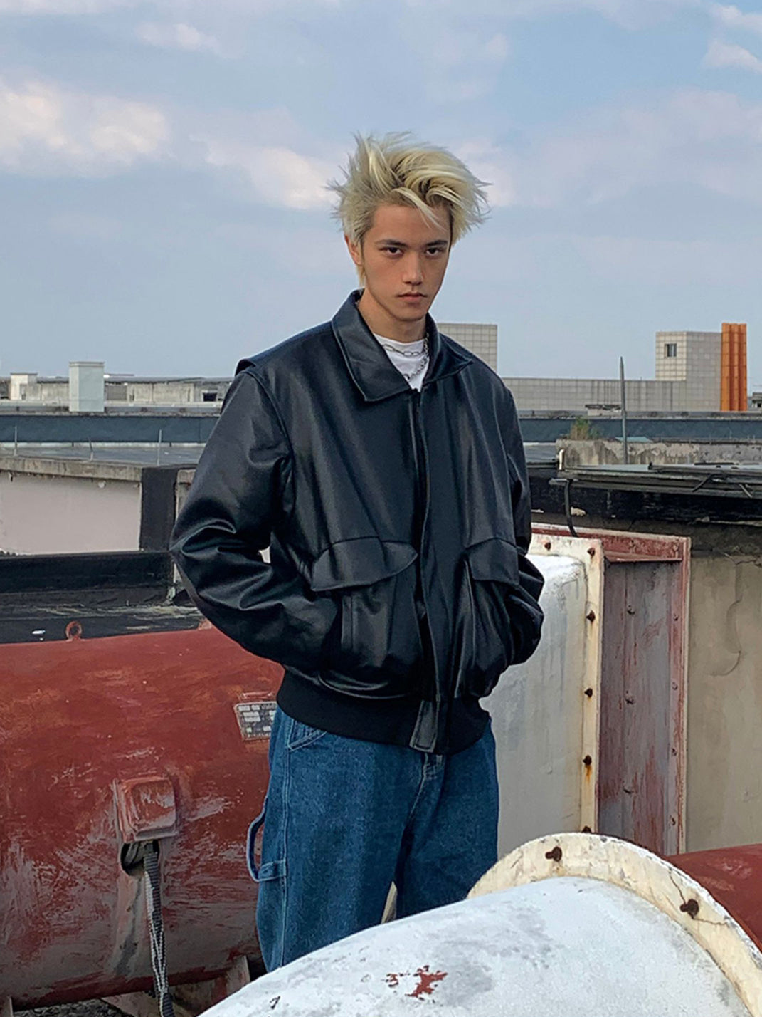 MMHG | Vintage Towel Embroidery Contrast Logo Loose Fit Leather Jacket saltar al contenido