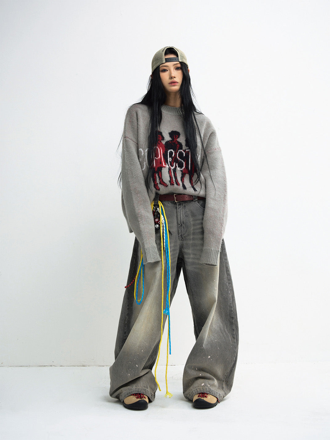 PEOPLESENSE | Original Lazy Style Graphic Pullover Sweater