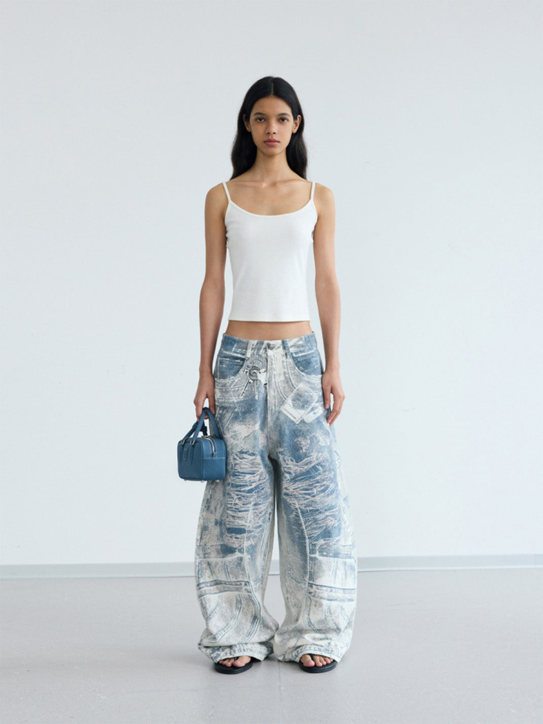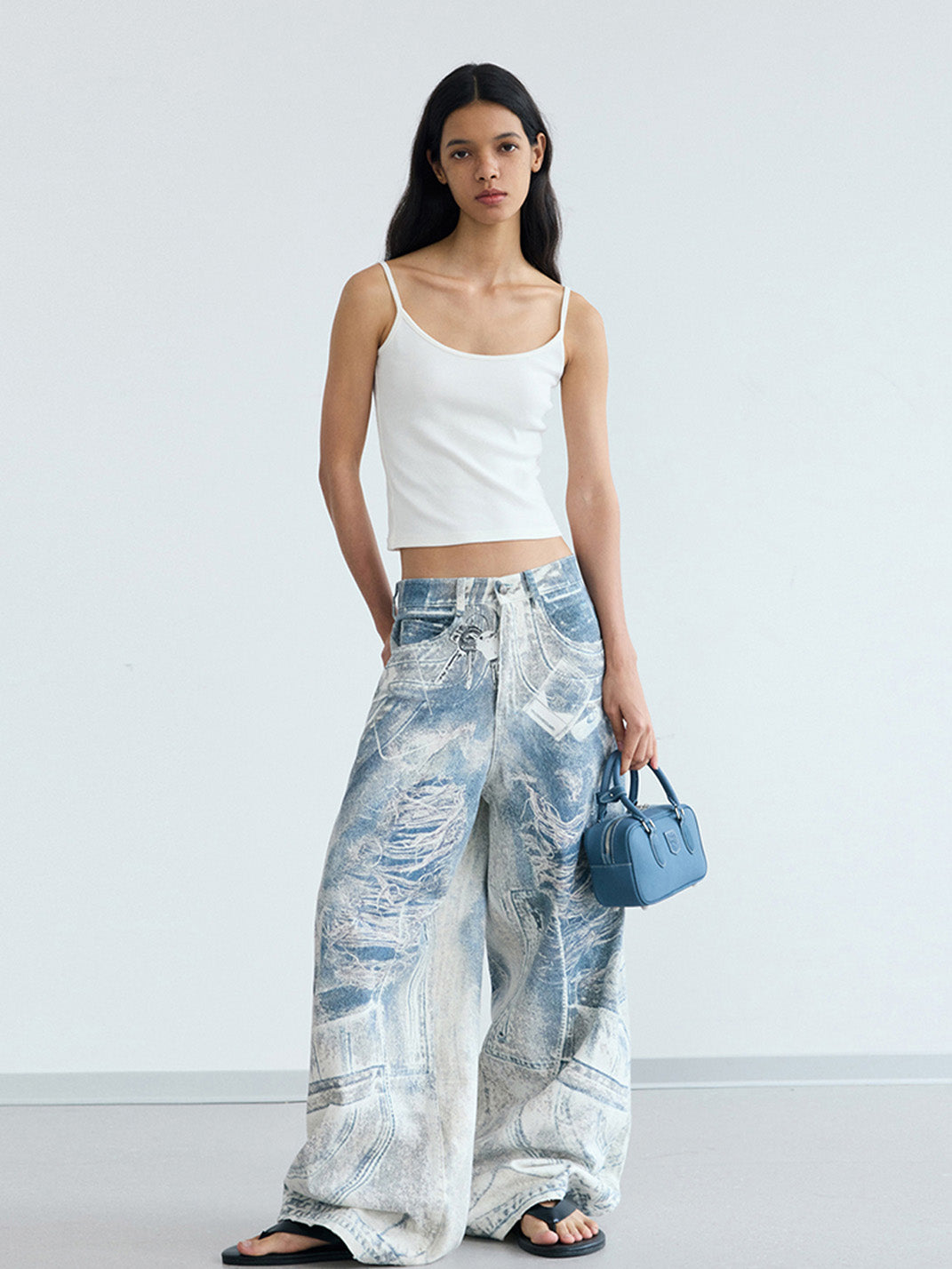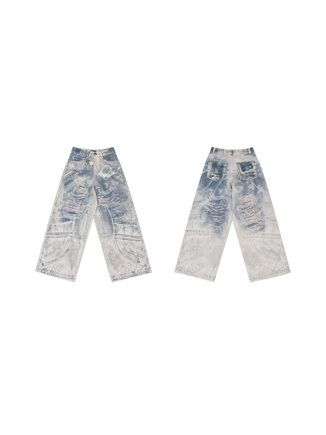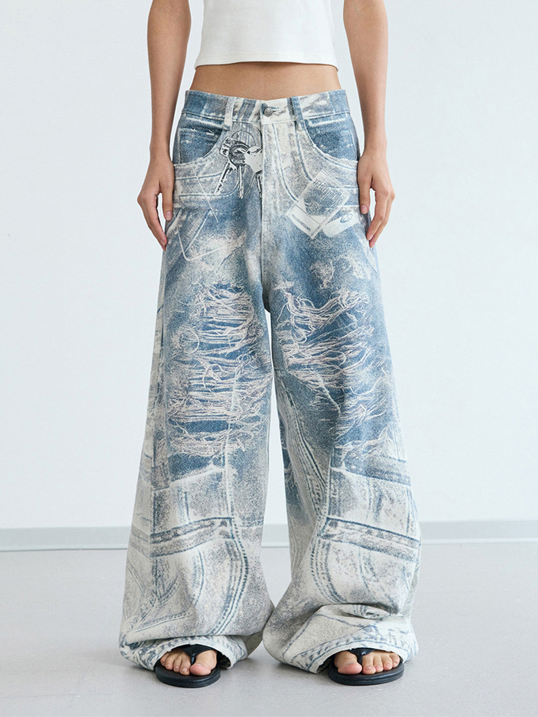 PEOPLESENSE | Vintage 3D Printed Denim Pants saltar al contenido