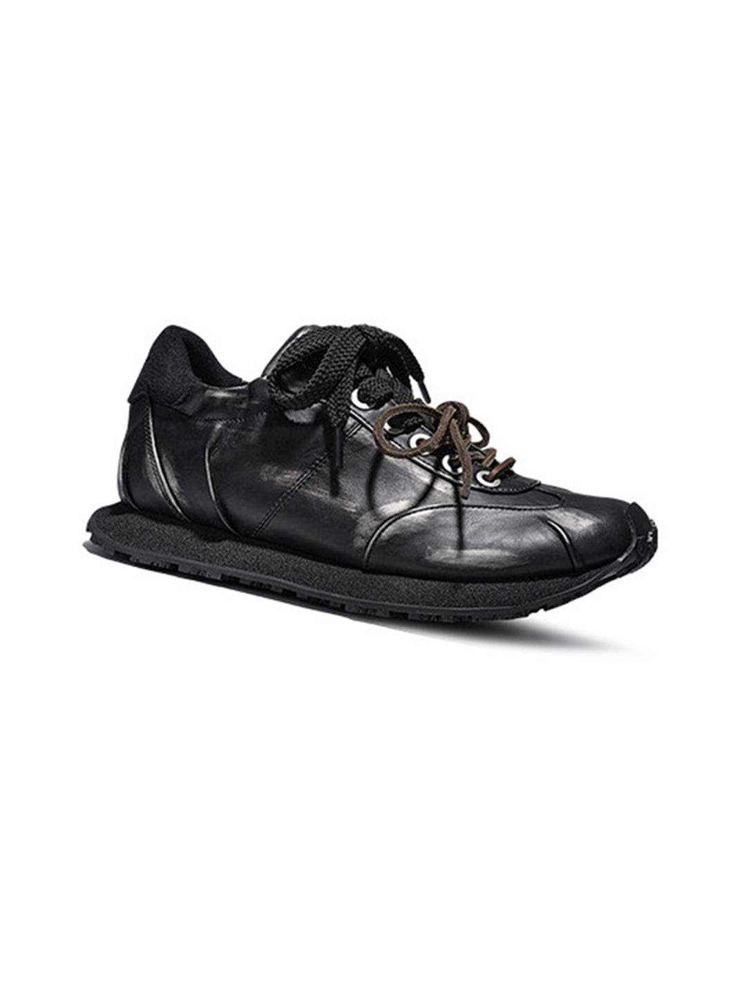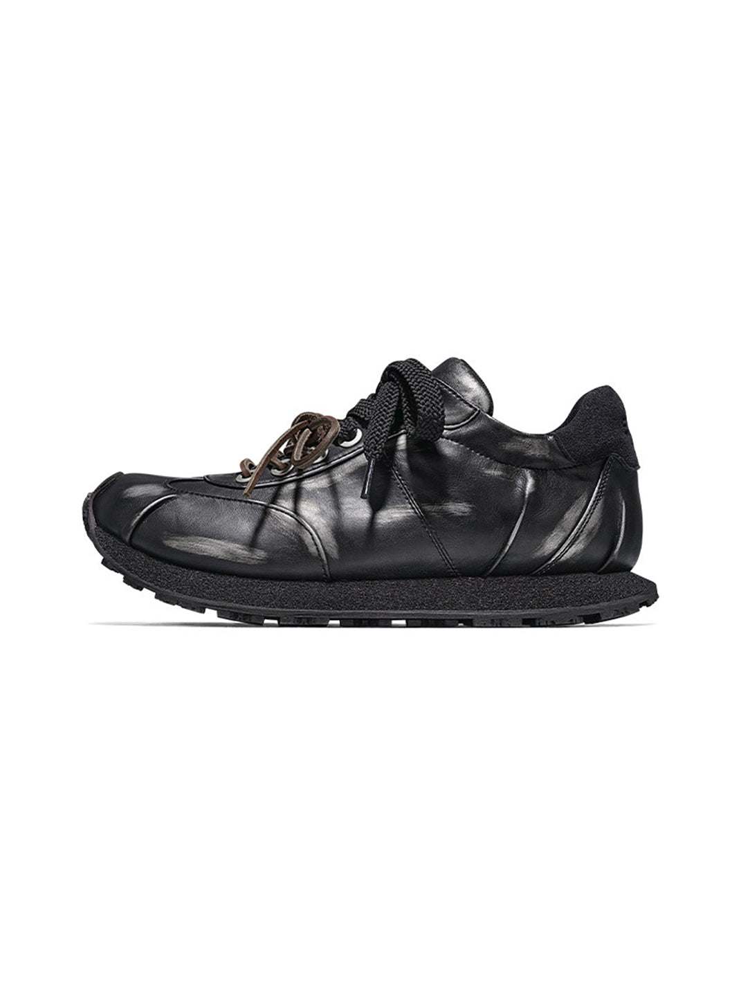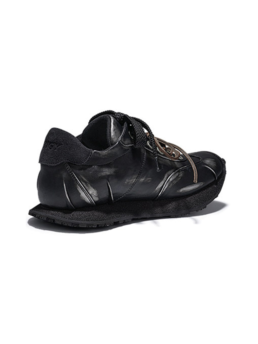 SALAXI | Contrast Shoelaces Leather Forrest Gump Shoes-Black