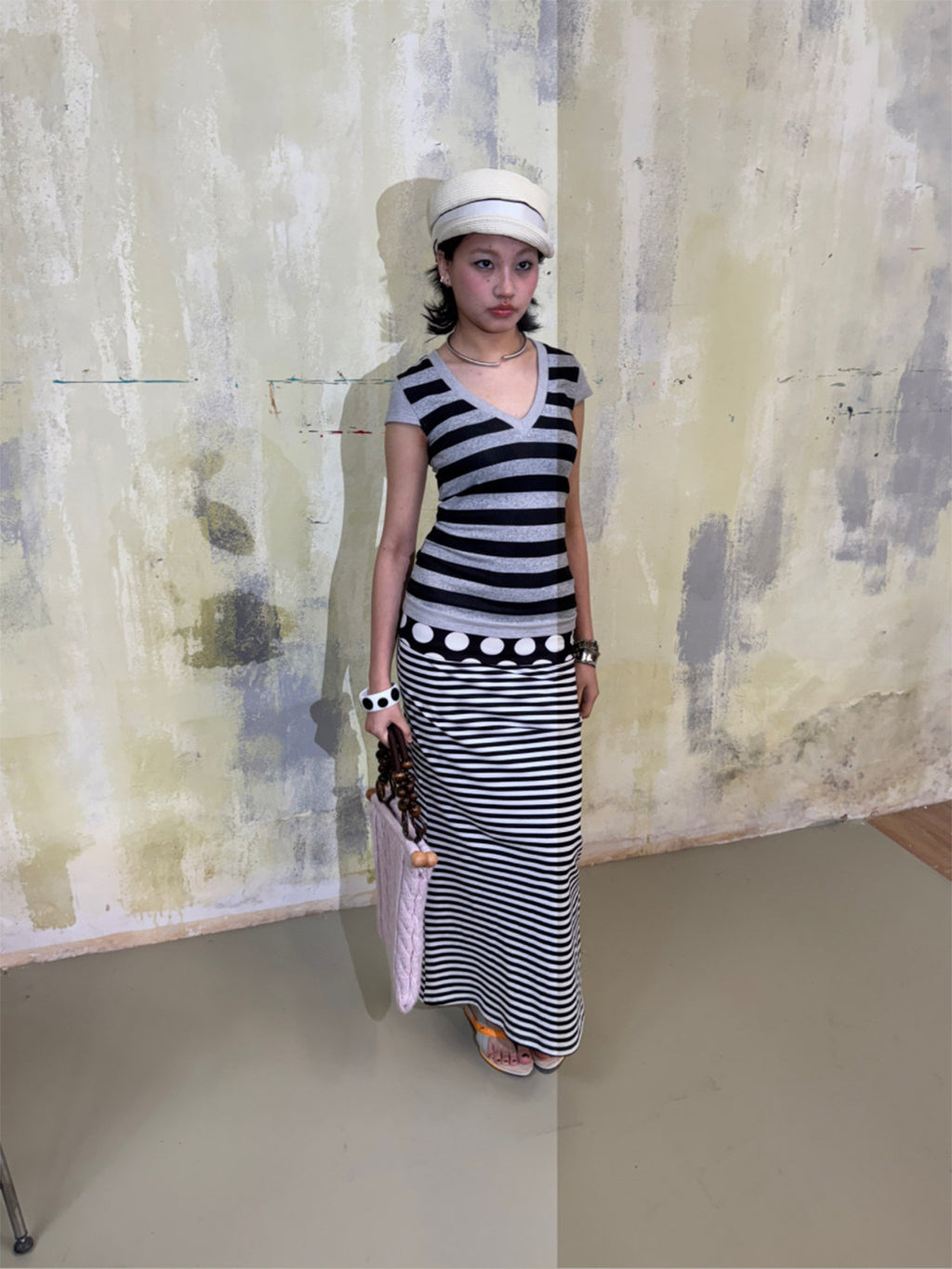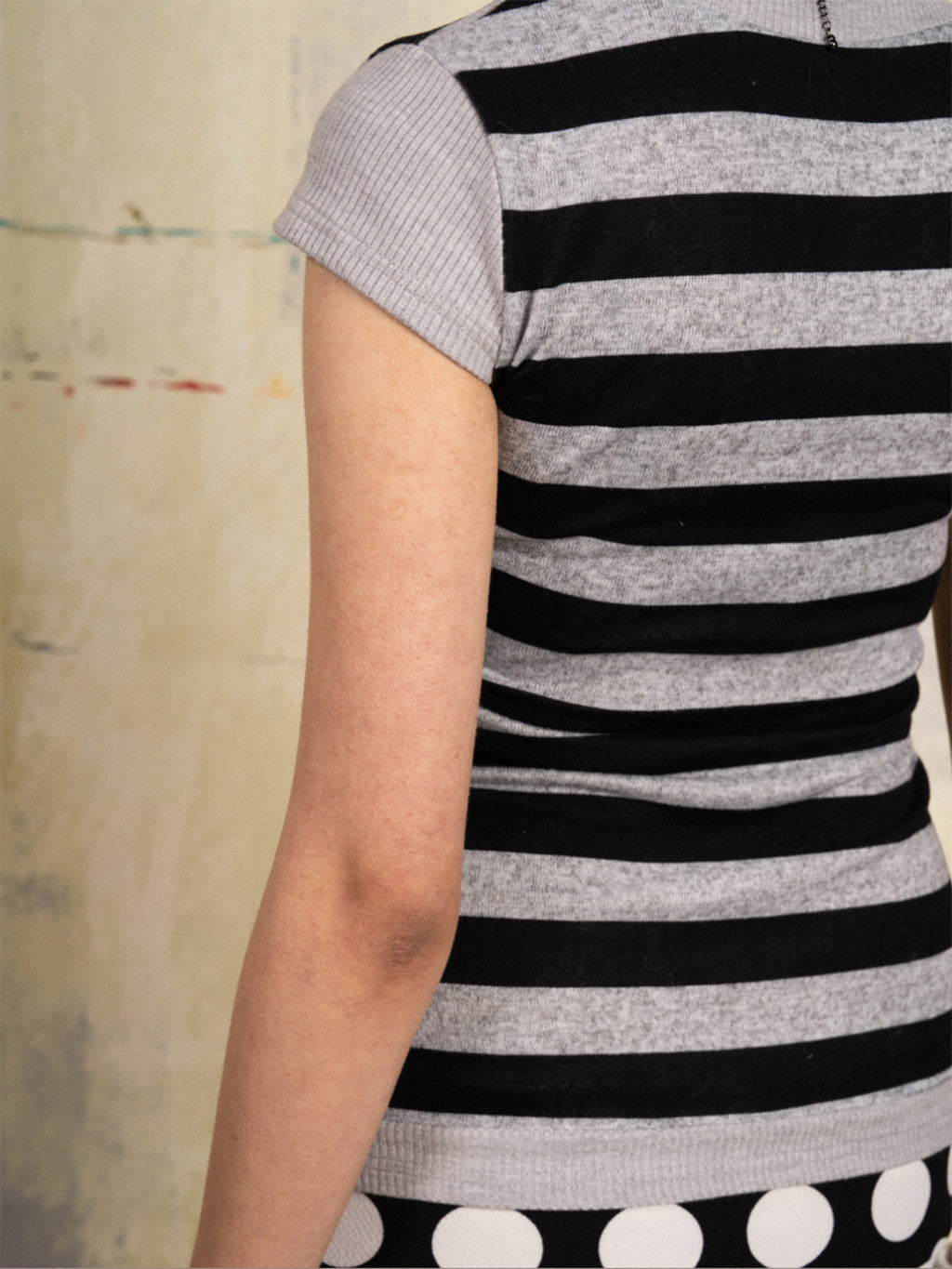SUNNY | V-Neck Striped Patchwork Short-Sleeved Top saltar al contenido