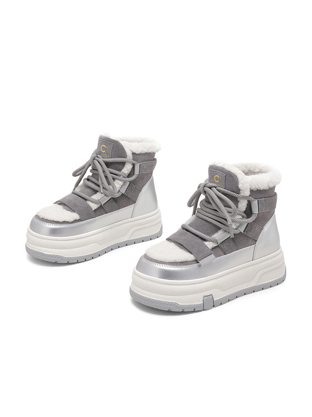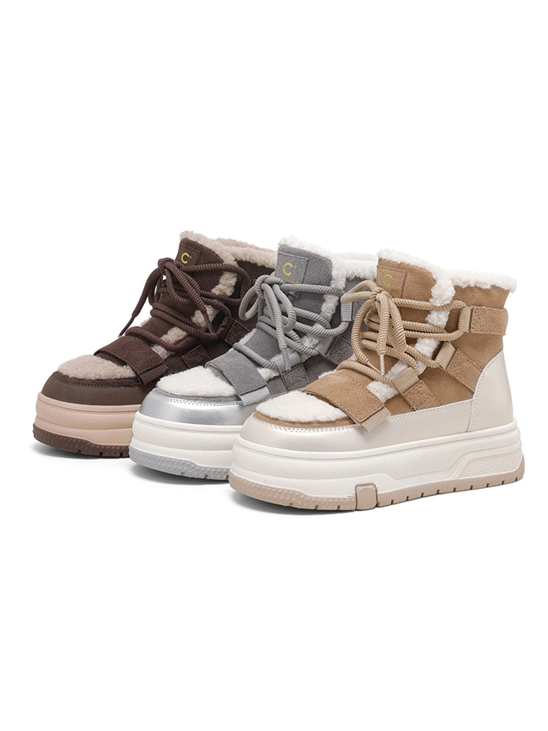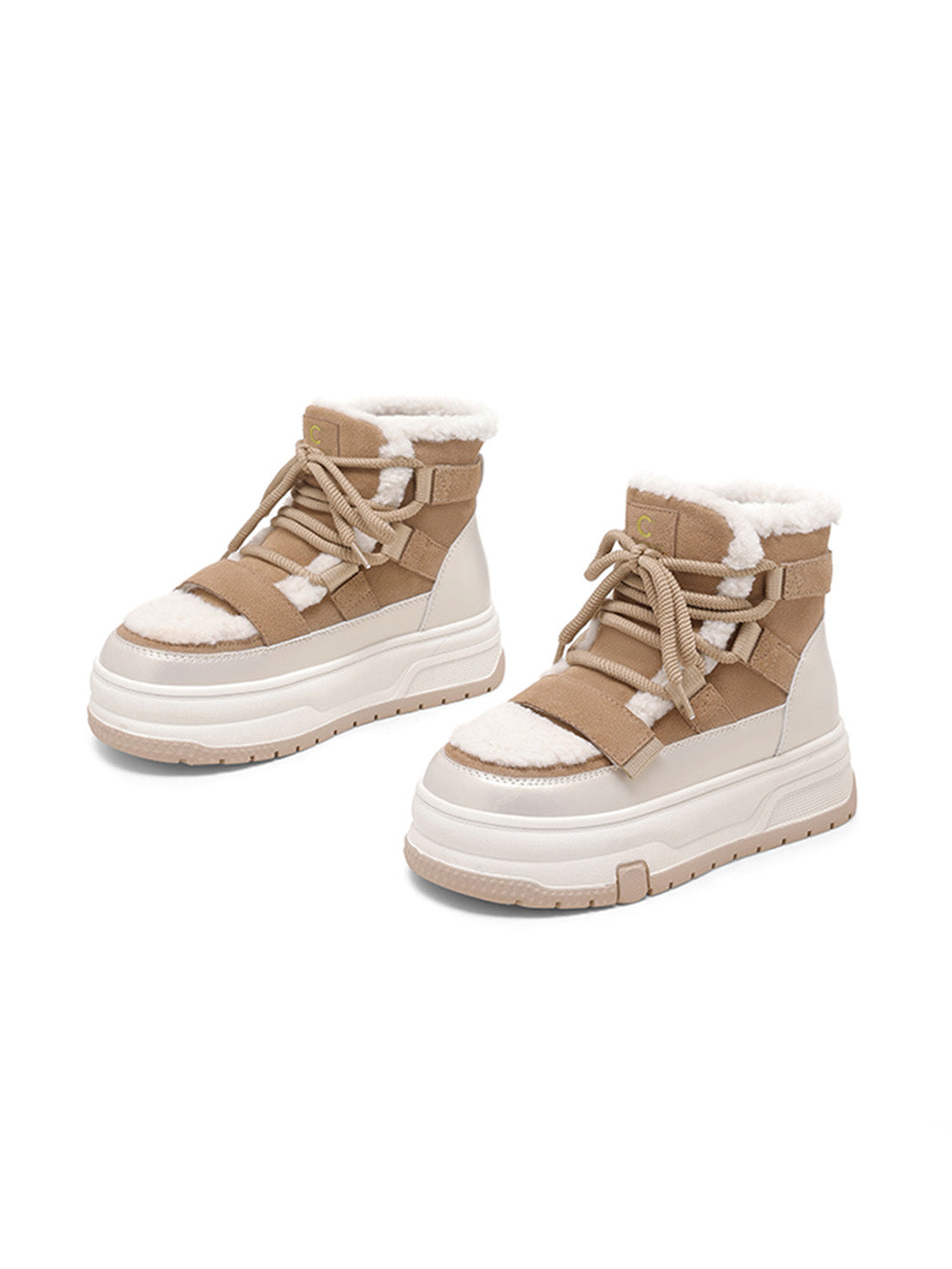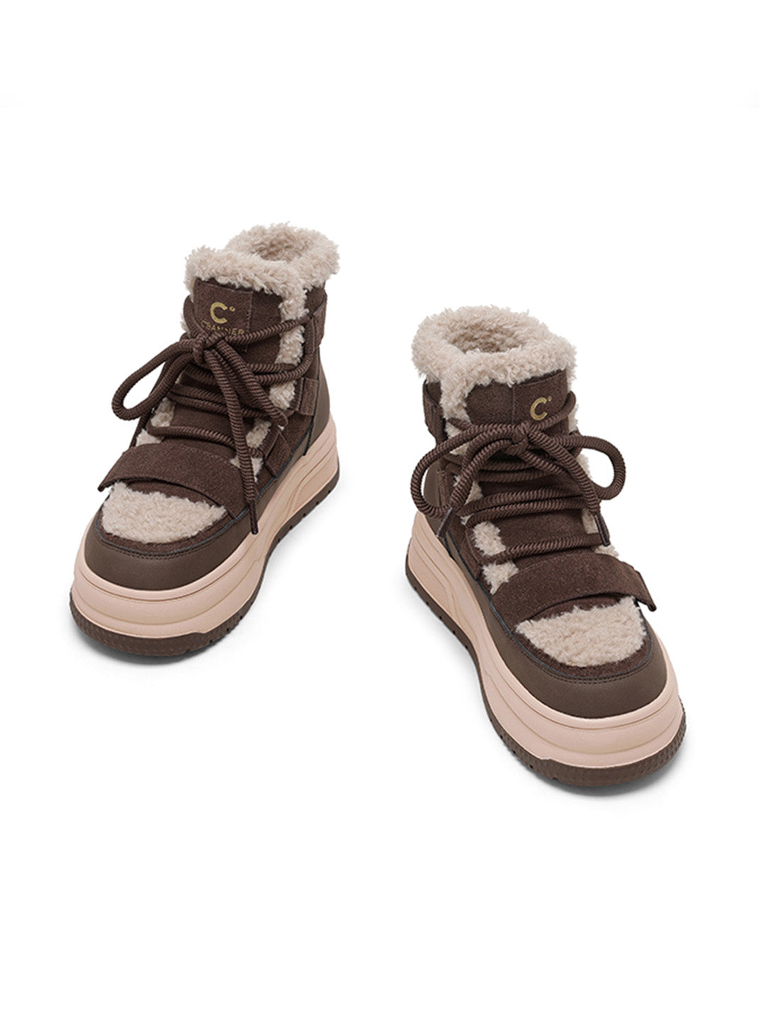 C.BANNER丨Lambswool Patchwork Platform Ankle Boots