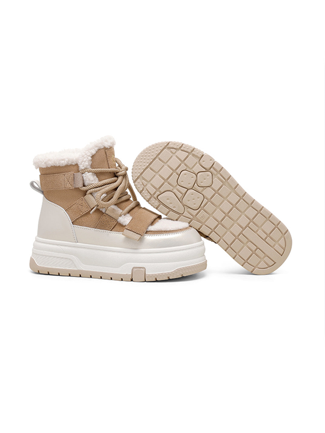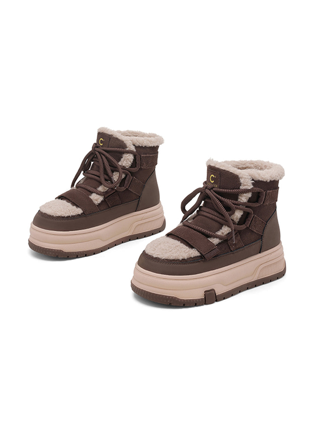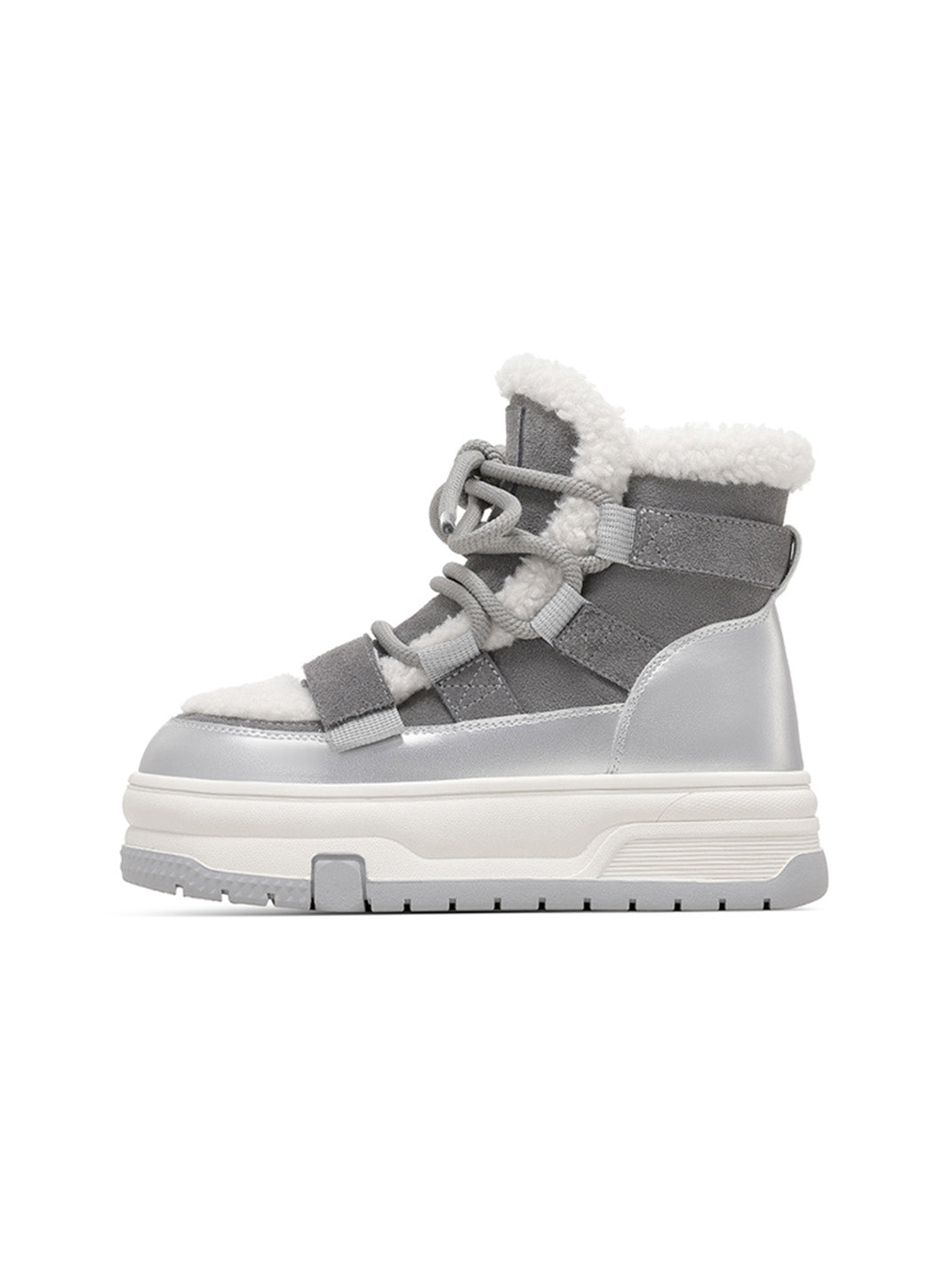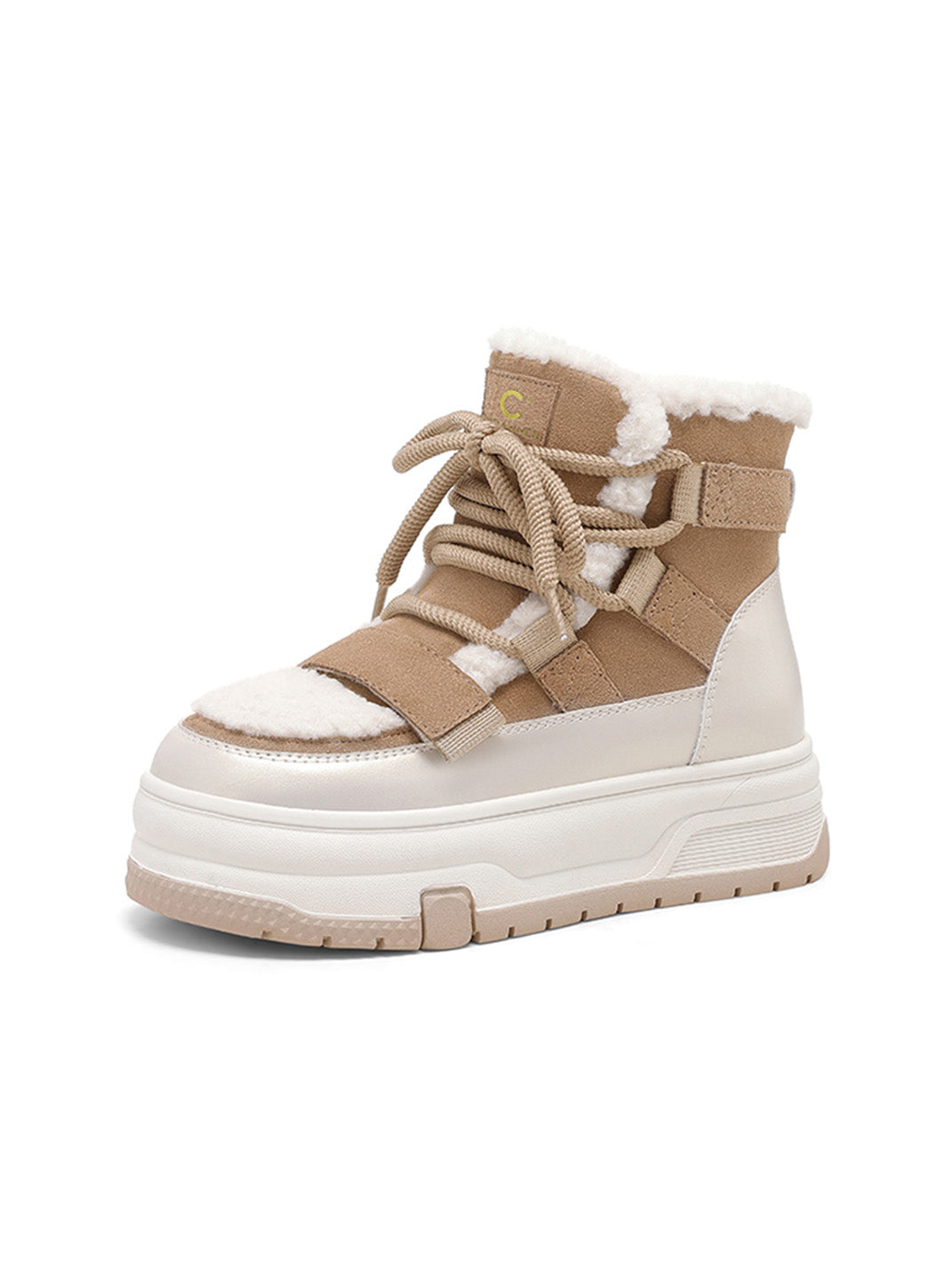 C.BANNER丨Lambswool Patchwork Platform Ankle Boots
