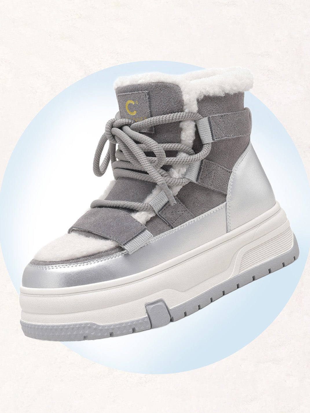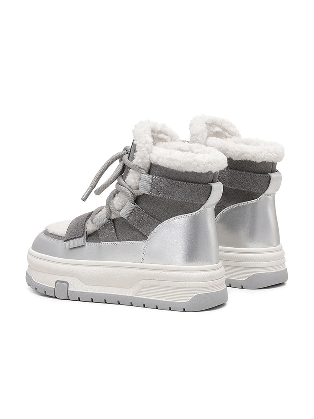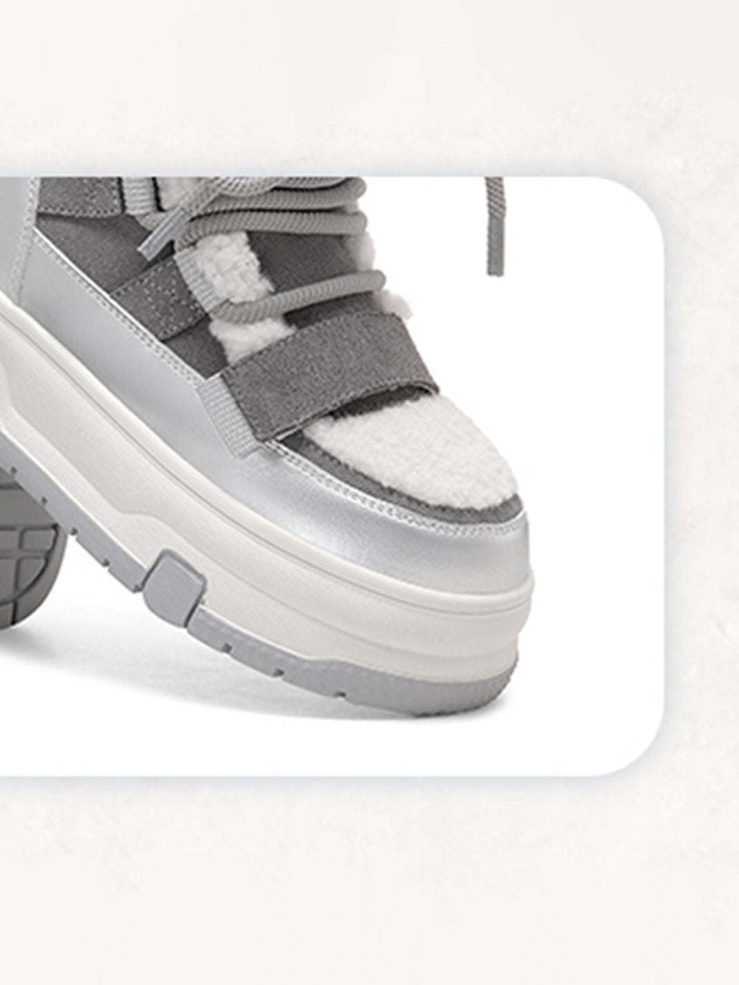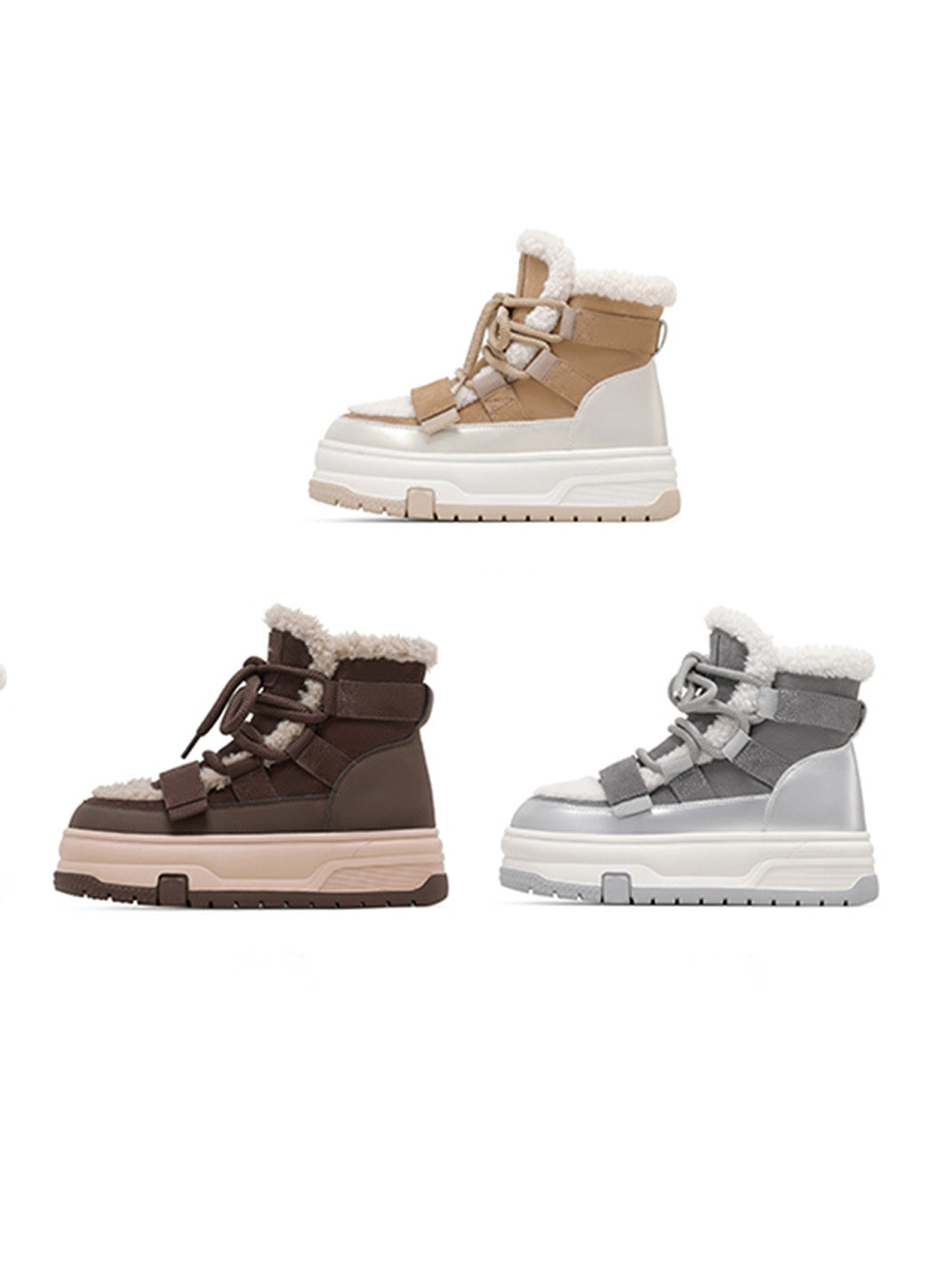C.BANNER丨Lambswool Patchwork Platform Ankle Boots
