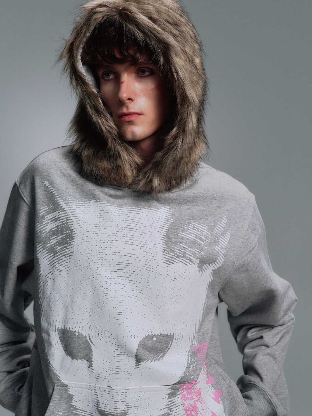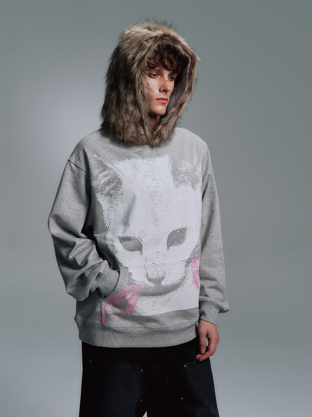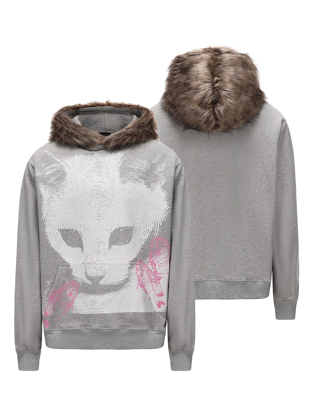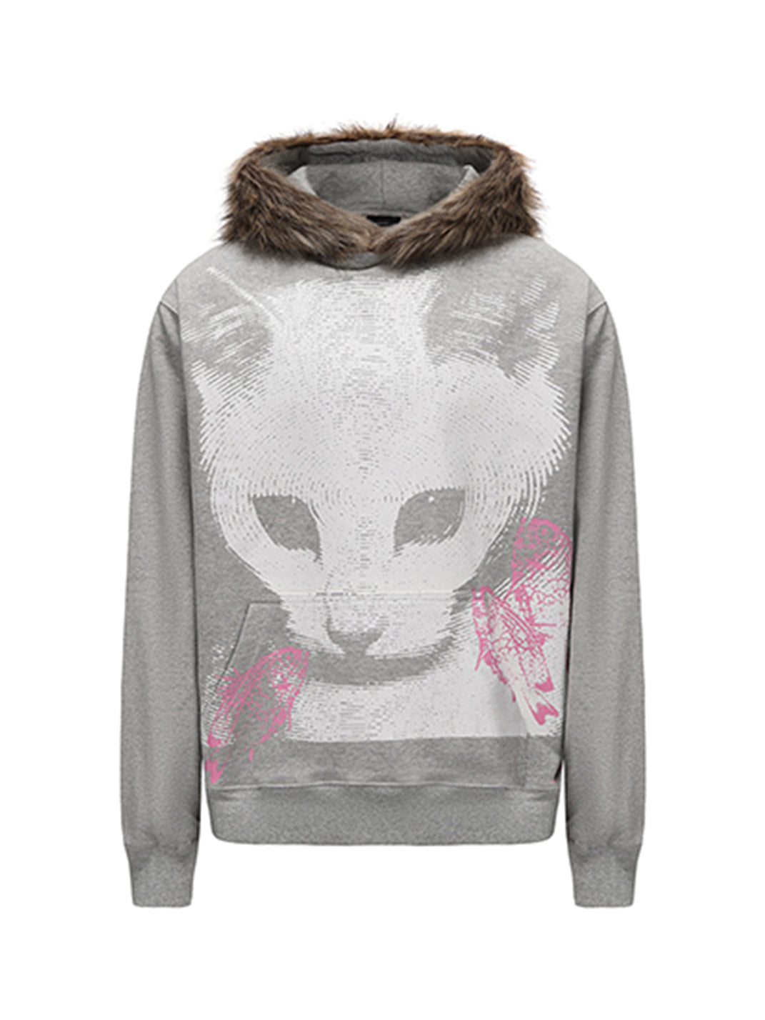 PAIKI | Cat Print Faux Fur Hooded Sweatshirt