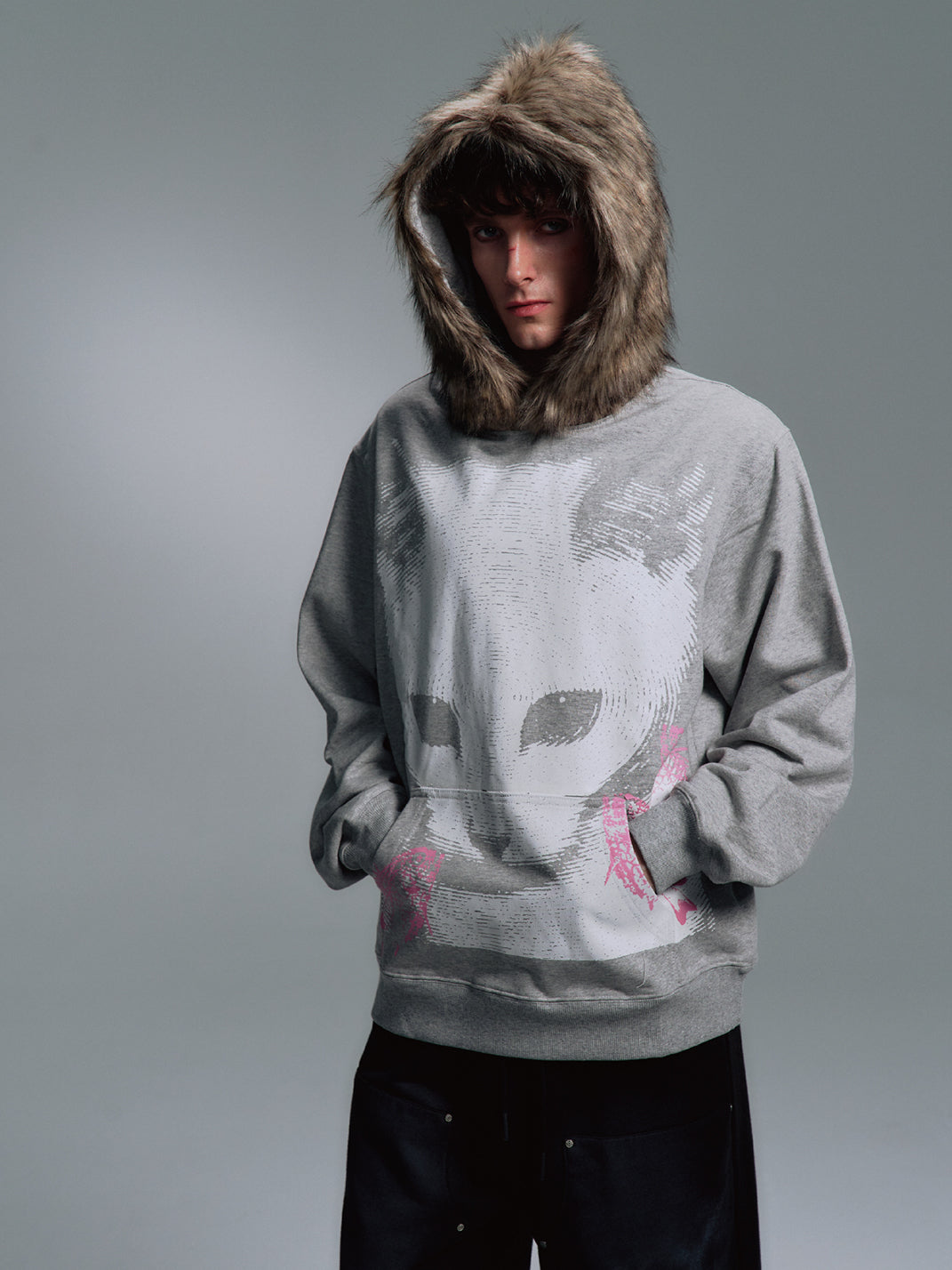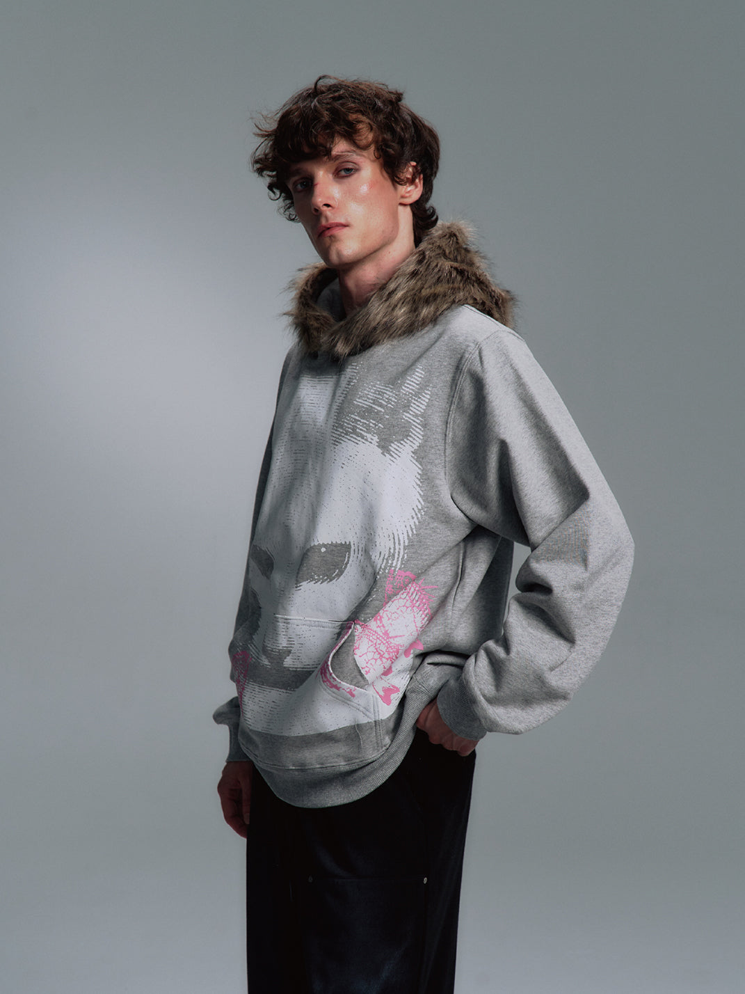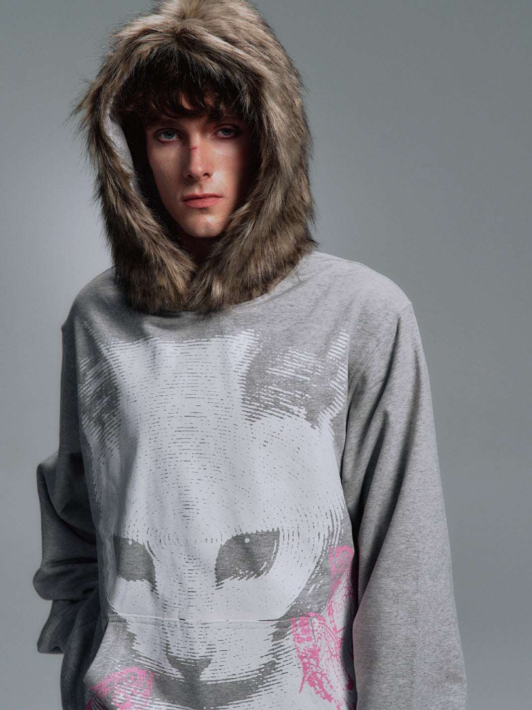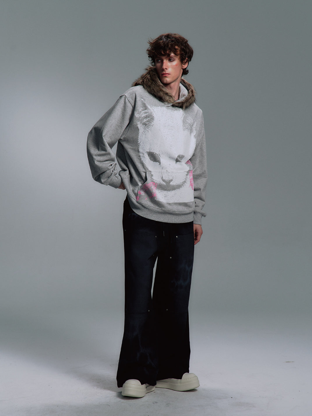 PAIKI | Cat Print Faux Fur Hooded Sweatshirt