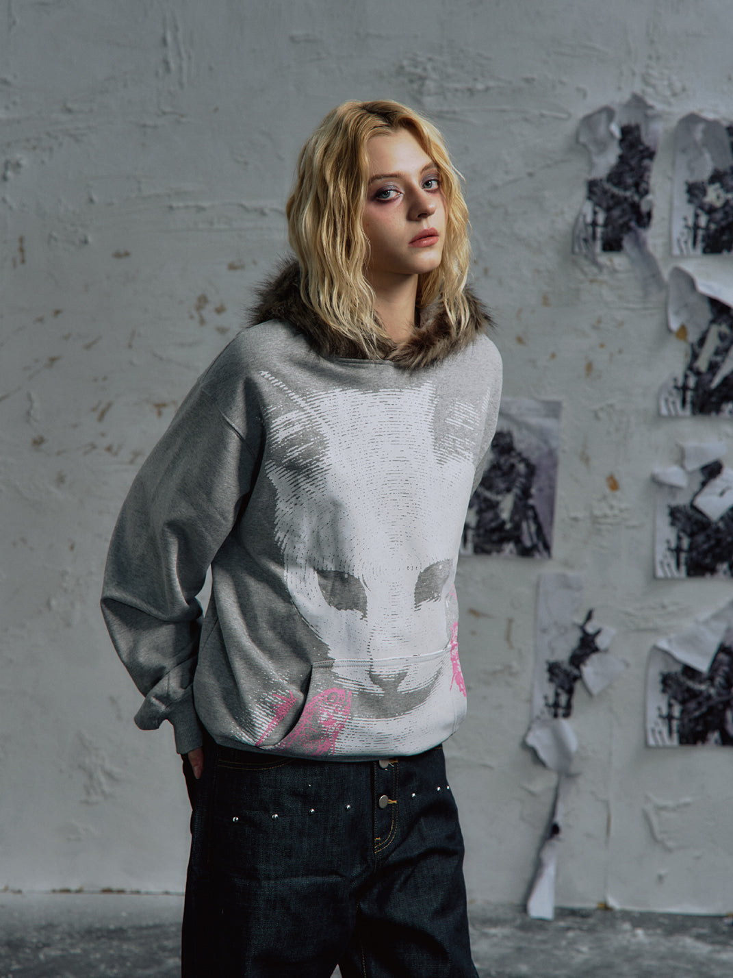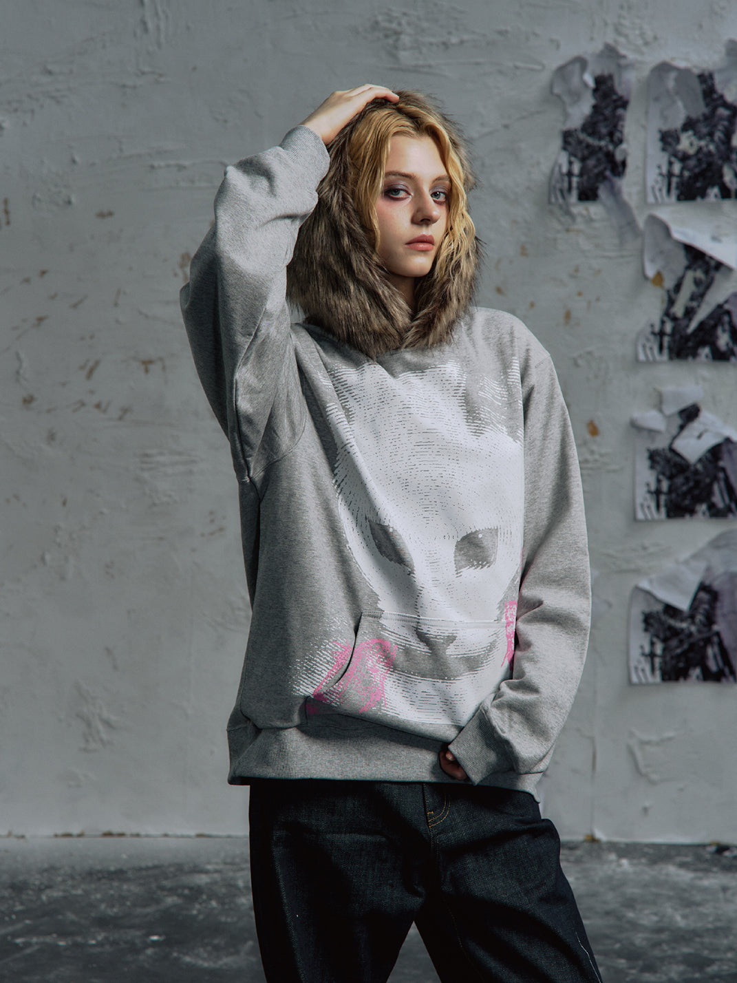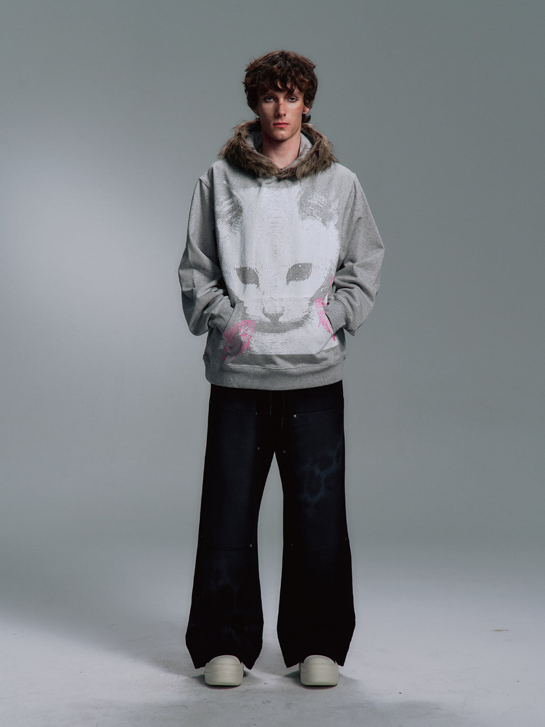 PAIKI | Cat Print Faux Fur Hooded Sweatshirt saltar al contenido