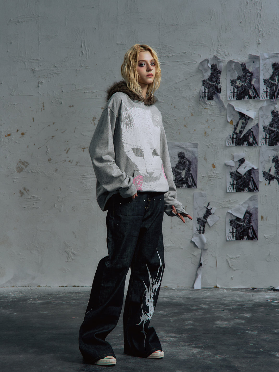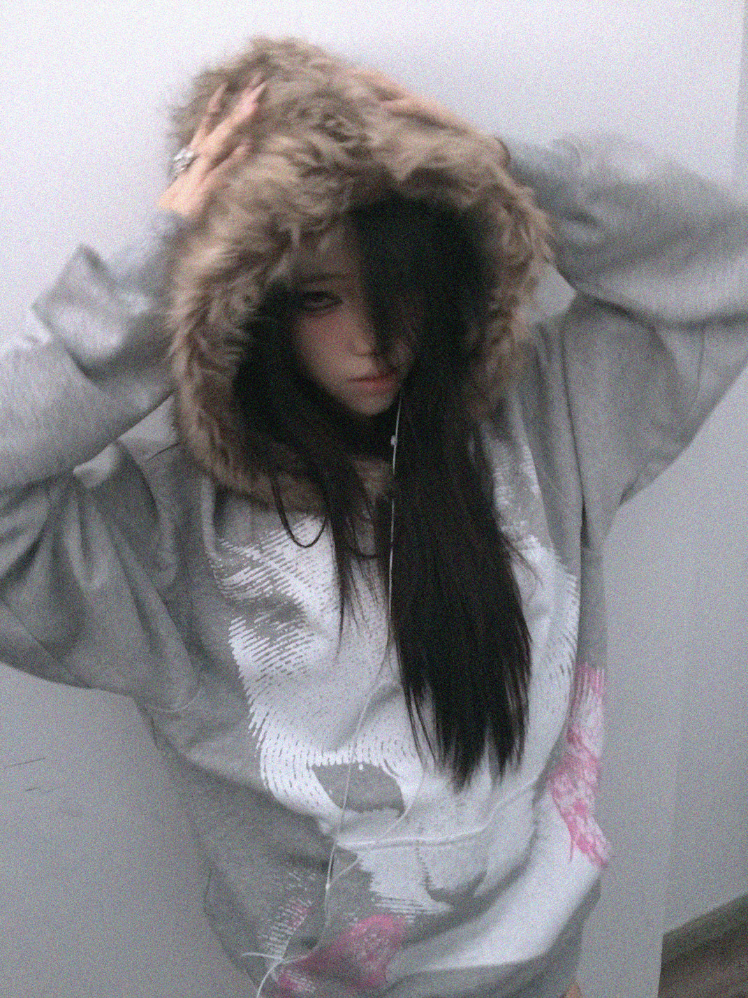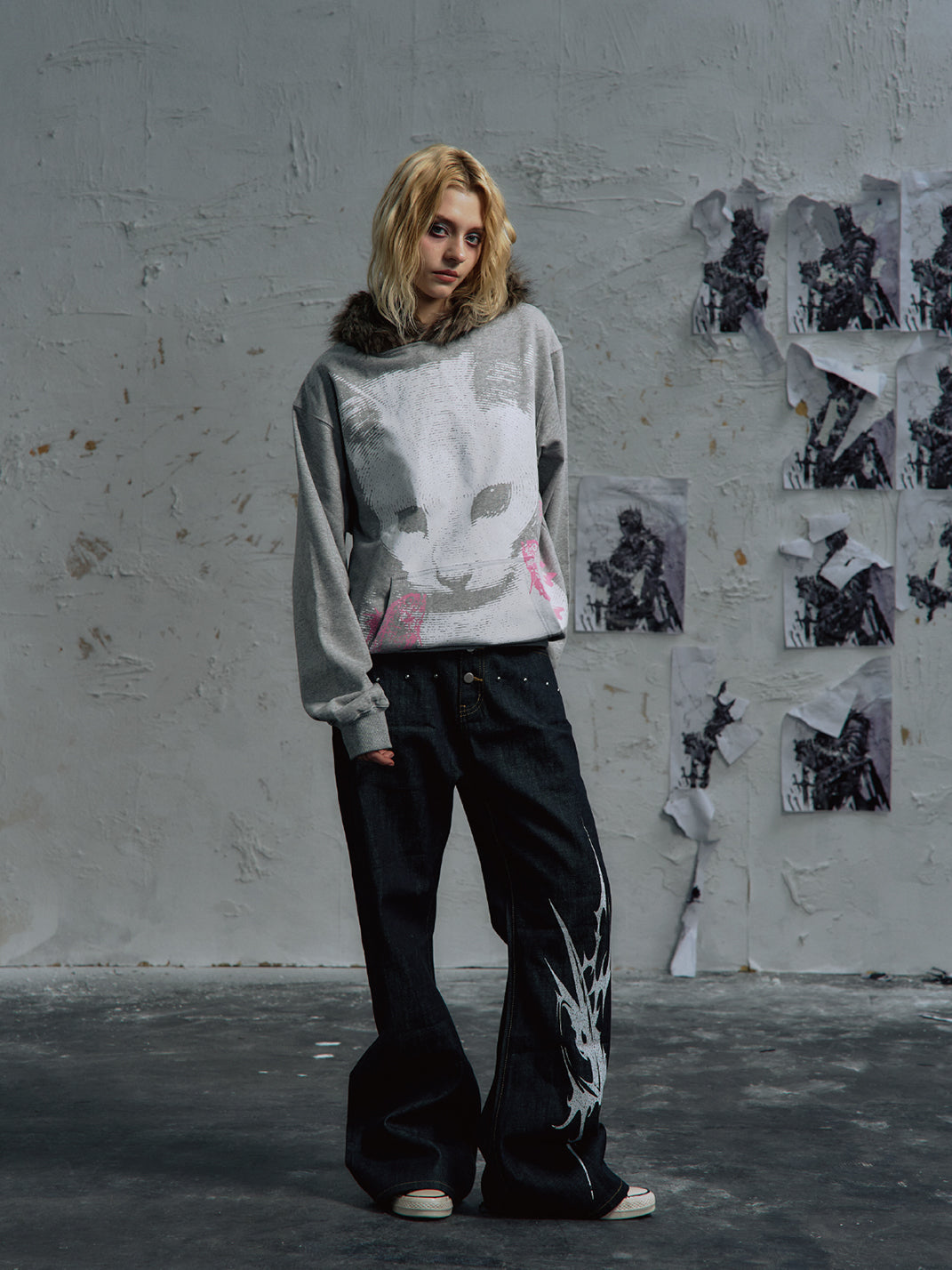 PAIKI | Cat Print Faux Fur Hooded Sweatshirt saltar al contenido