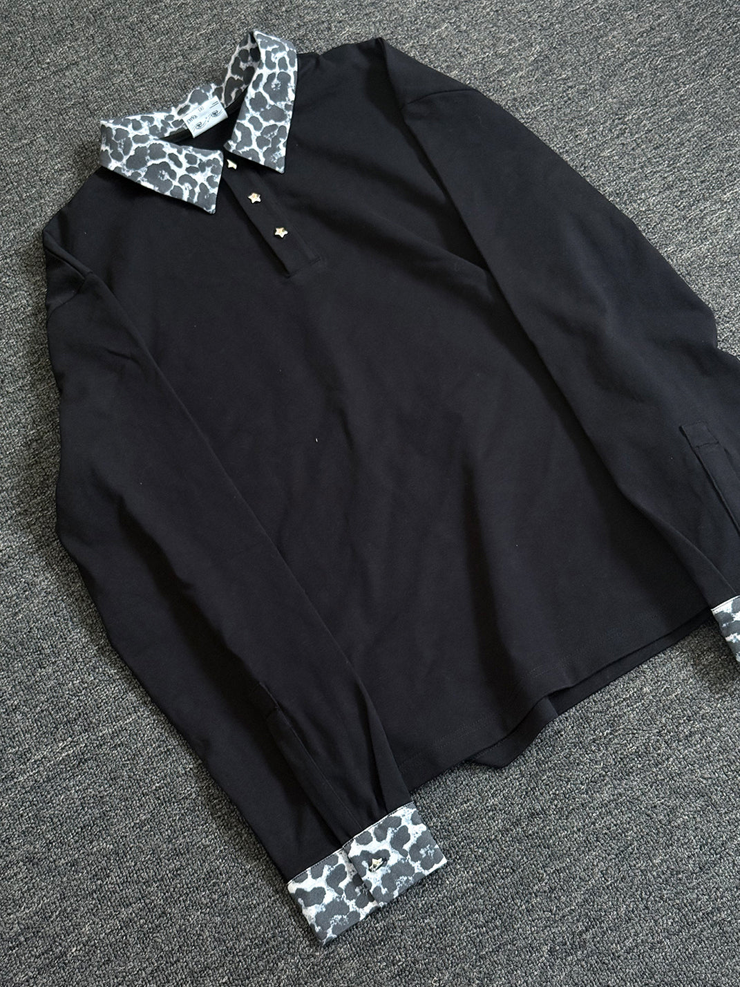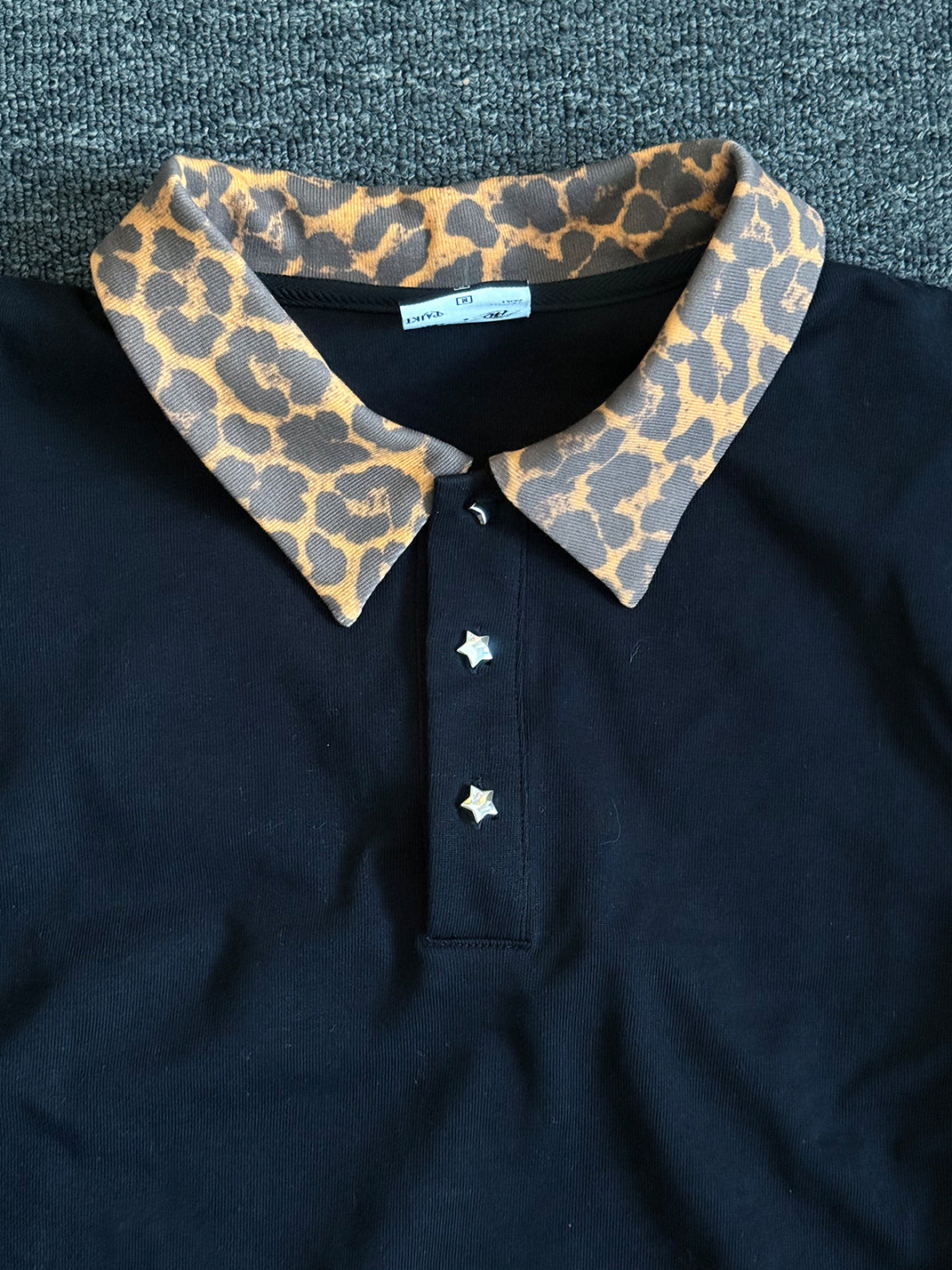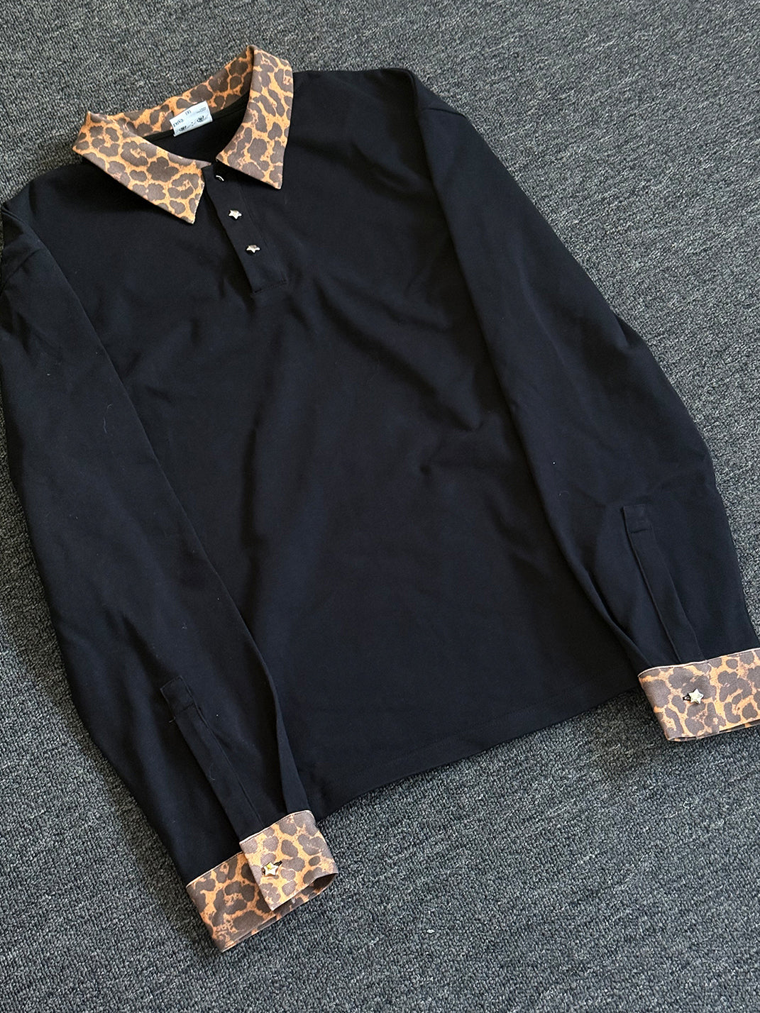 PAIKI | Leopard Print Panel Polo Shirt saltar al contenido