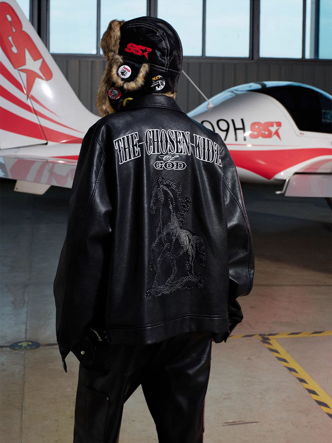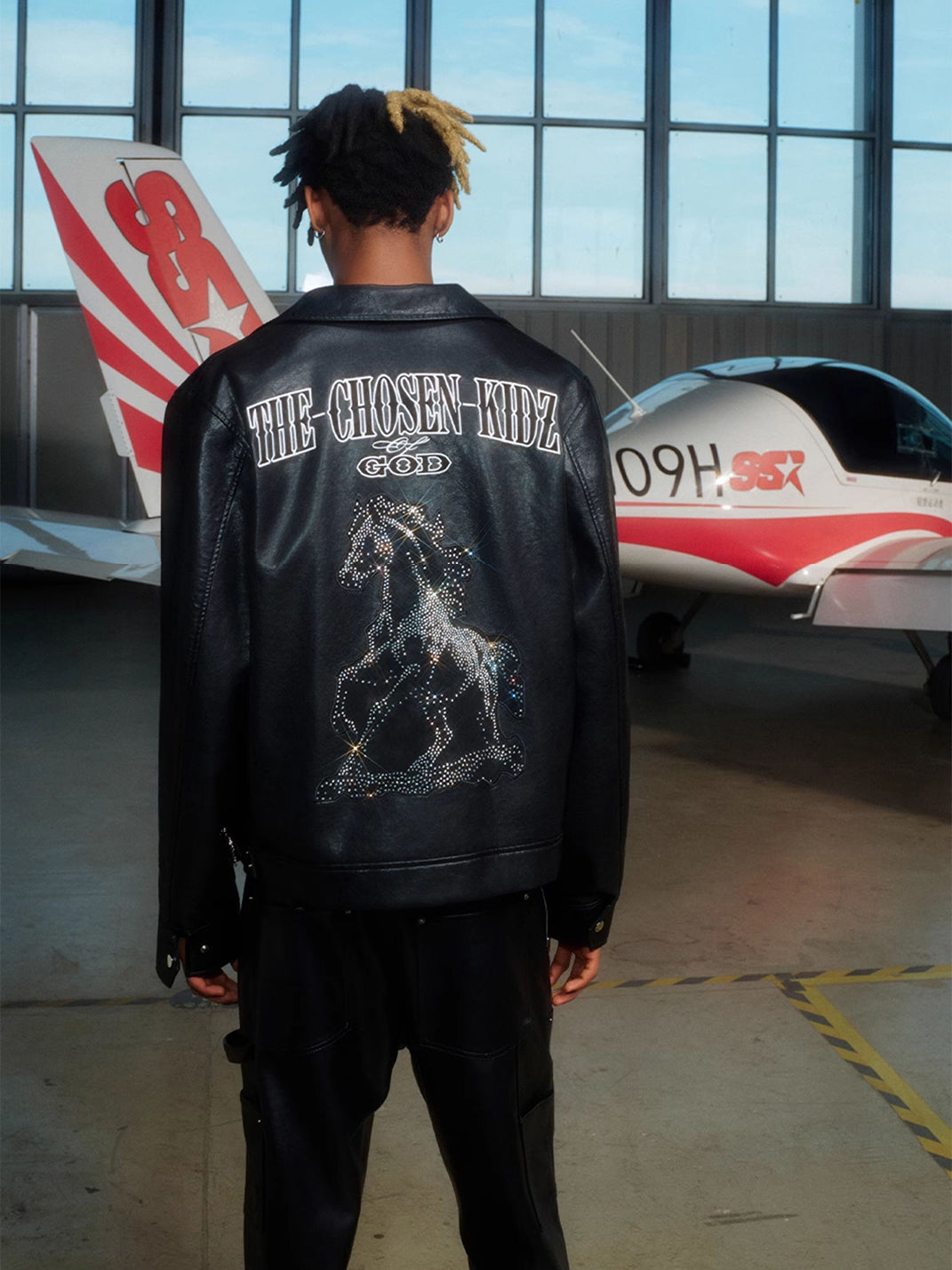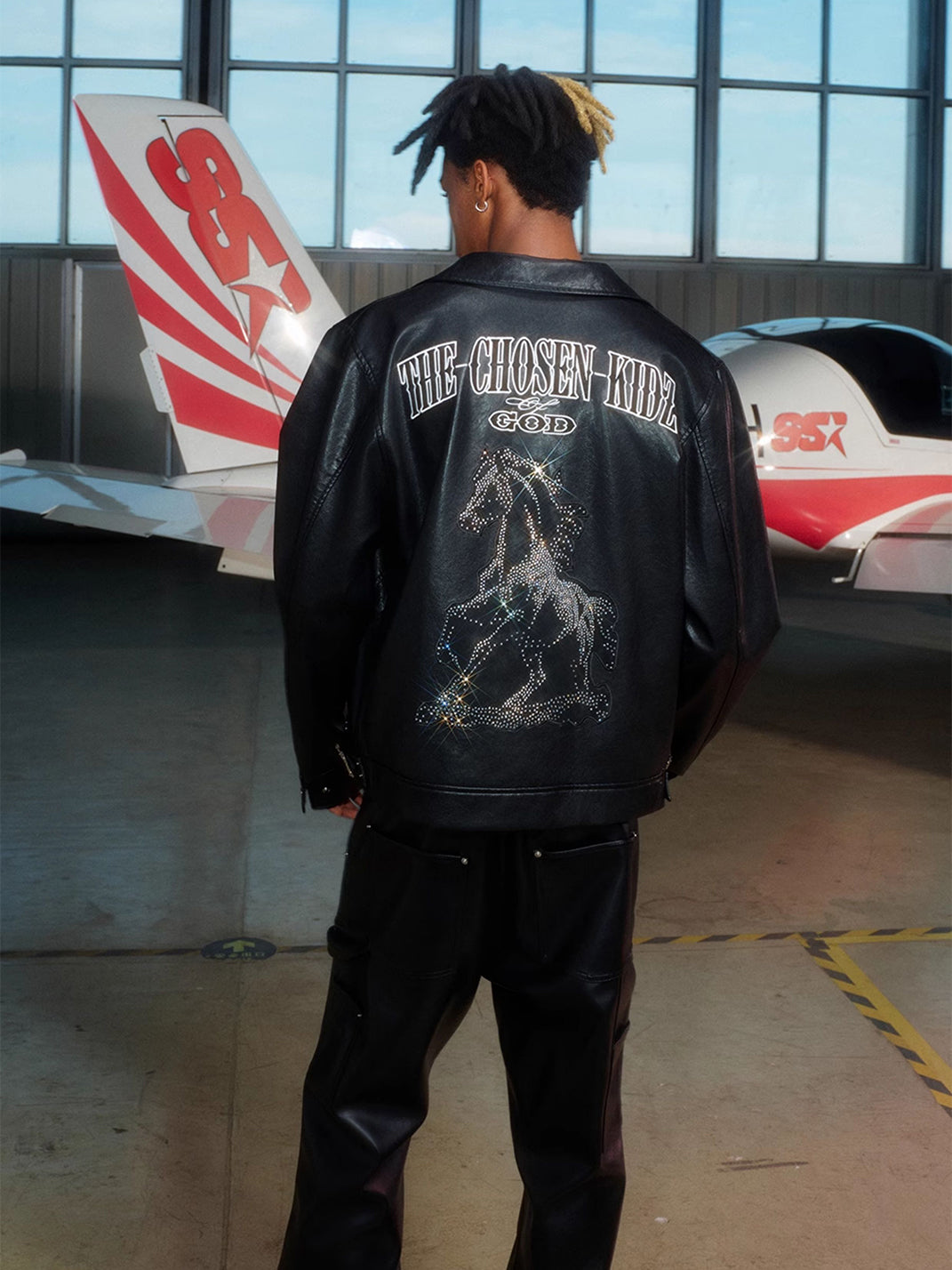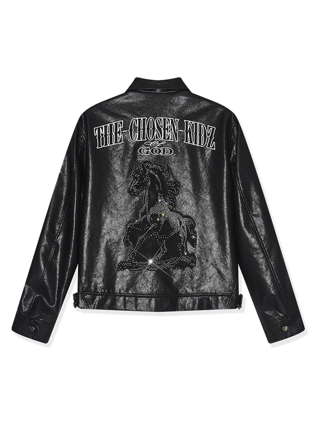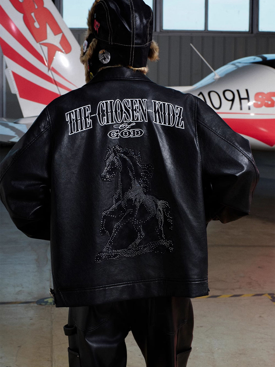 SSR | Retro Rhinestone PU Leather Motorcycle Jacket