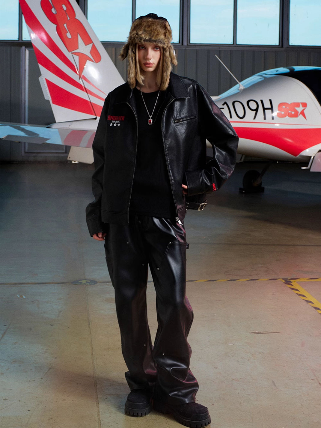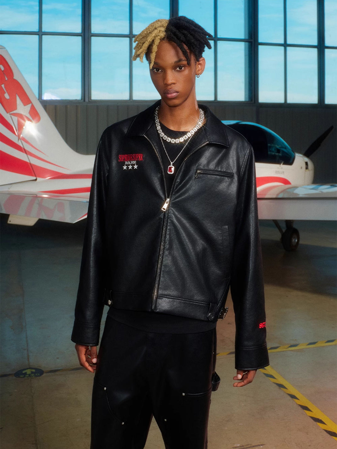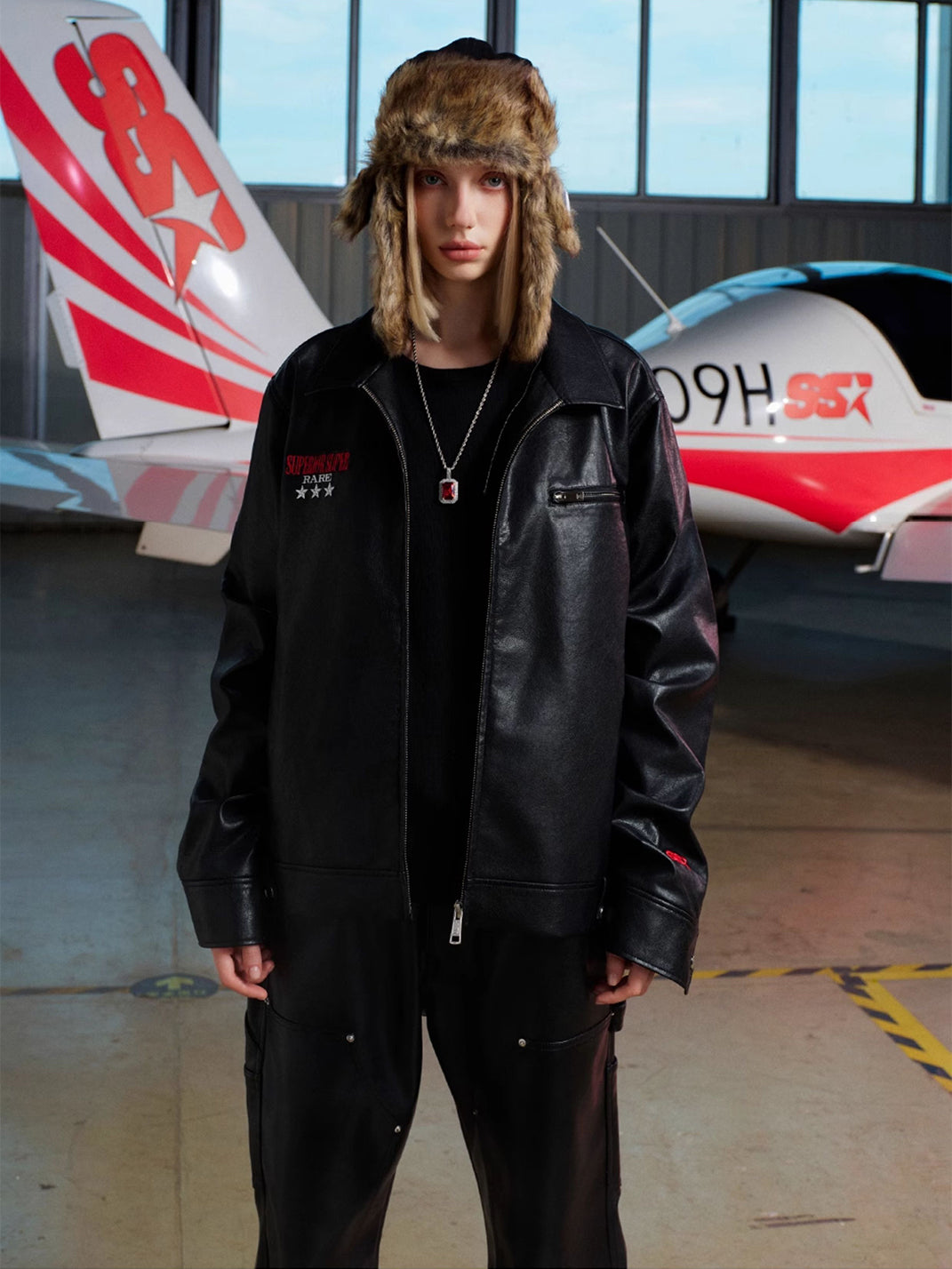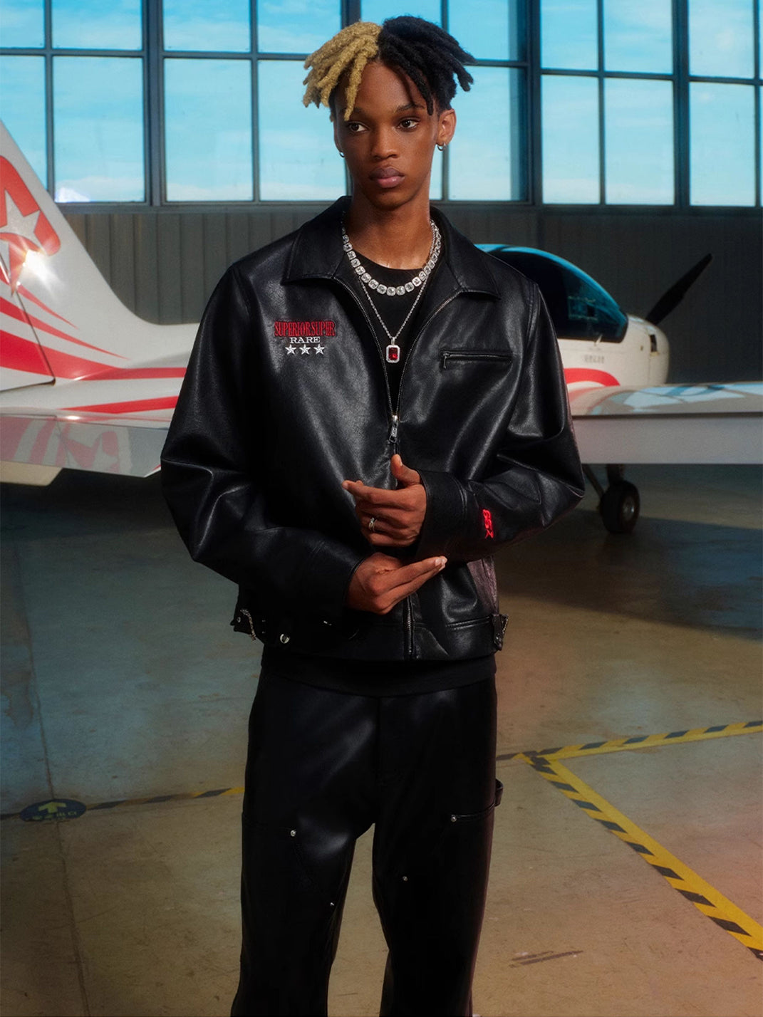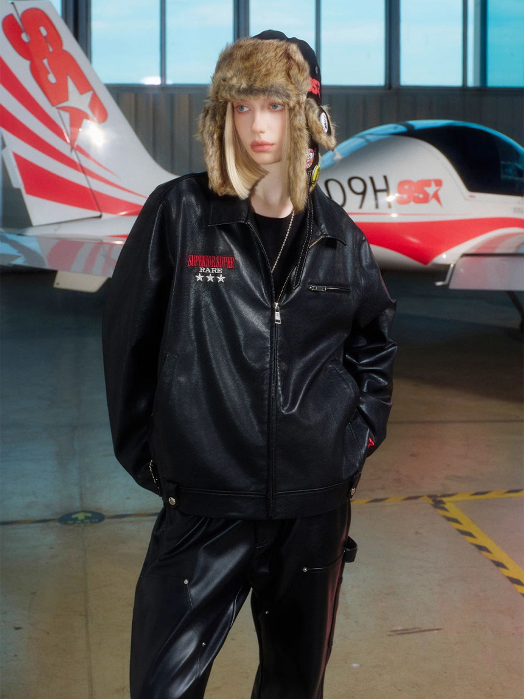 SSR | Retro Rhinestone PU Leather Motorcycle Jacket