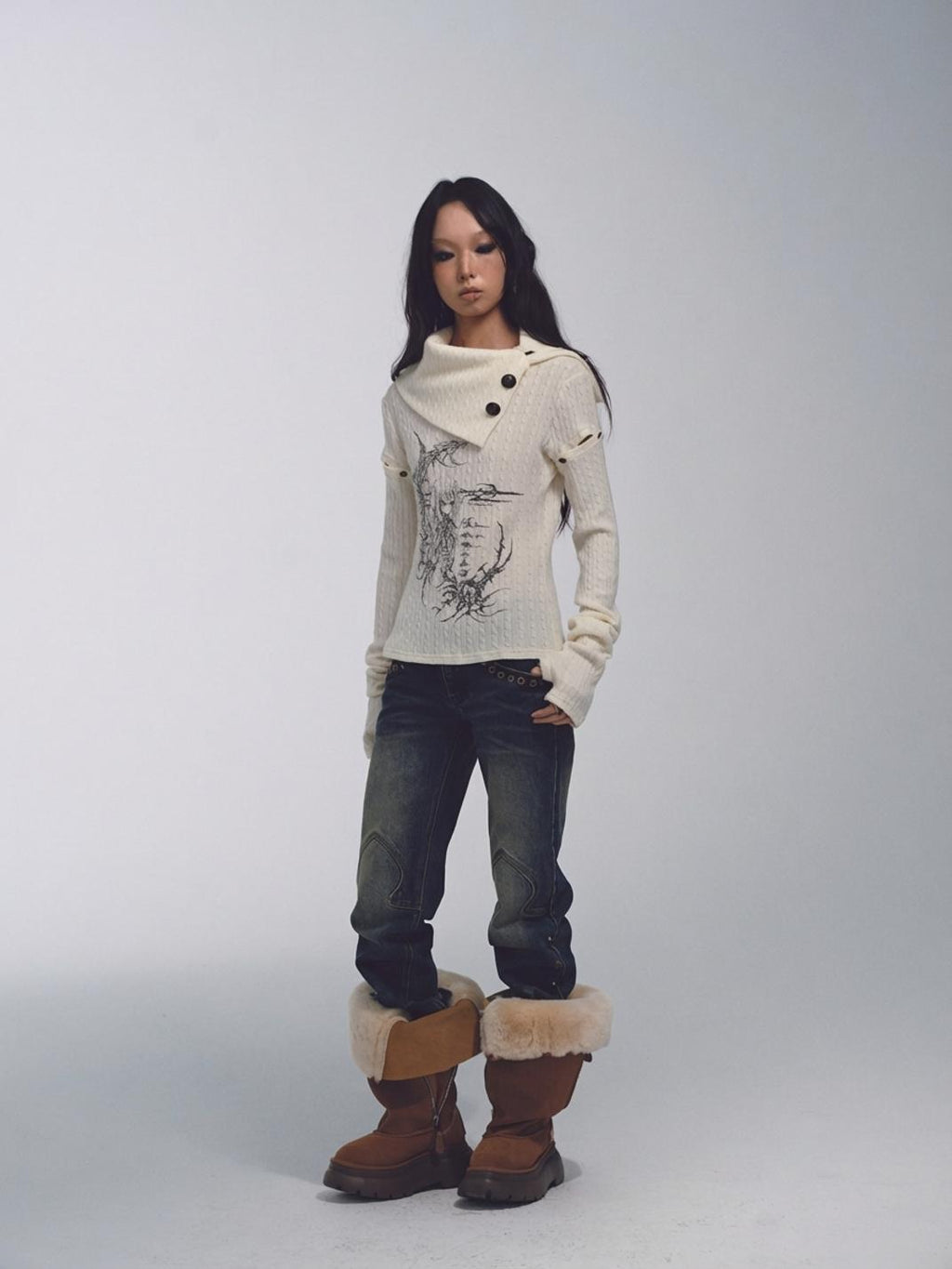 NONAME SPACE | Detachable Sleeve Collar Knit Top