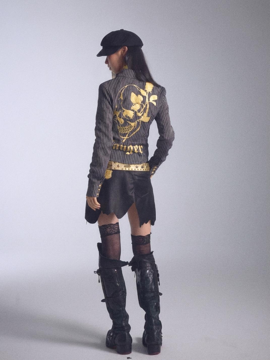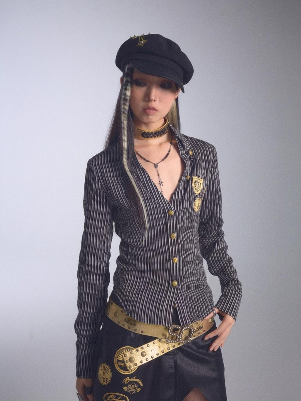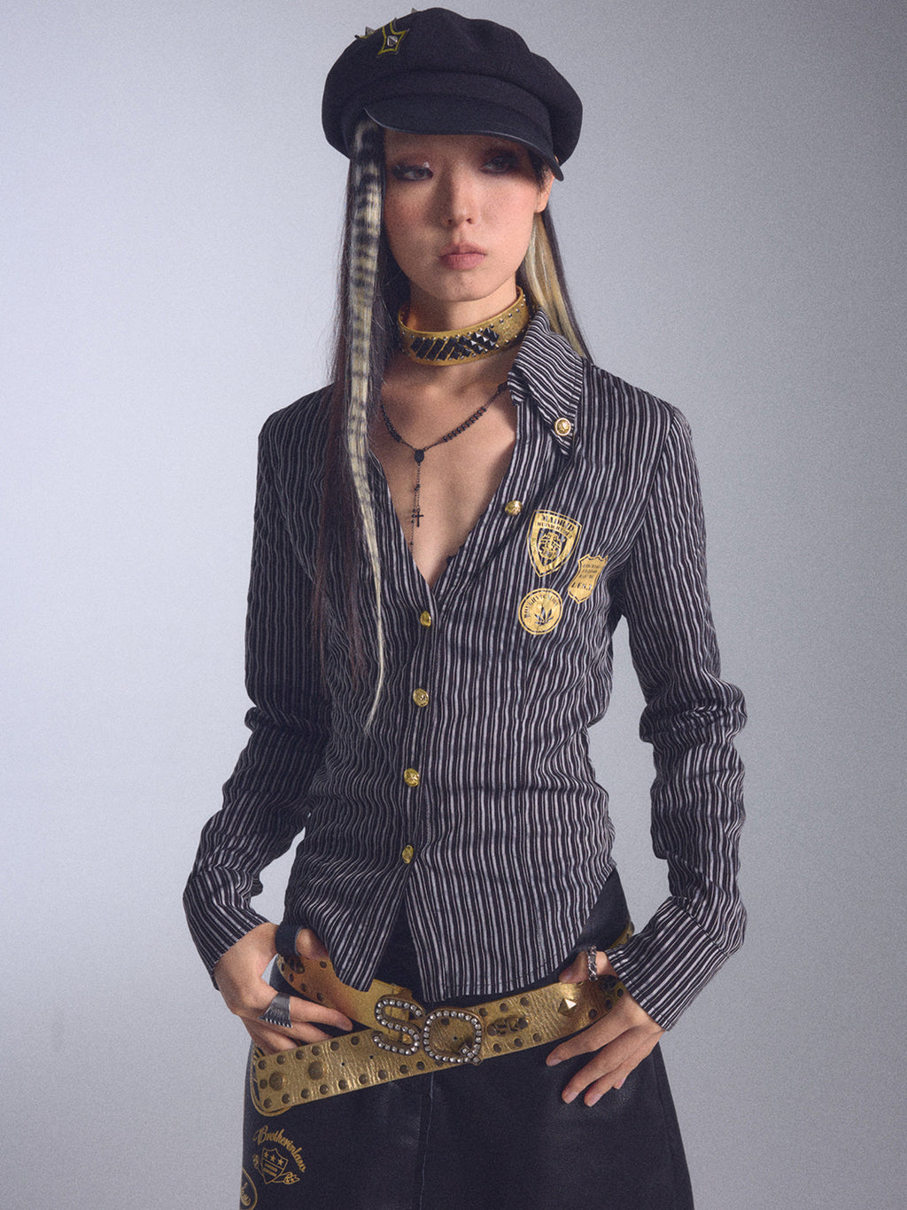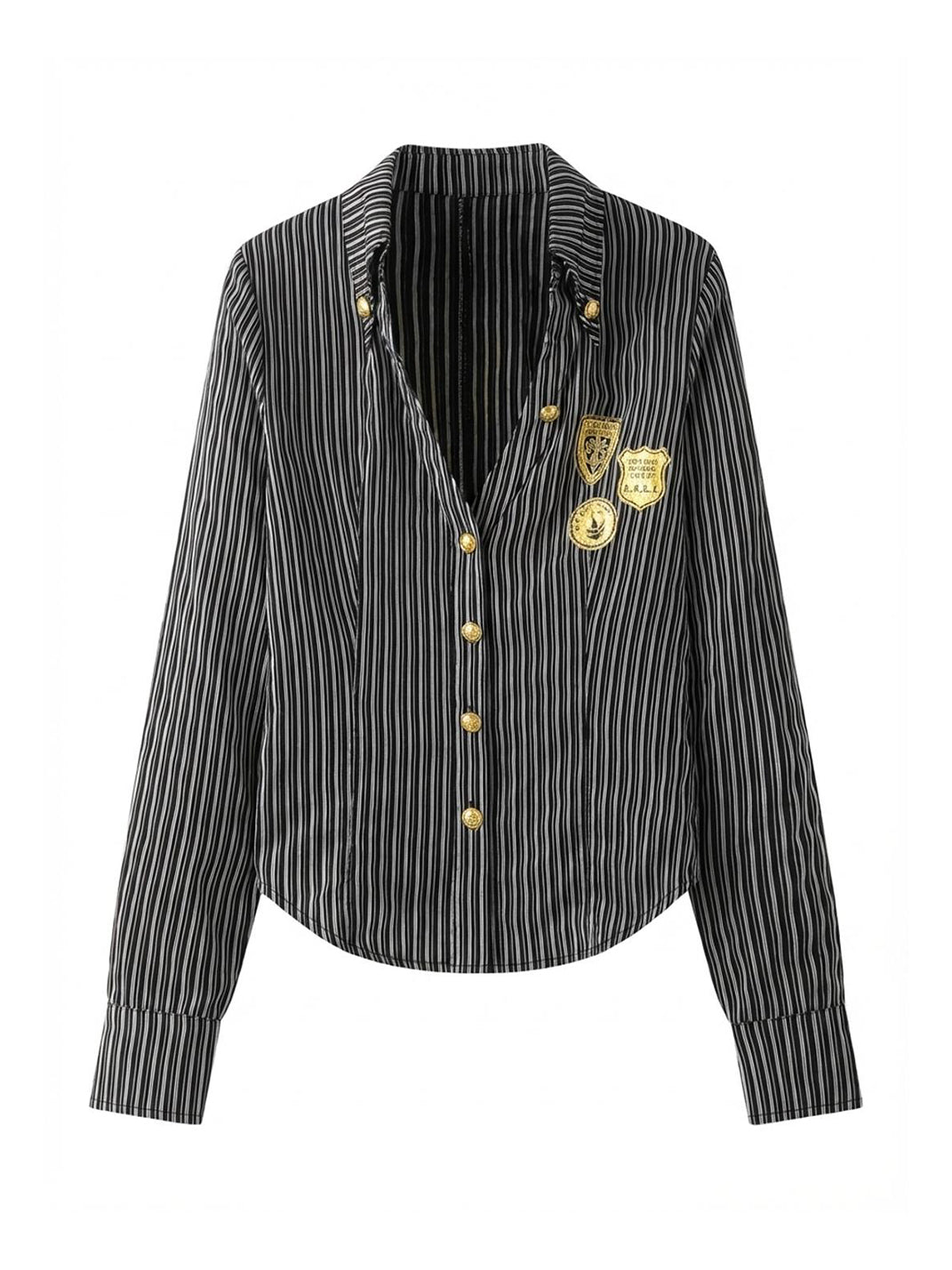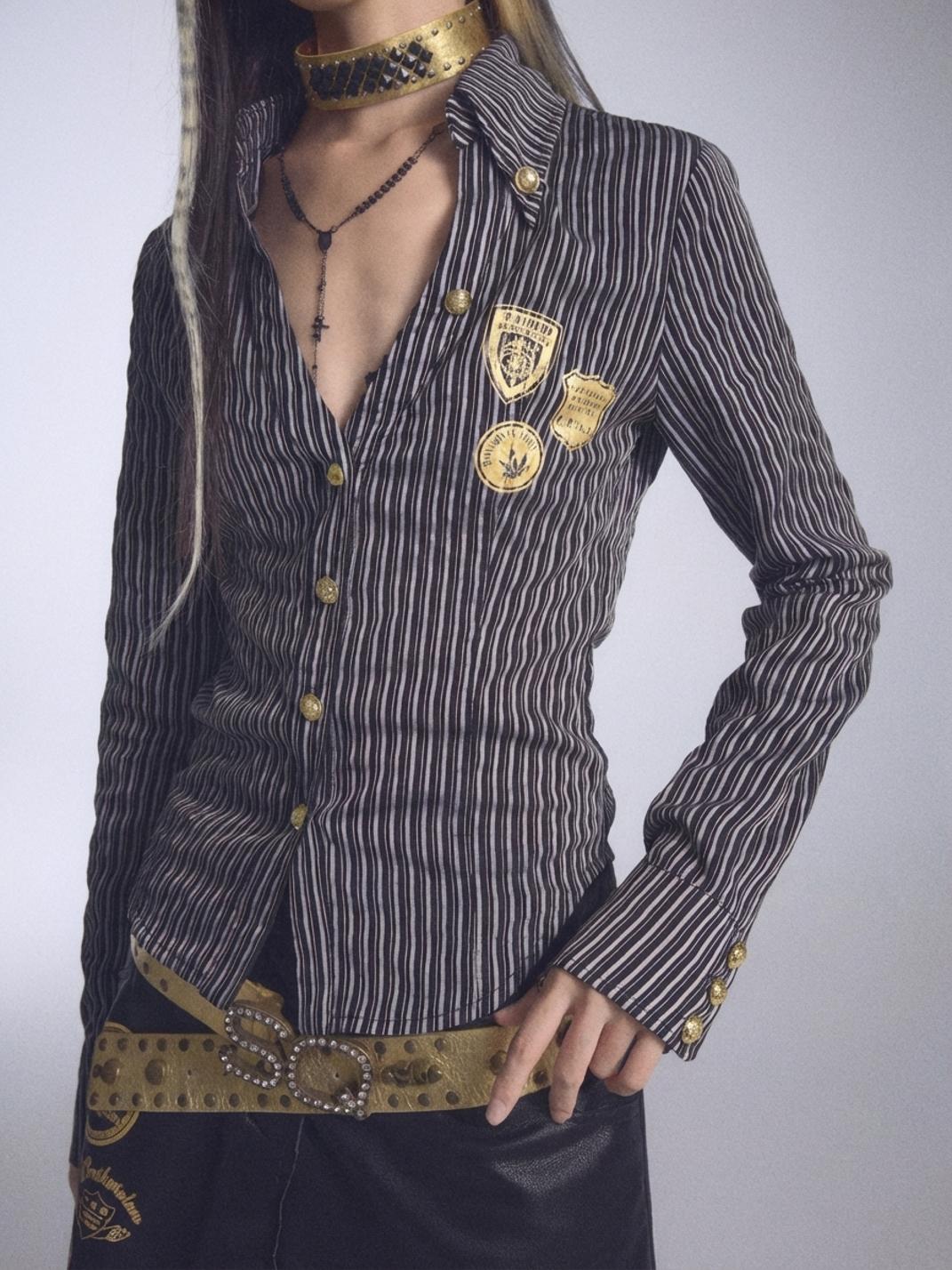 NONAME SPACE | Low-Cut Striped Printed Collared Long-Sleeved Shirt saltar al contenido