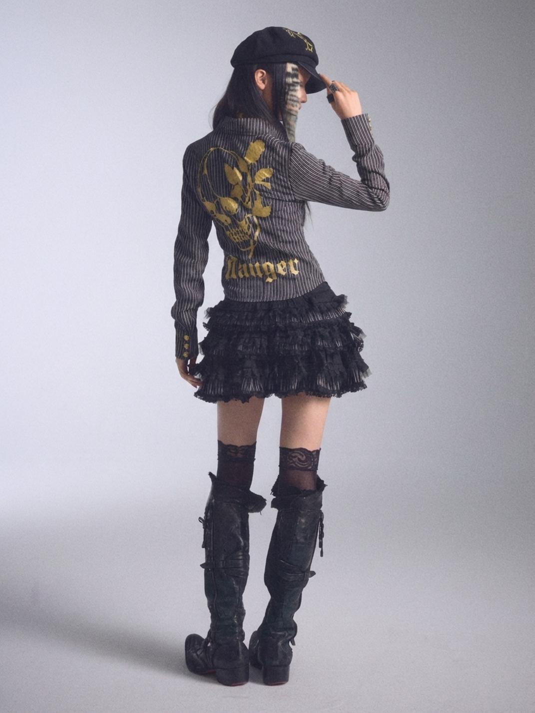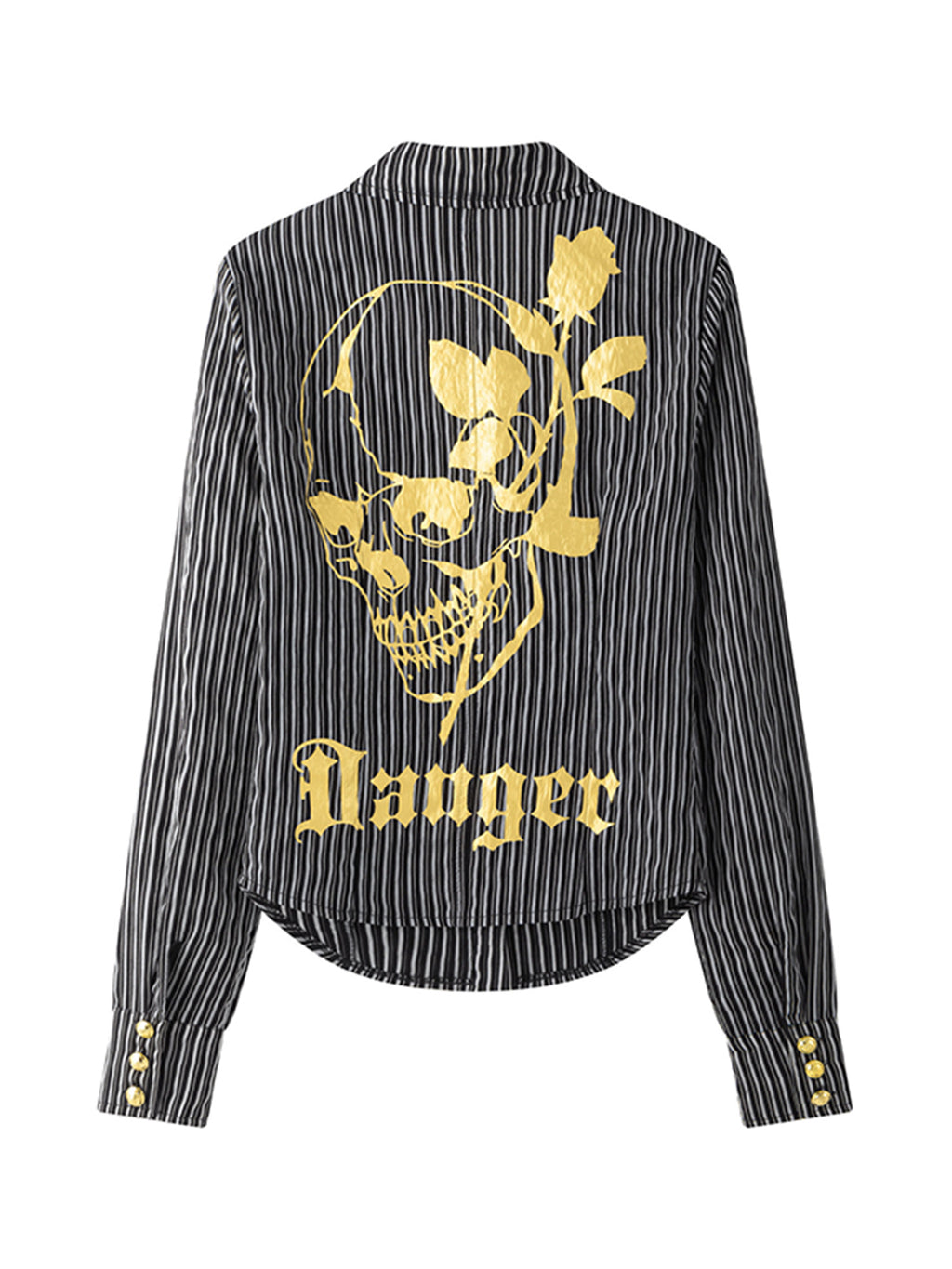 NONAME SPACE | Low-Cut Striped Printed Collared Long-Sleeved Shirt