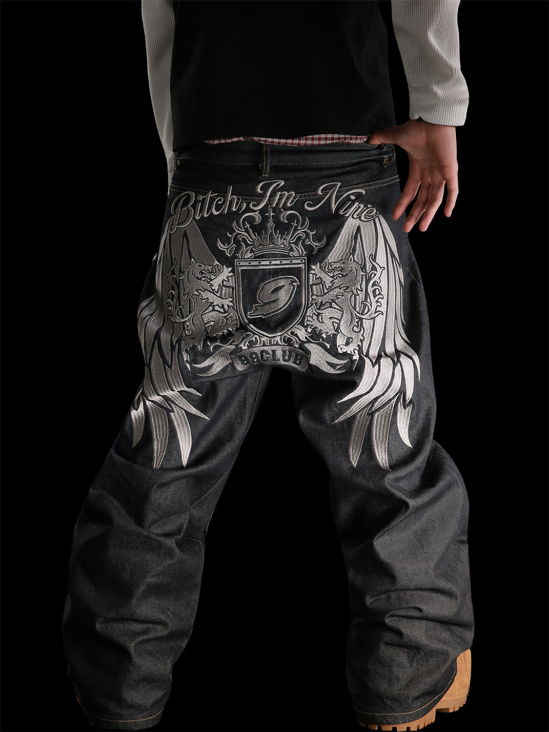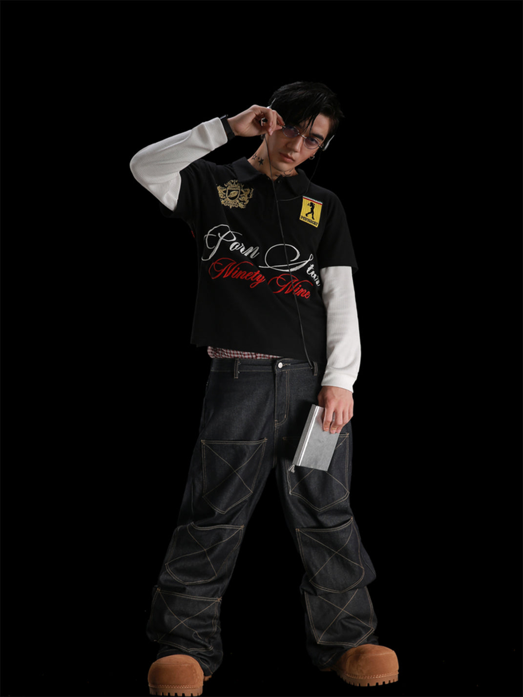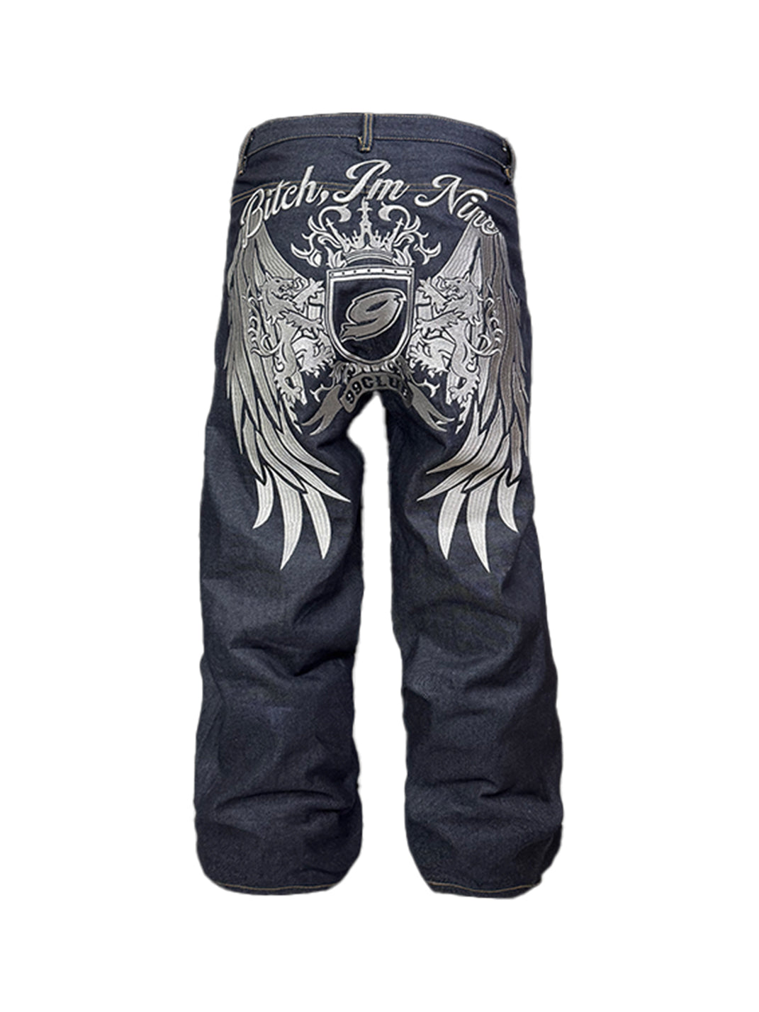 99CLUB | Embroidered Badge Straight-Leg Raw Denim Jeans saltar al contenido