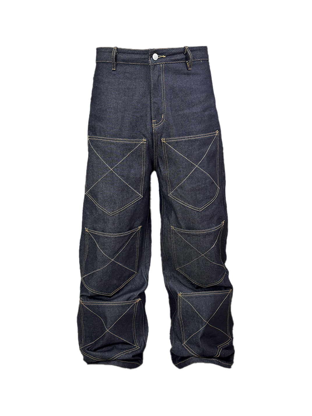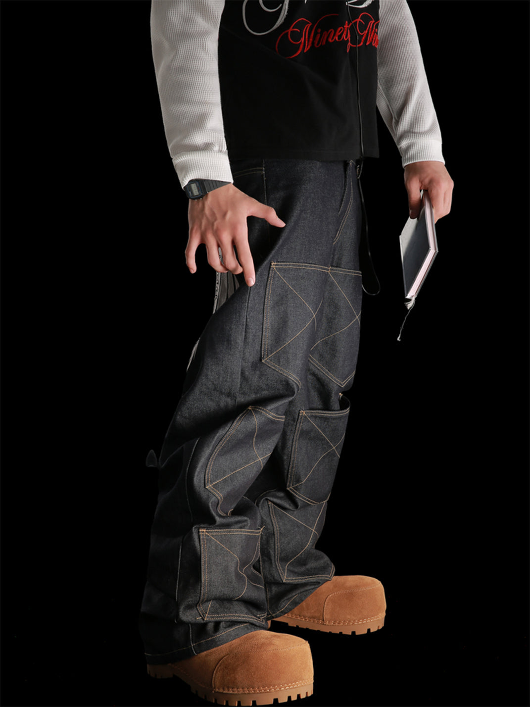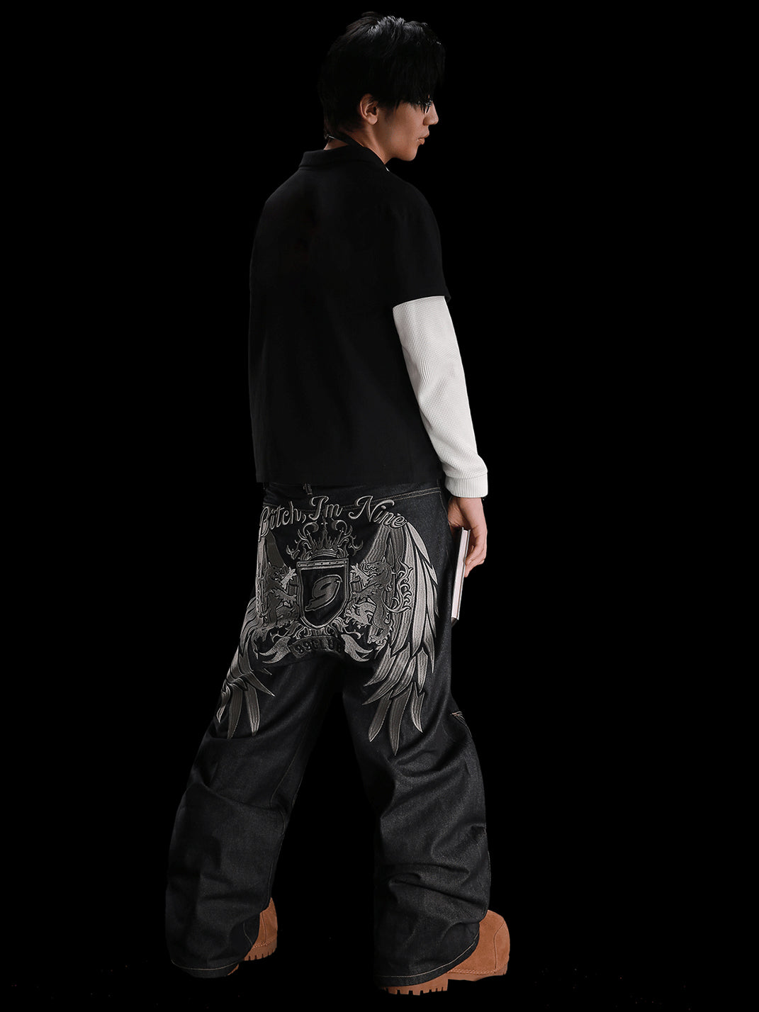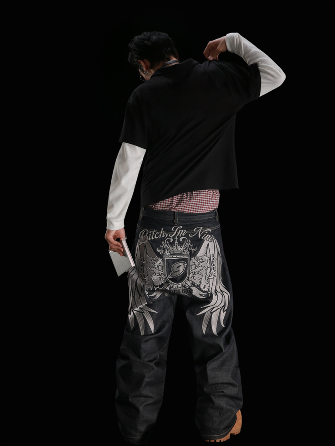 99CLUB | Embroidered Badge Straight-Leg Raw Denim Jeans saltar al contenido