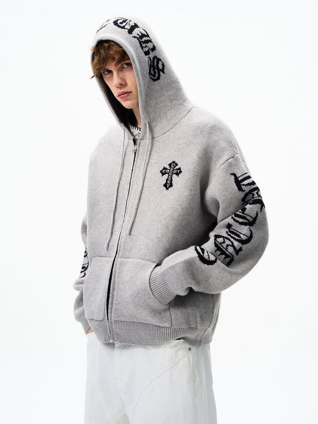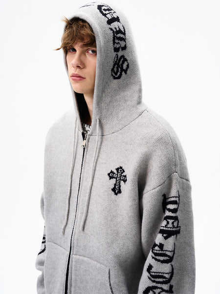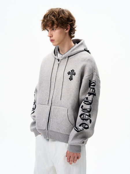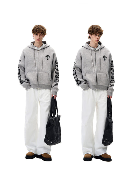 FLYOFF | Cross Embroidery Zip-Up Hoodie Sweater
