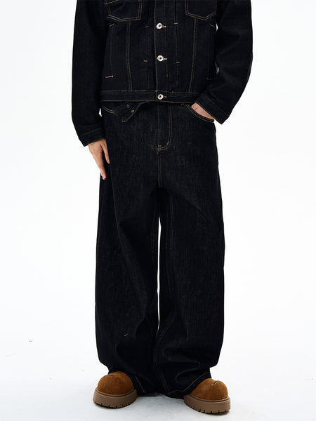 FLYOFF | Button Detail Wide-Legged Baggy Denim ...