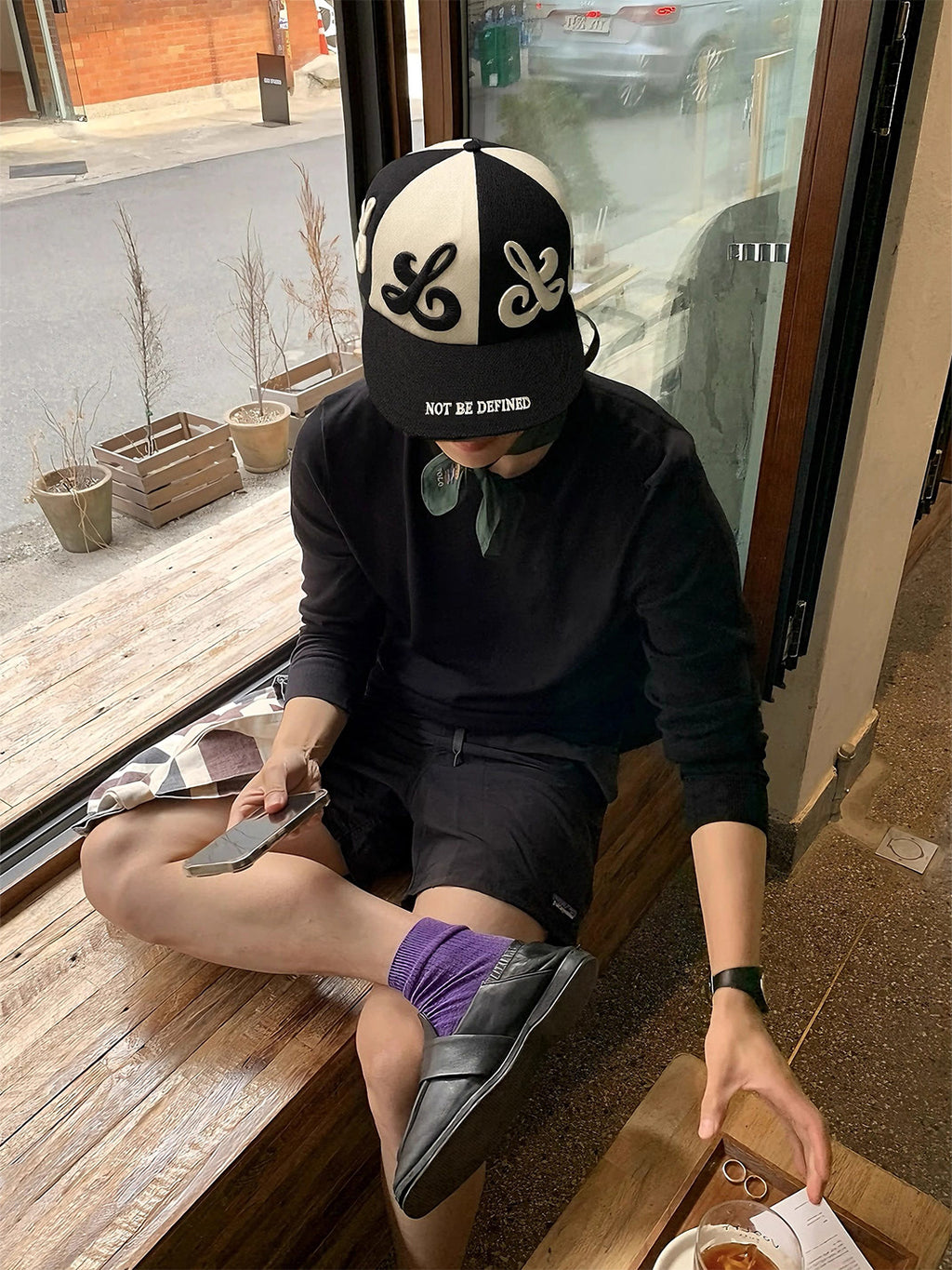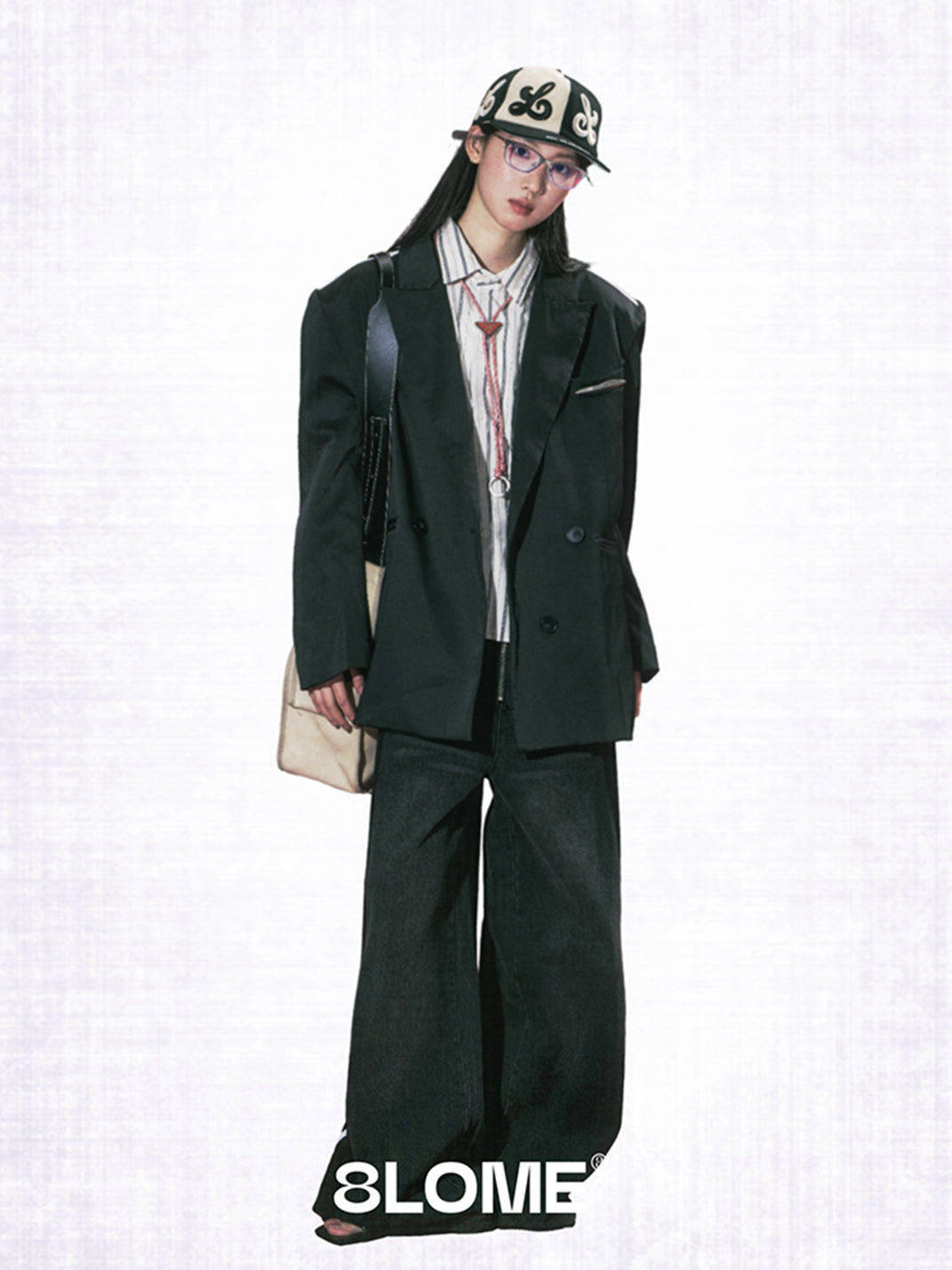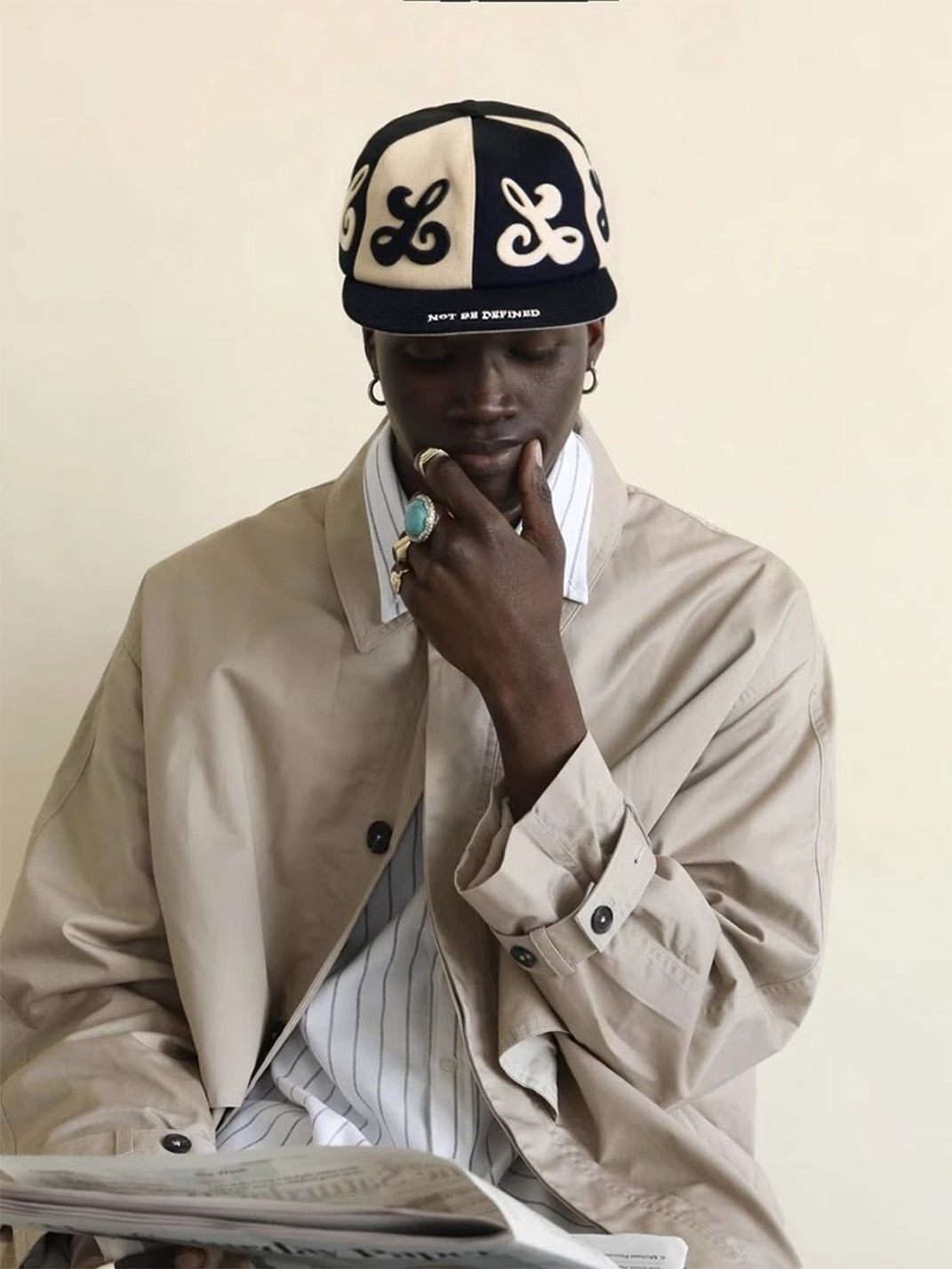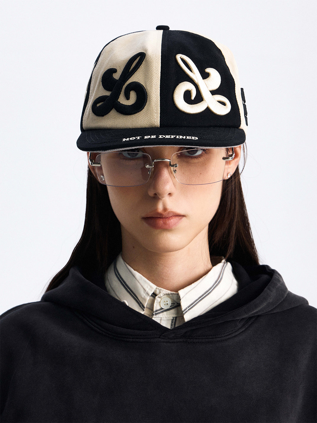8LOME | Patchwork Tai Chi Flat-Brimmed Baseball Cap-Black