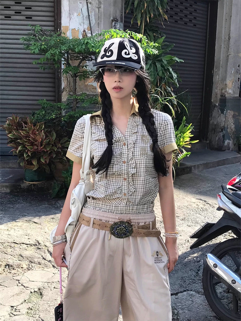 8LOME | Patchwork Tai Chi Flat-Brimmed Baseball Cap-Black saltar al contenido