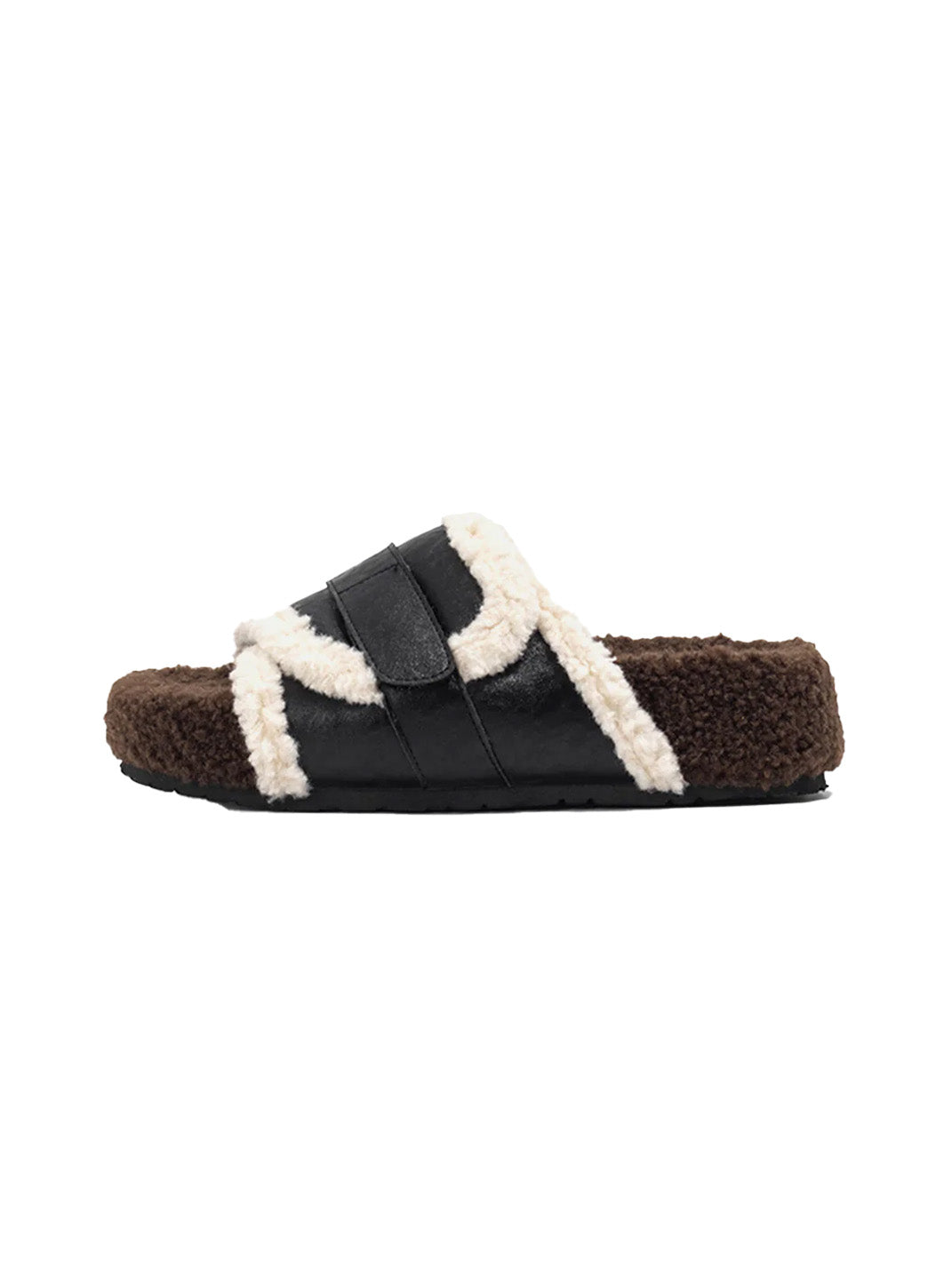 OLDMEOW | Retro Brown Fuzzy Slide Slippers