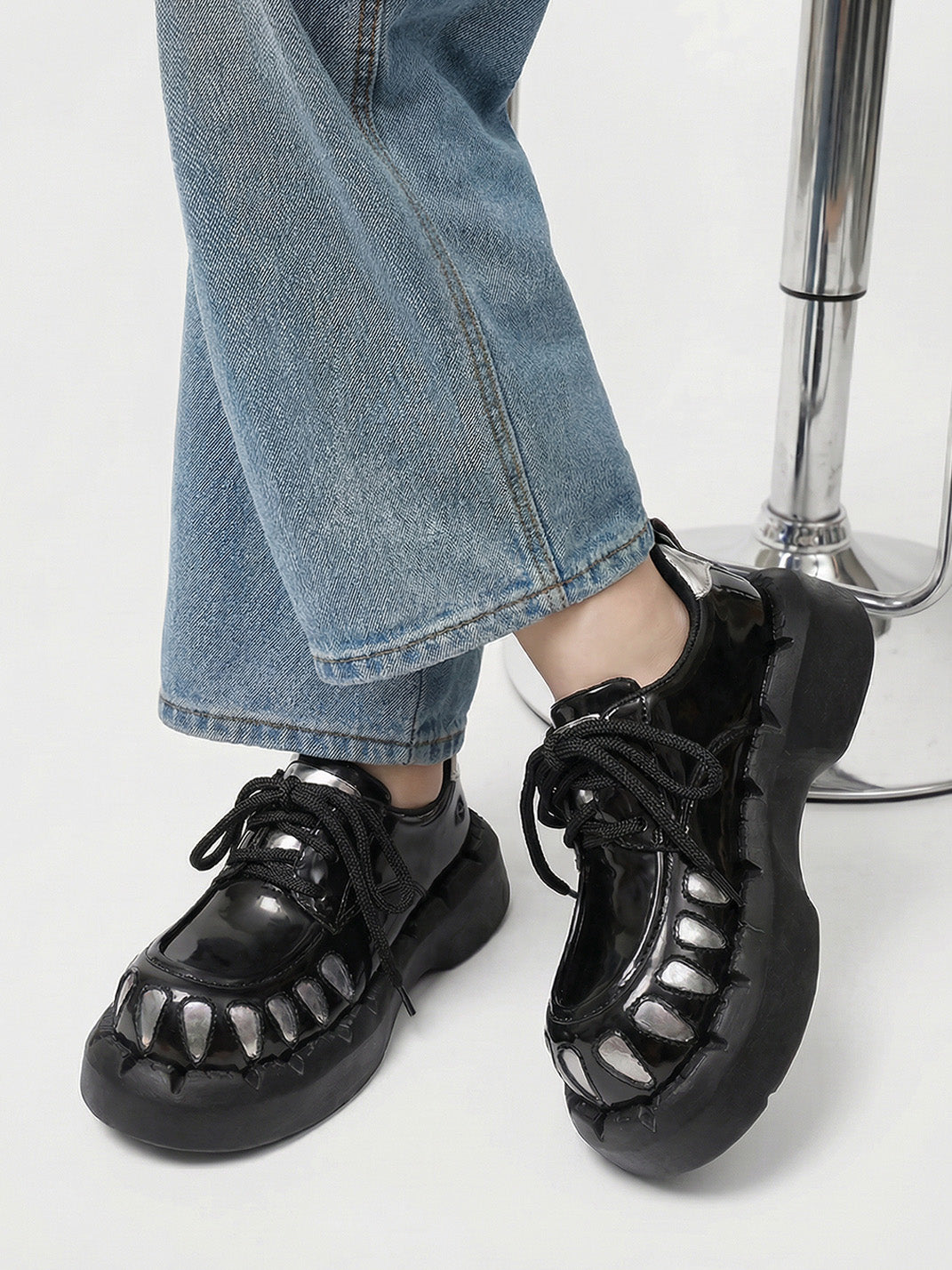 PINJIAHUI | Lace-up Patchwork Platform Shoes