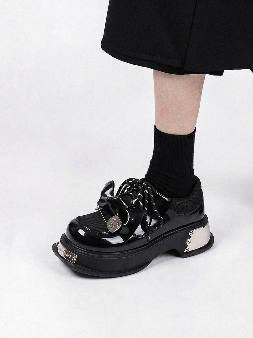 PINJIAHUI | Metal Detail Leather Platform Loafers