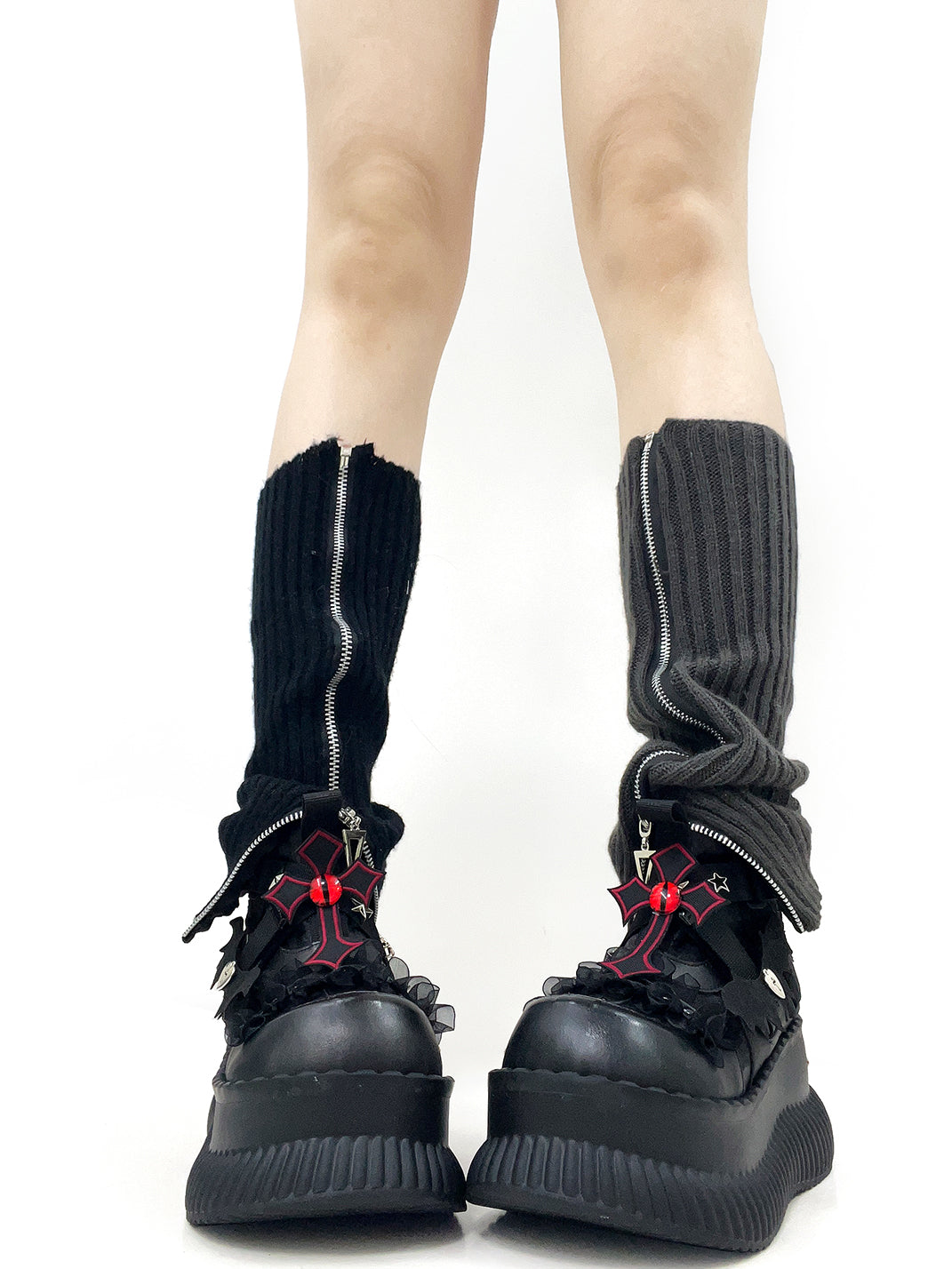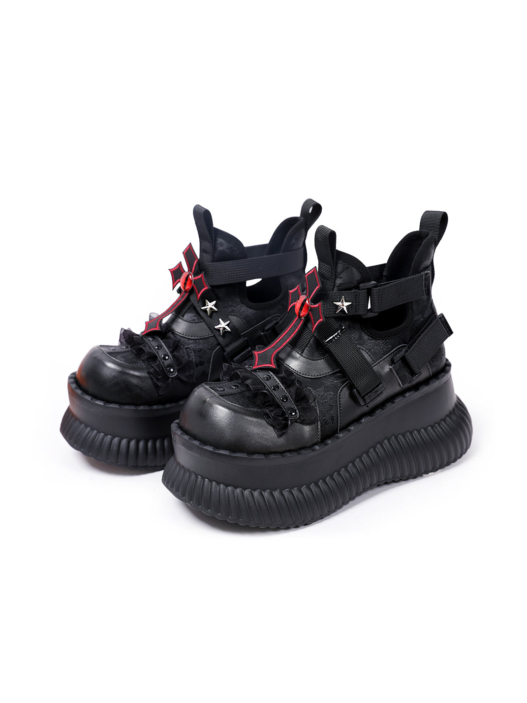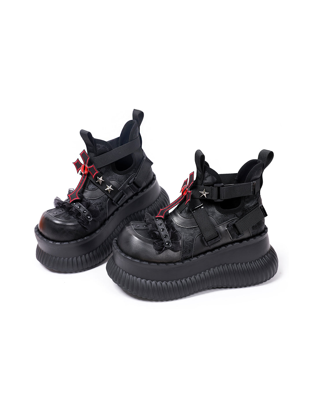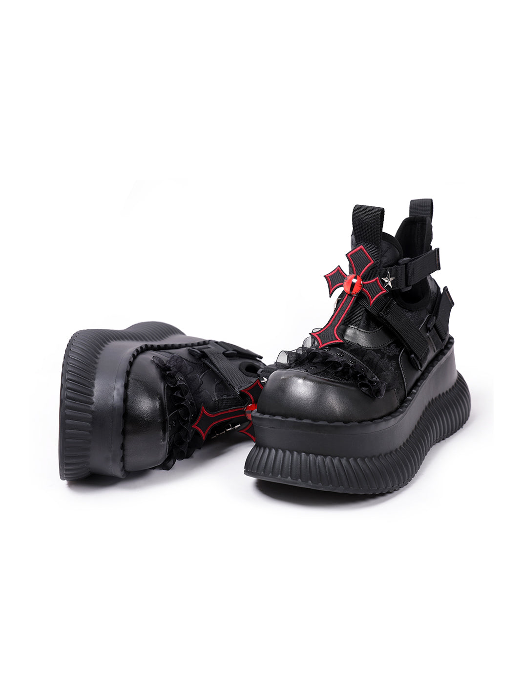 PINJIAHUI | Star and Red Cross Detail Chunky Platform Sneakers