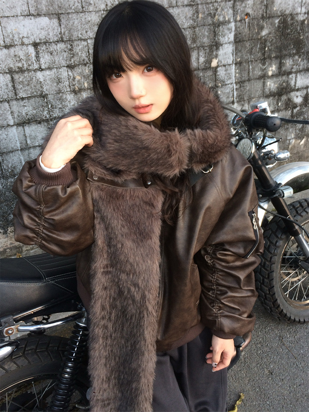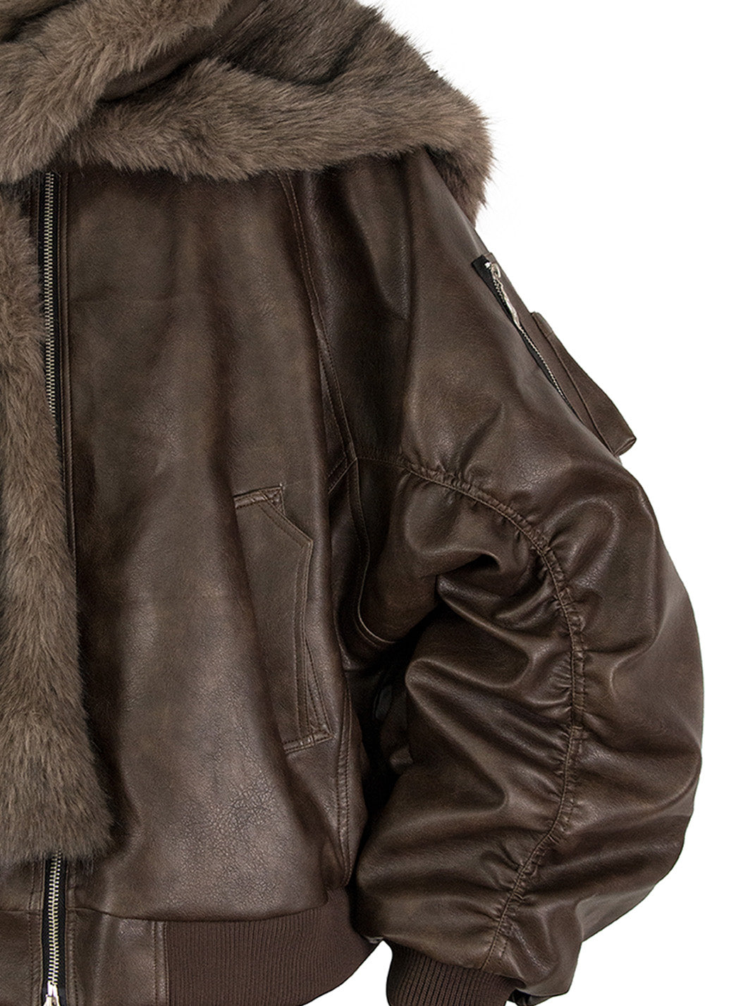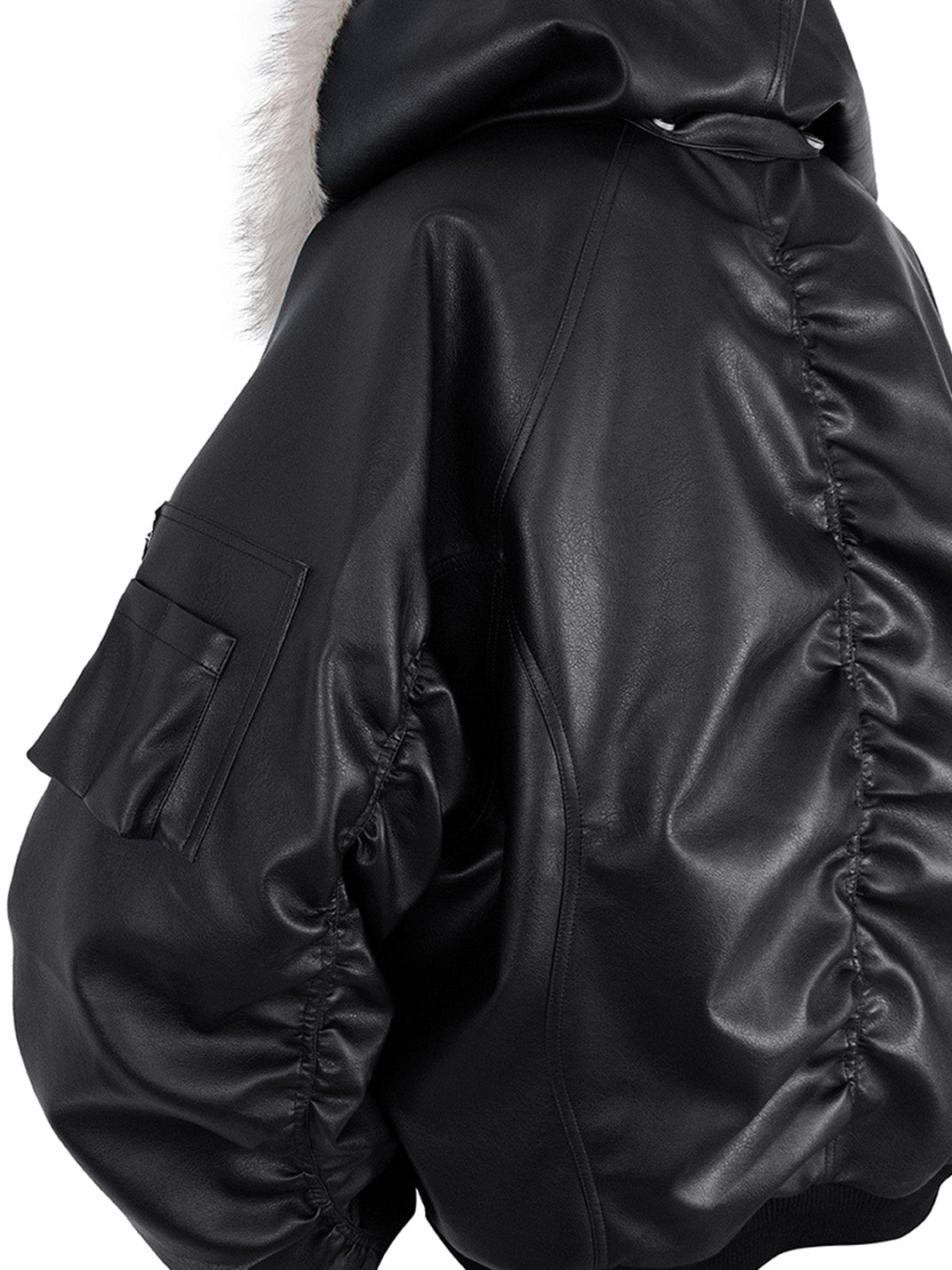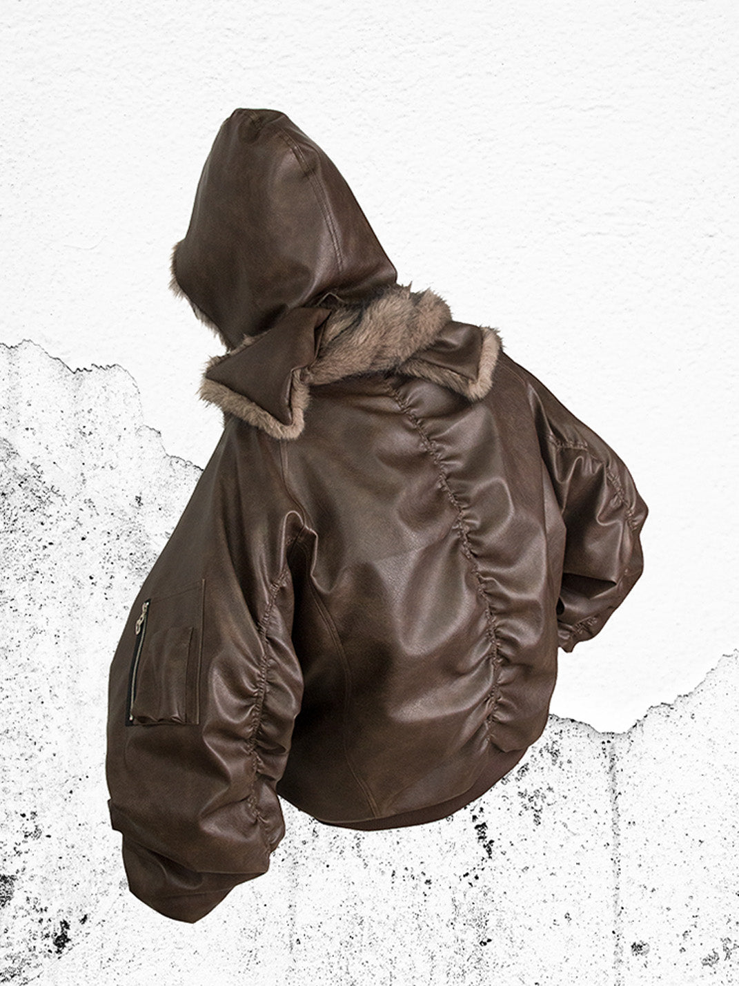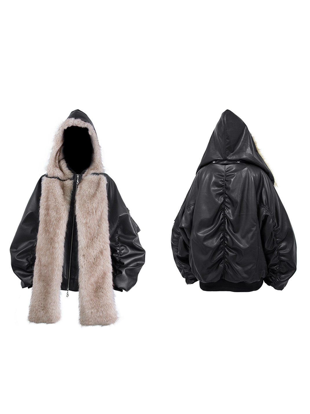 RELABEL | Detachable Plush Scarf Ruched Hooded Jacket