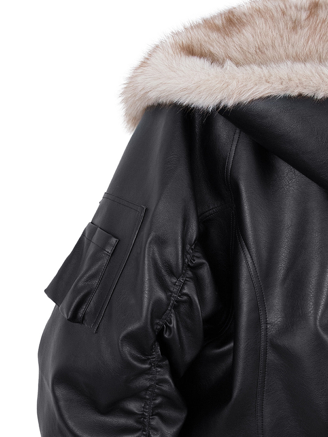 RELABEL | Detachable Plush Scarf Ruched Hooded Jacket saltar al contenido
