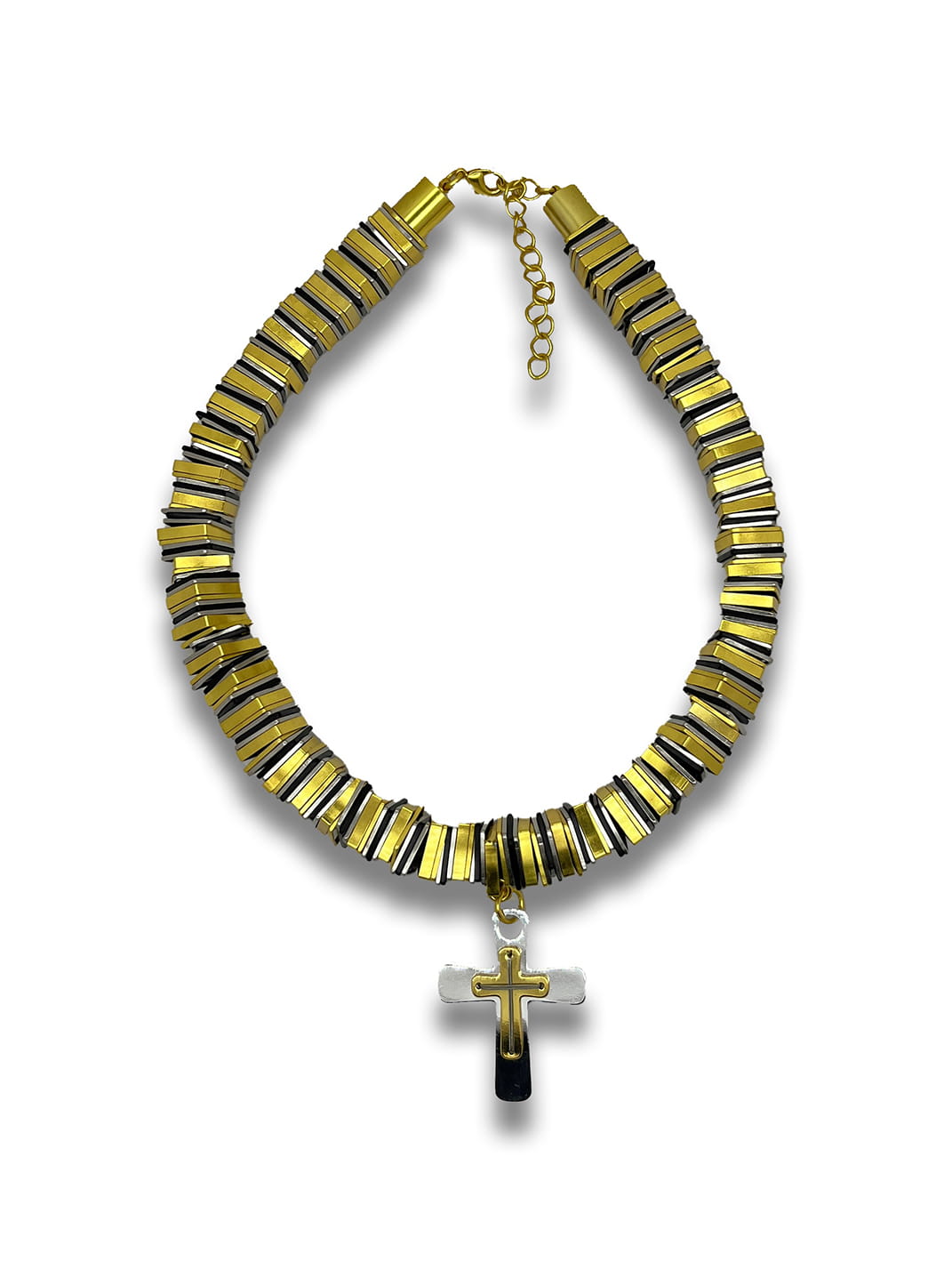 SchwarzGold | Color Clash Handwoven Cross Necklace