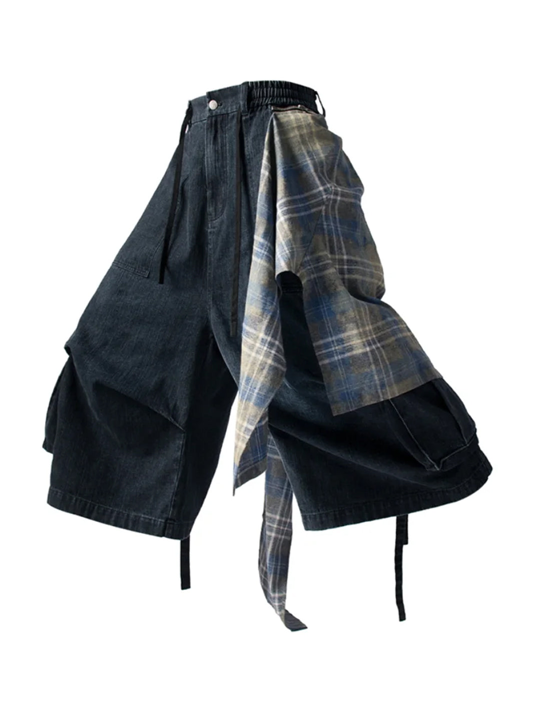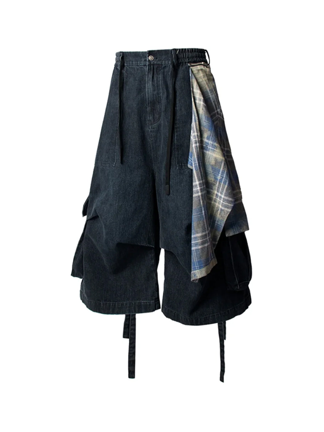 RELABEL丨Shorts de mezclilla azul lavado con cintura anudada y solapa desmontable