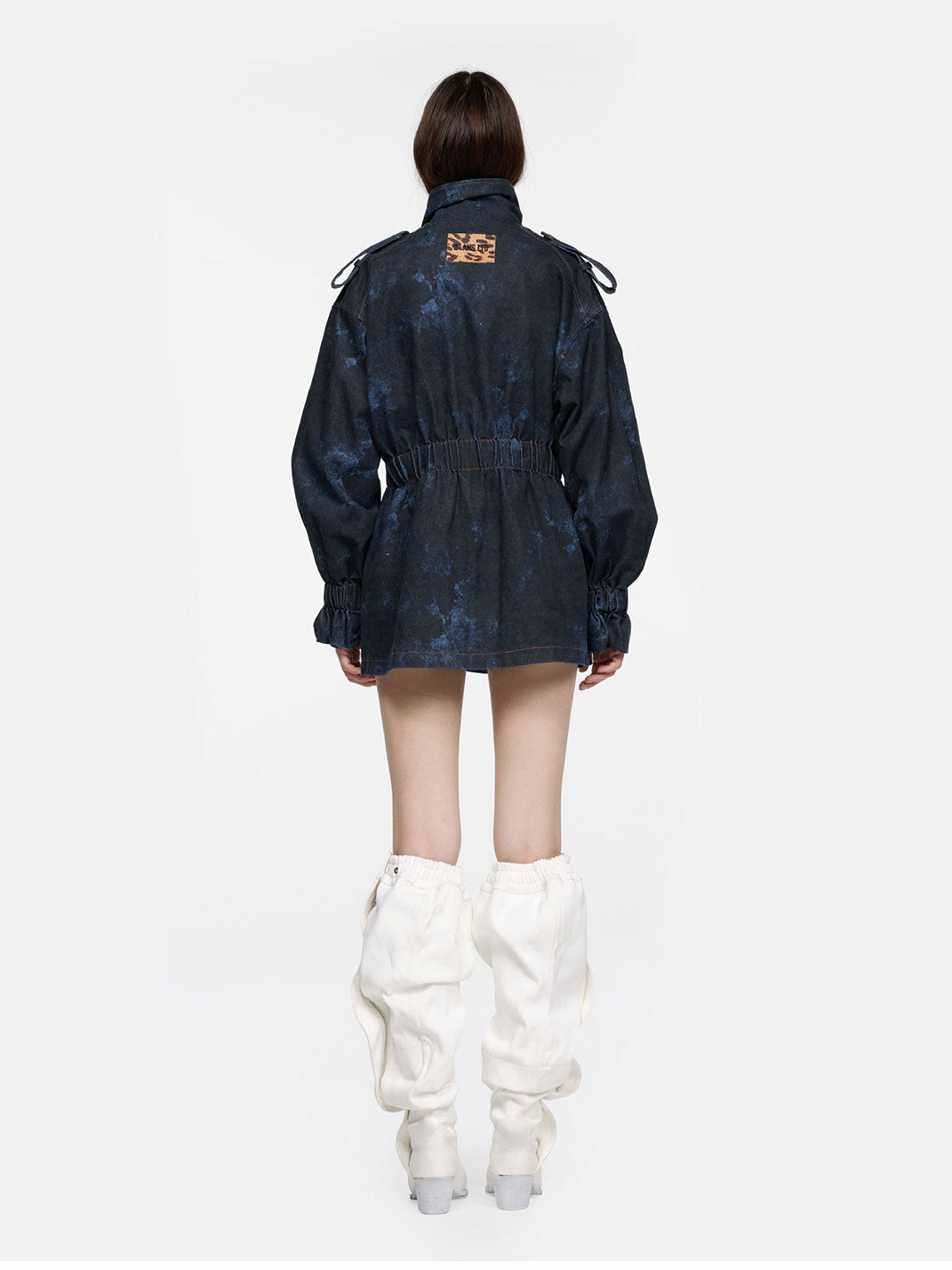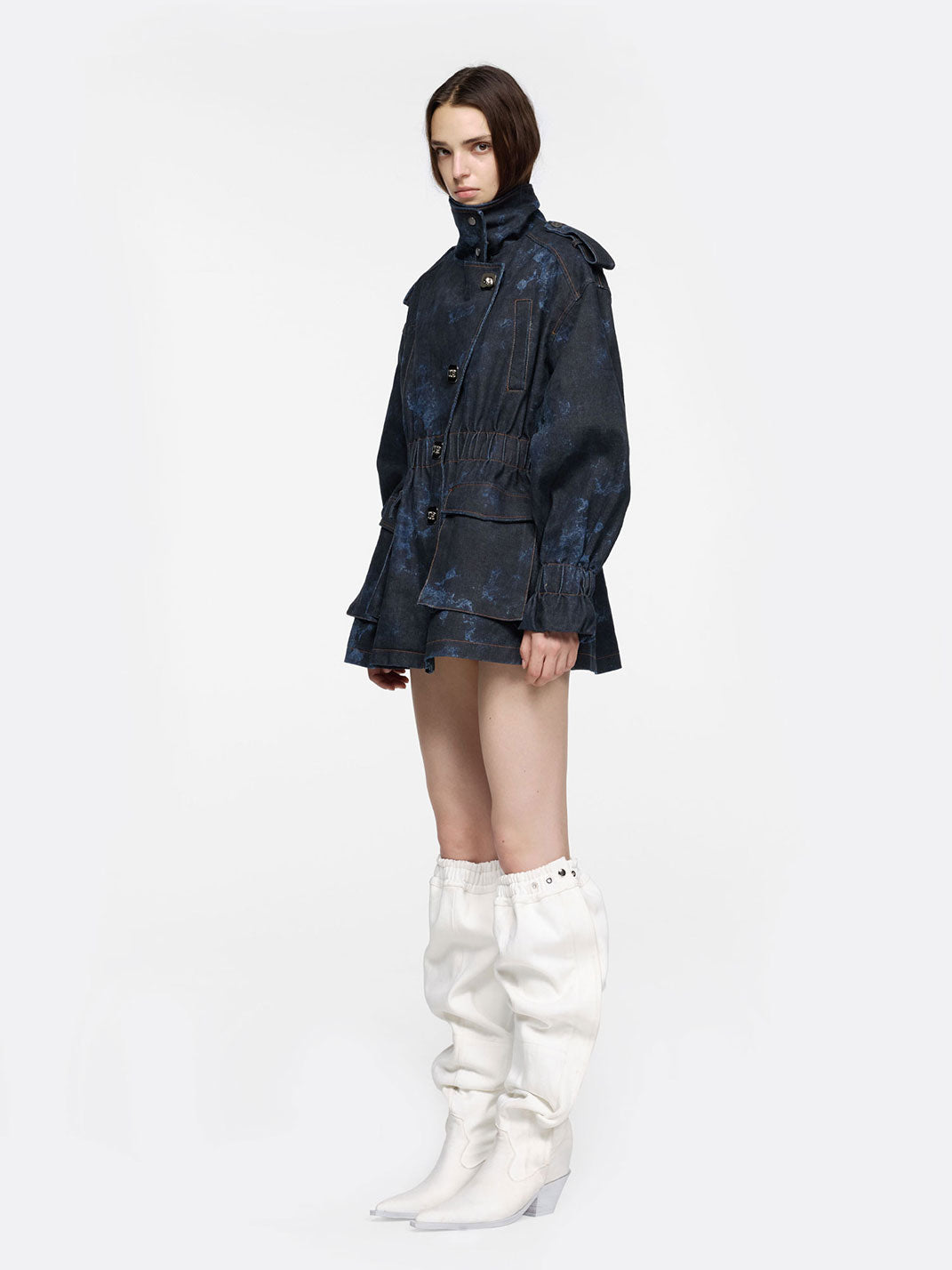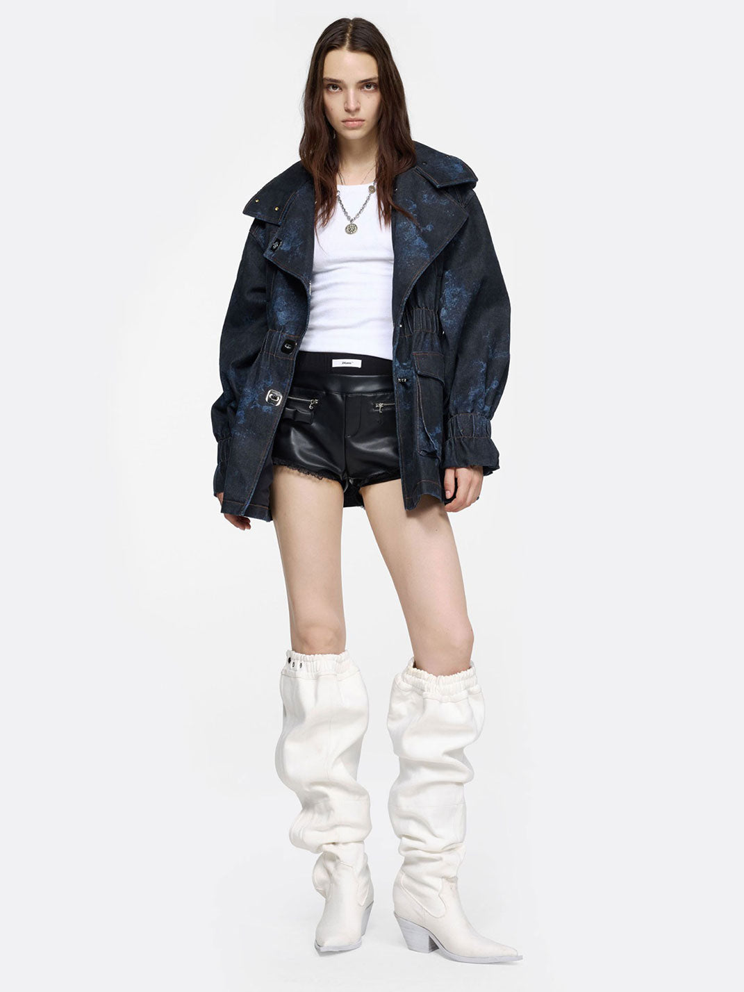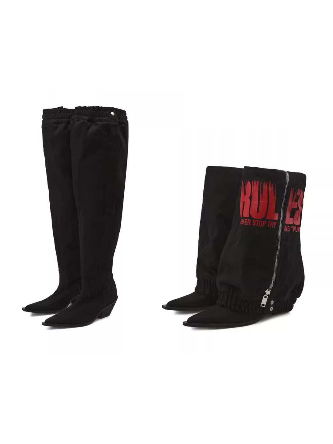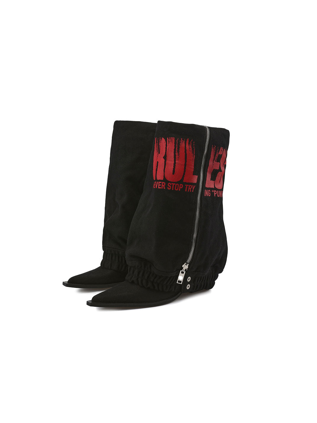 24ANS | Printed Denim Fold-Over Chunky Heel Boots