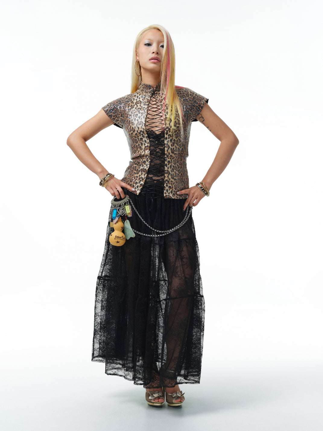 The mandarin collar adds a touch of classic Chinese elegance with a modern, sultry twist.