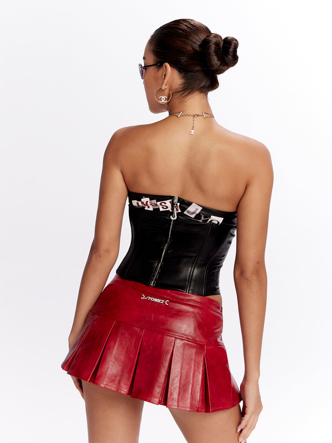 Designed with moderate stretch for comfort and movement, this bustier features structured boning at the waist for added support and a sculpted silhouette.