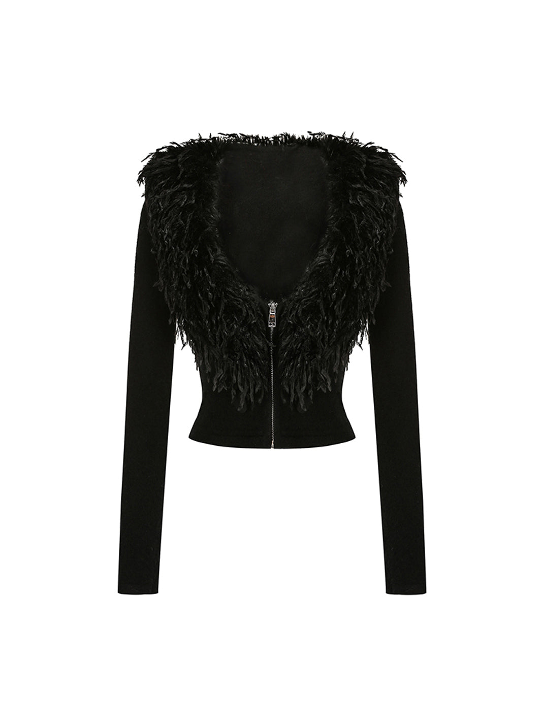· Ultra-thick shearling collar adds a cozy winter vibe