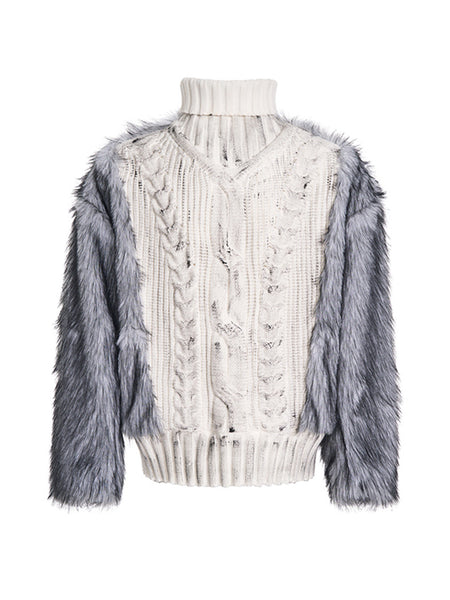 SEE | Faux Fur-Panel High-Neck Sweater