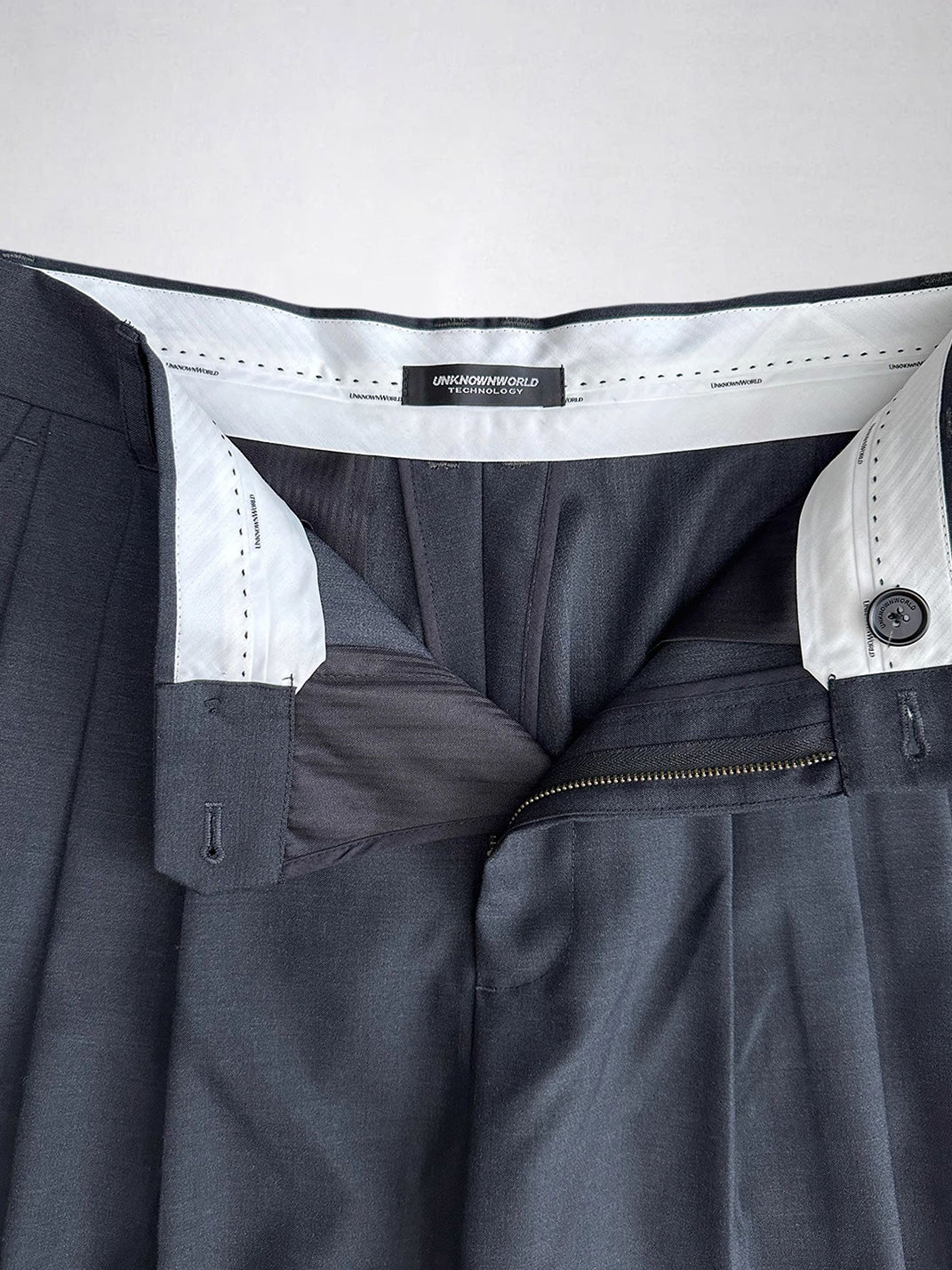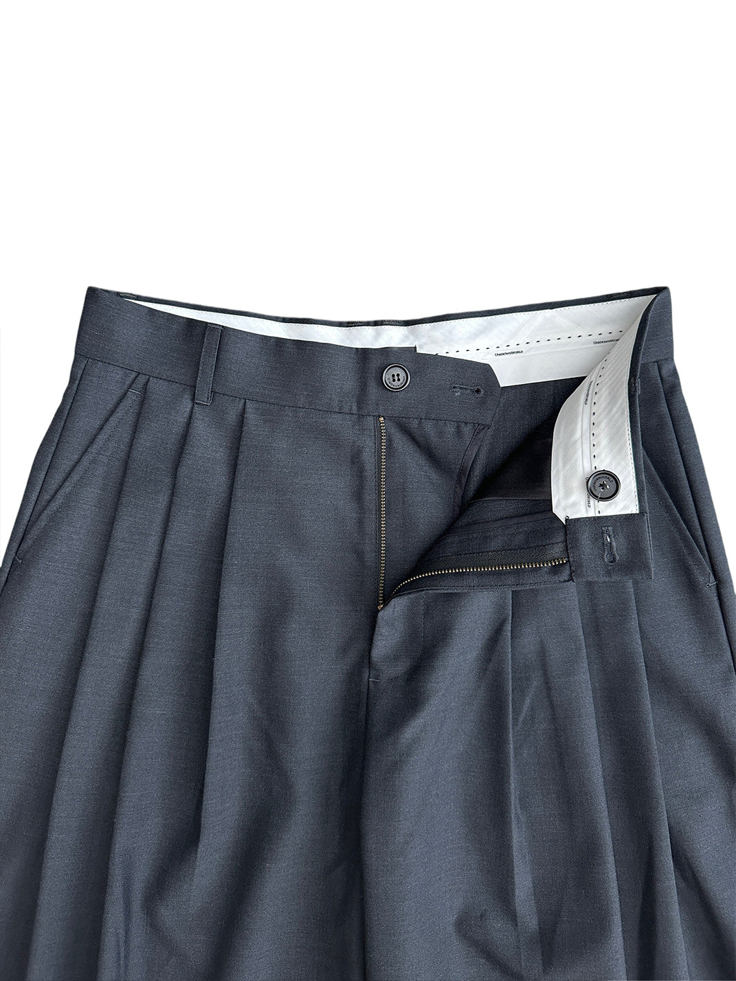 Crafted from a luxurious 500g worsted wool-blend fabric, these pants achieve a naturally structured silhouette without the need for additional fusing. The 50% fine wool and silk-blend finish delivers a subtle, silk-like sheen while remaining wrinkle-resistant and soft against the skin.