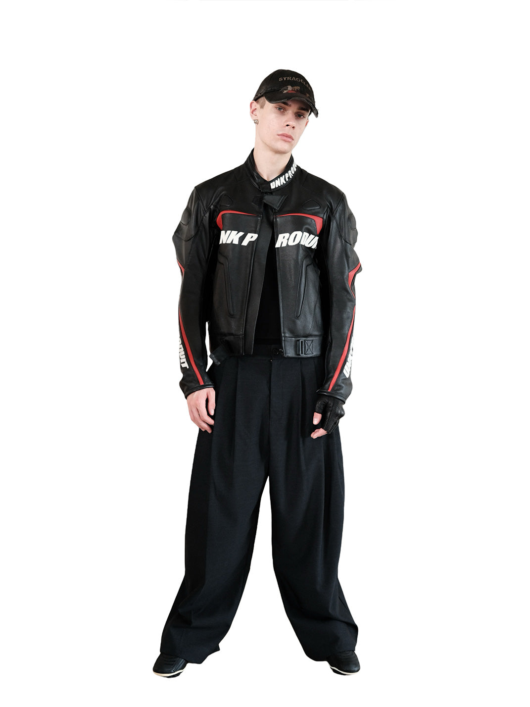 Signature Branding: Custom UNK logo waistband lining and engraved horn button closure.